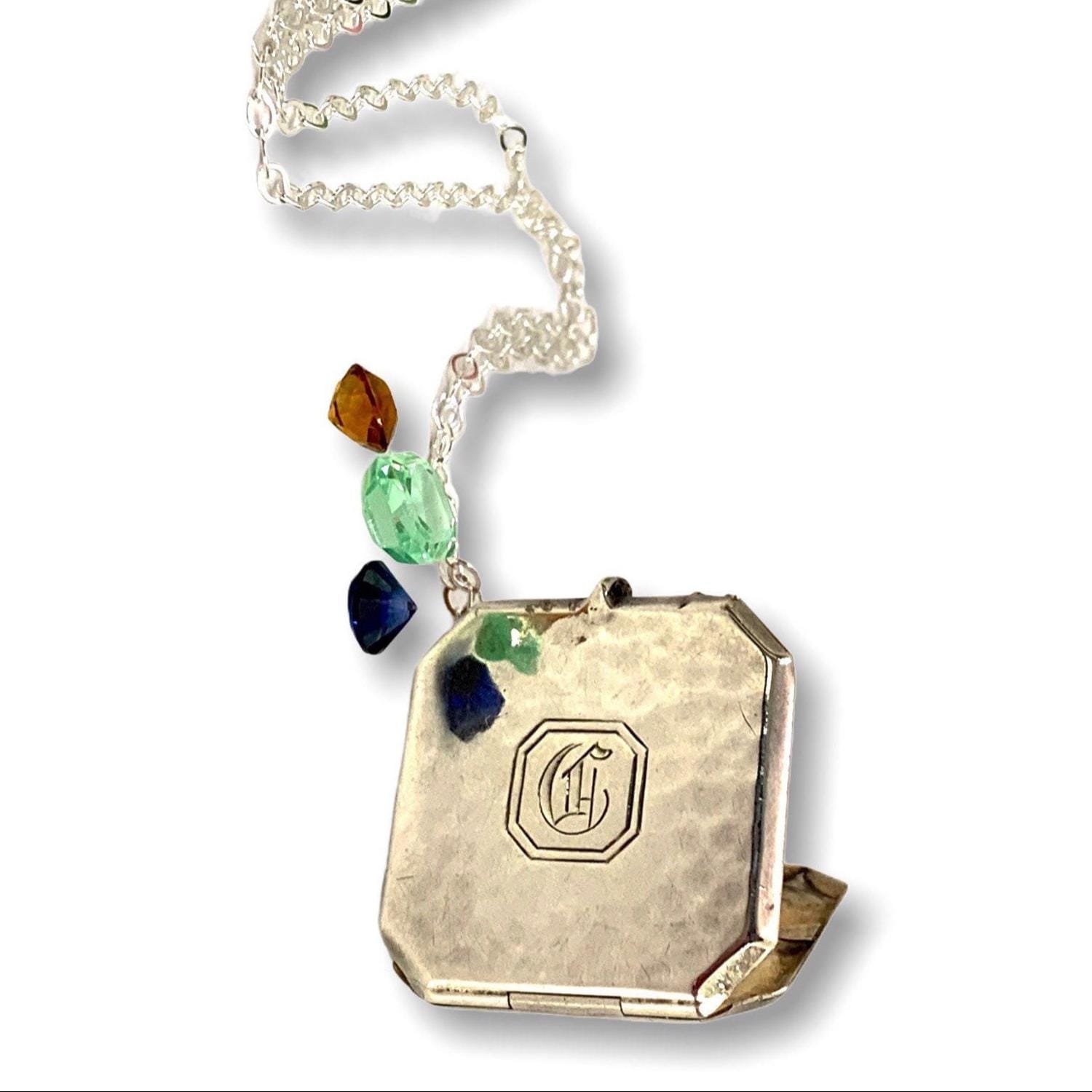 Vintage Art Deco Sterling Silver Locket Necklace: Engraved C Monogram, 1920s Jewelry