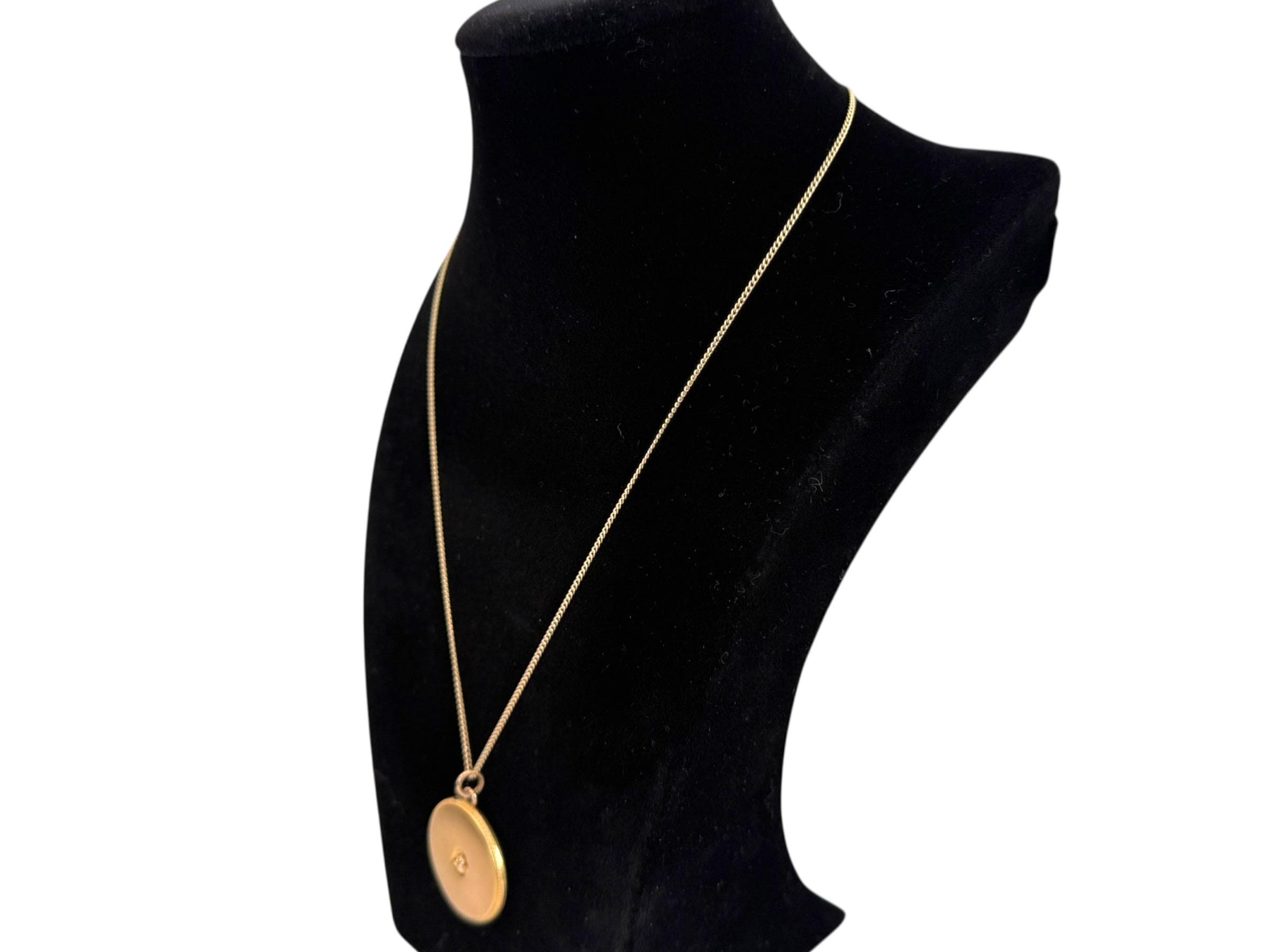 In nice antique condition with light wear and on both sides and on the paste stone and some patina on the front - wear is as would be expected an antique item that is circa early 1900s. See photos for detail. The chain is in good condition as it is new.