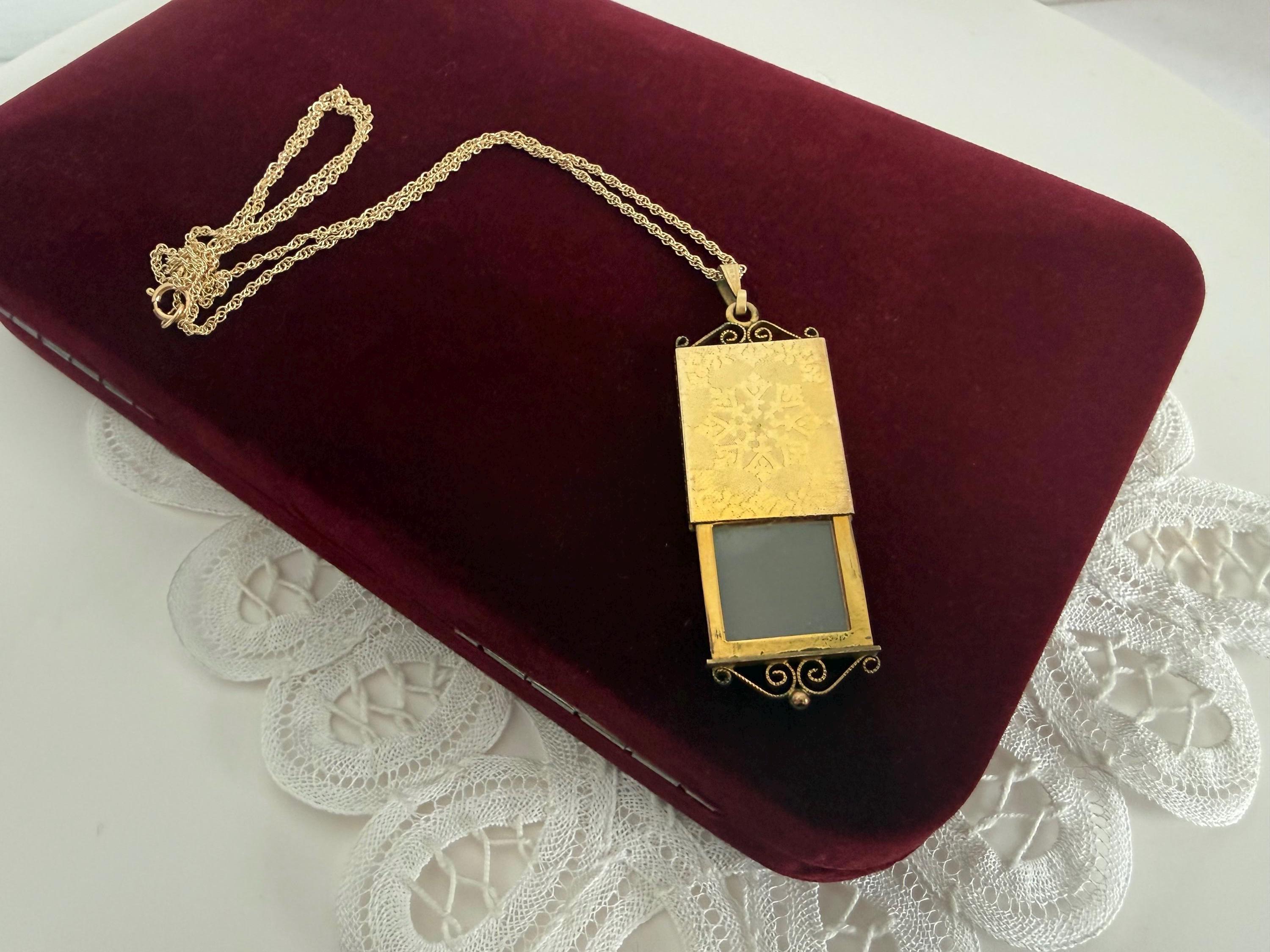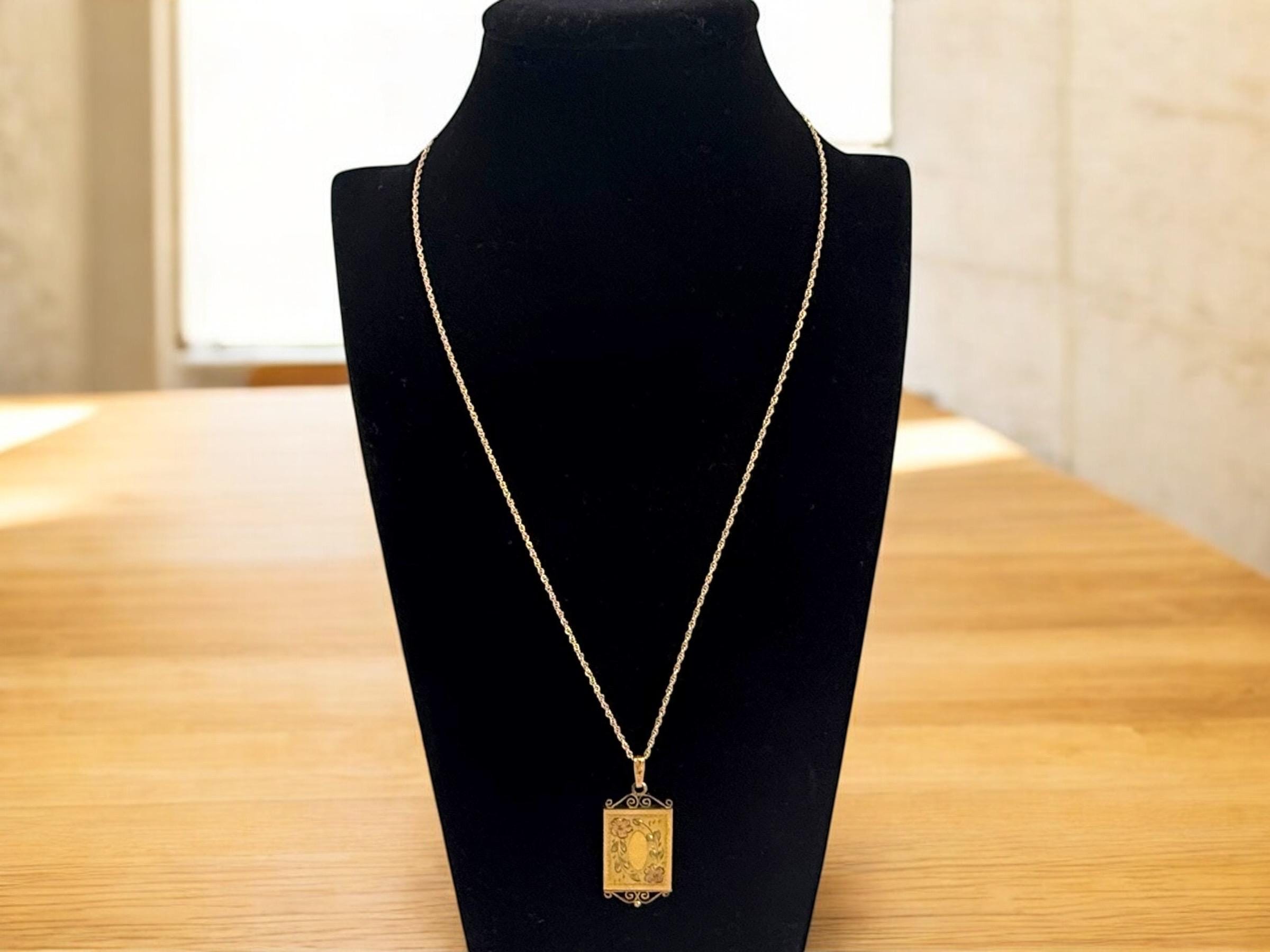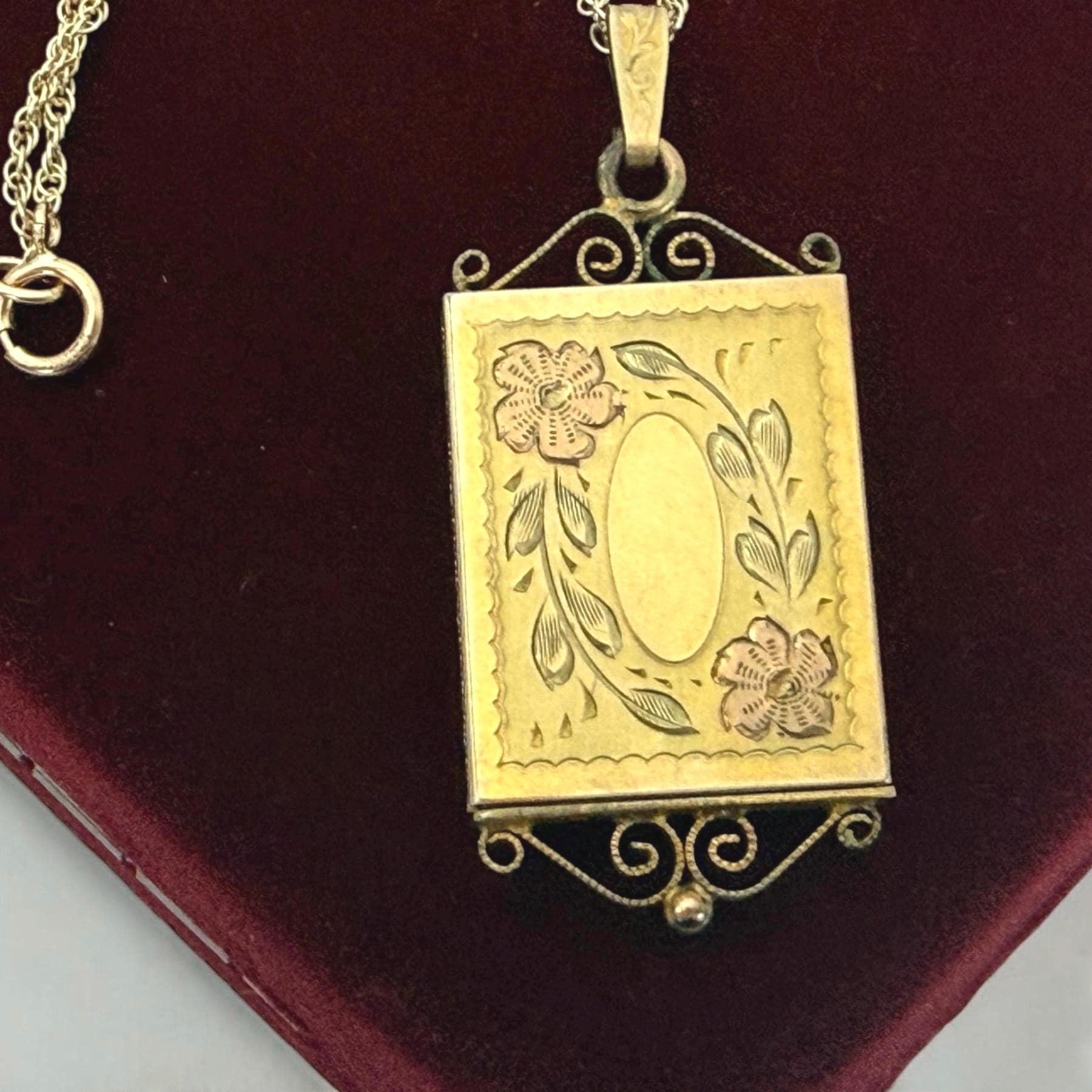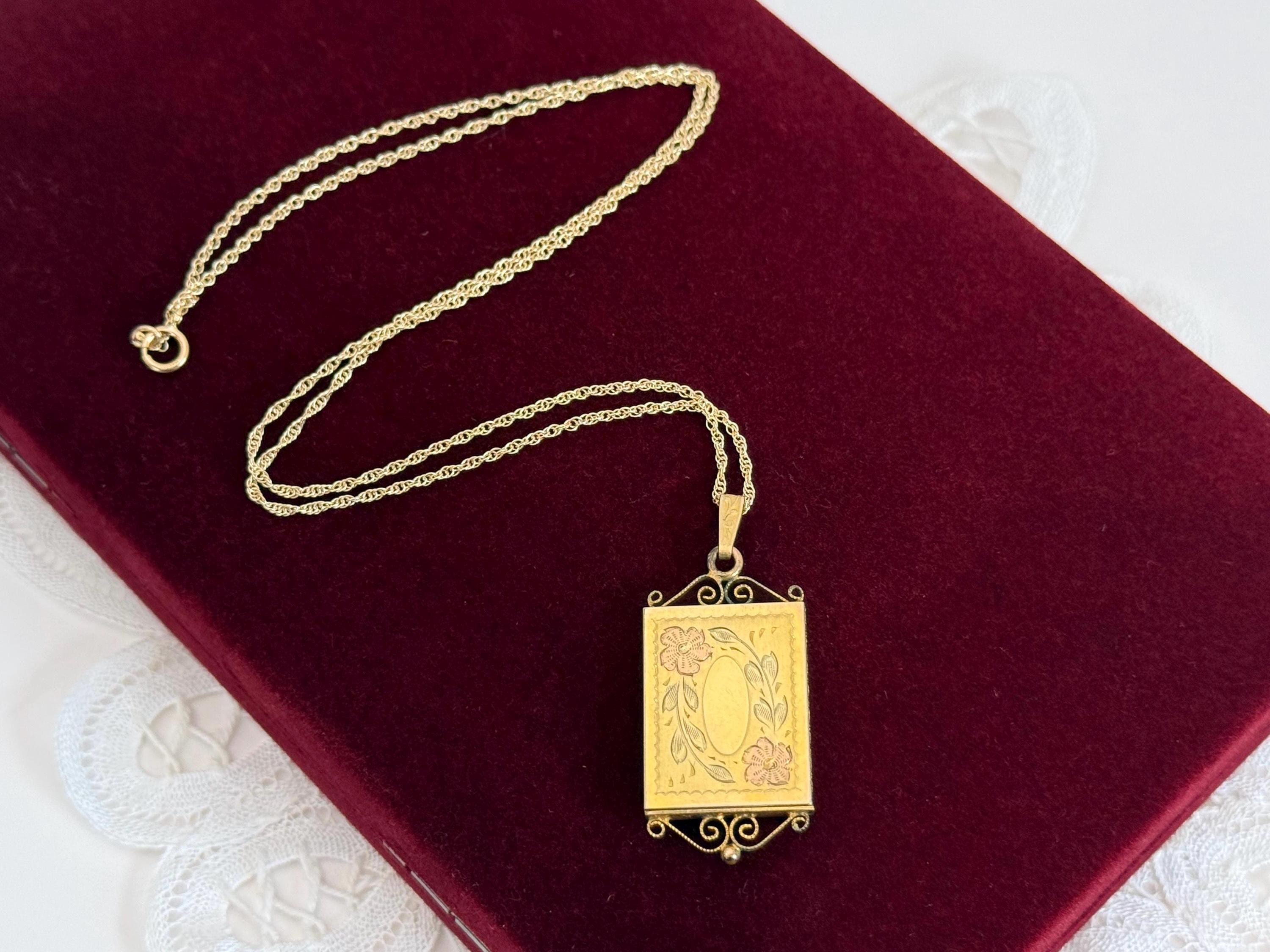 Vintage 12K Gold Filled Oval Etched Slide Locket Necklace, 12K GF Chain