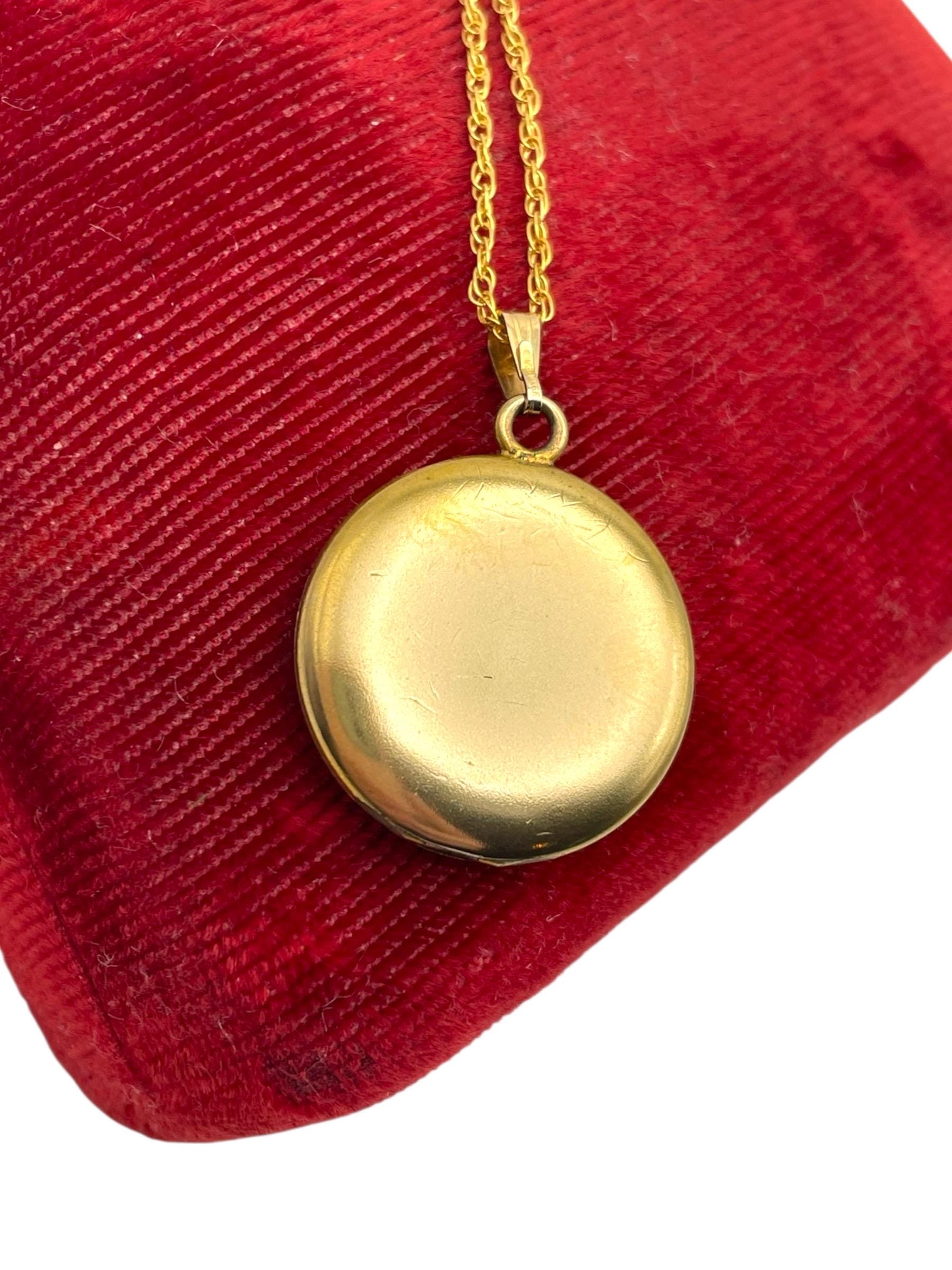 Lovely antique Edwardian gold filled round photo locket on a gold filled chain that is hallmarked for the W&SB Company.