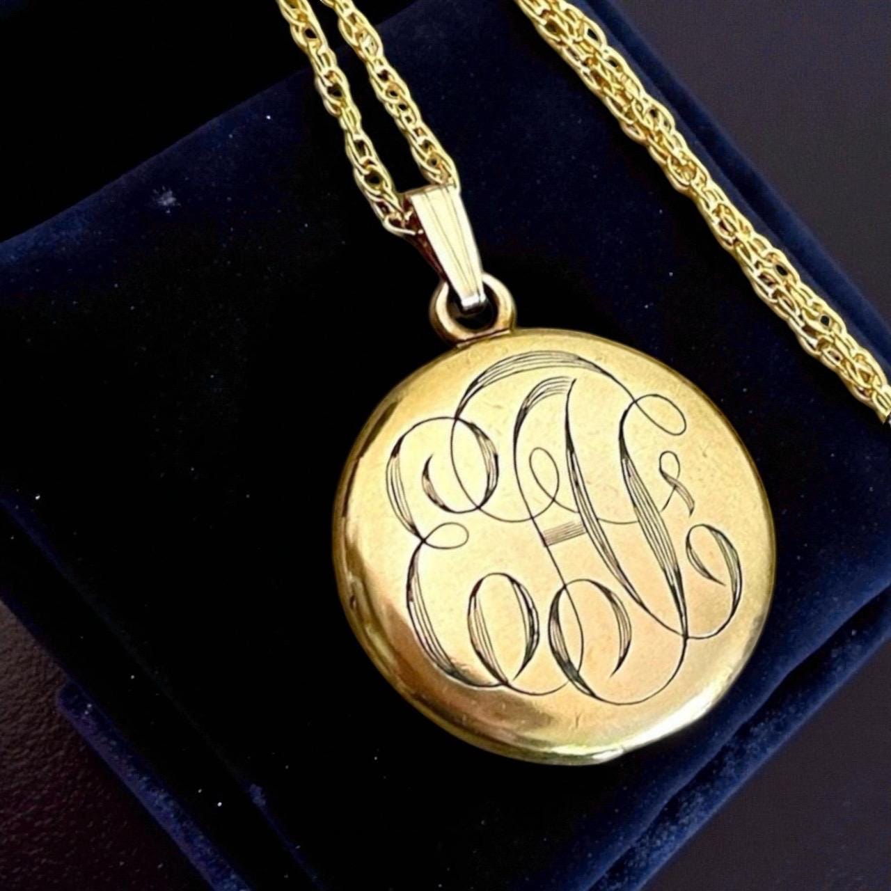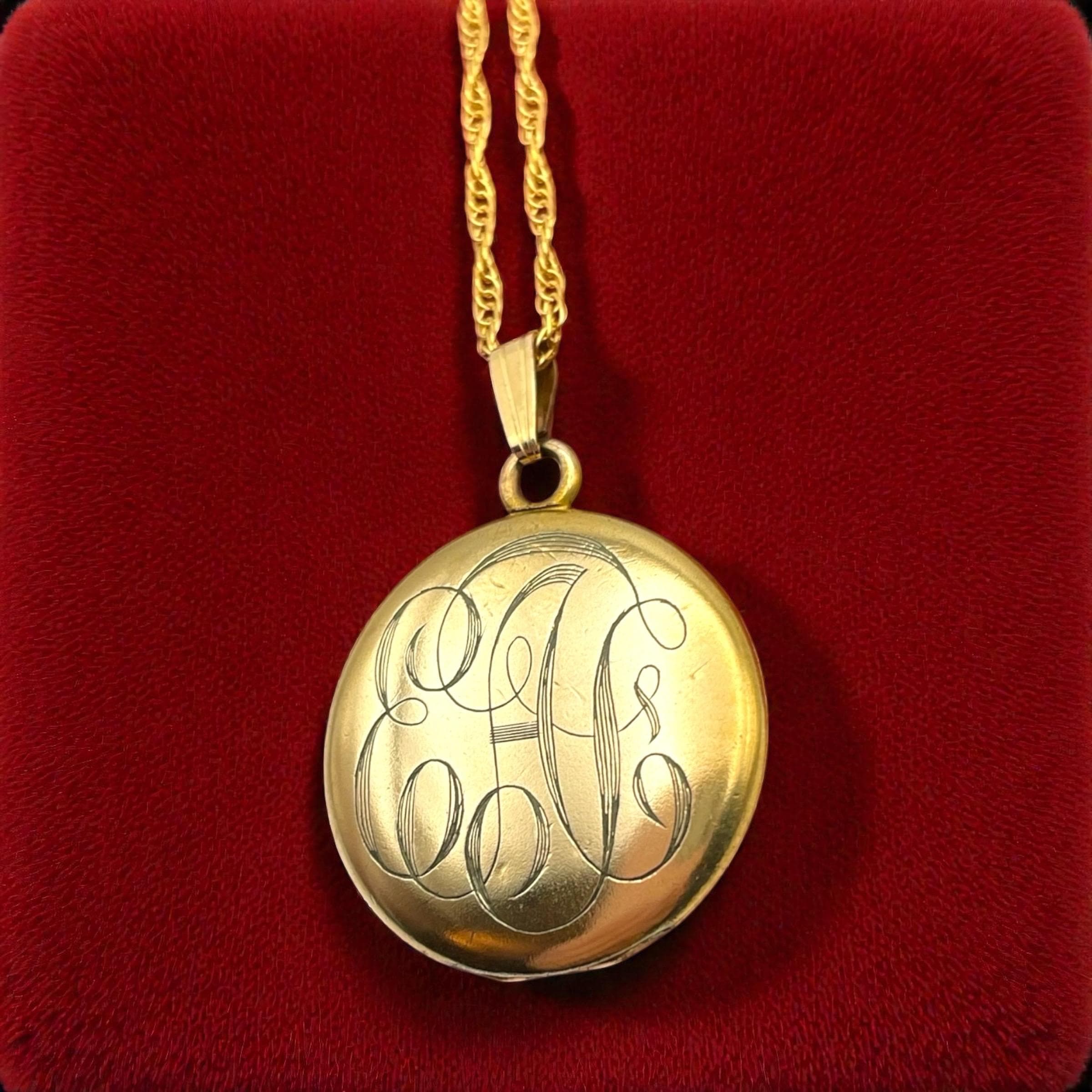 Antique Edwardian Gold Filled Locket Necklace - Monogram, W&SB Hallmark