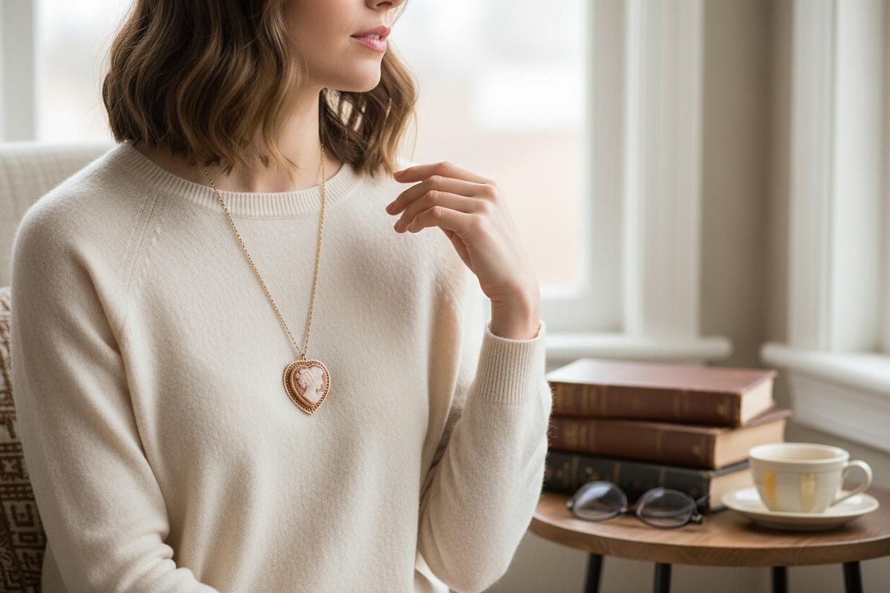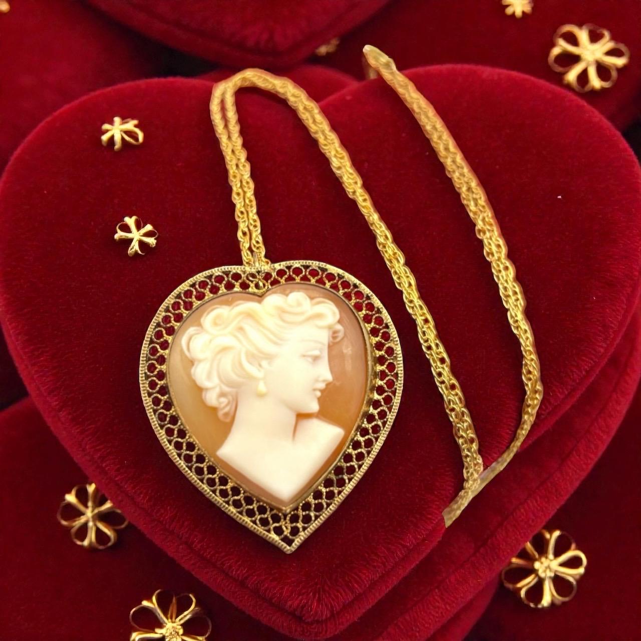 Vintage 12K Gold Filled Cameo Pendant Brooch: Heart Shaped 1940s Jewelry