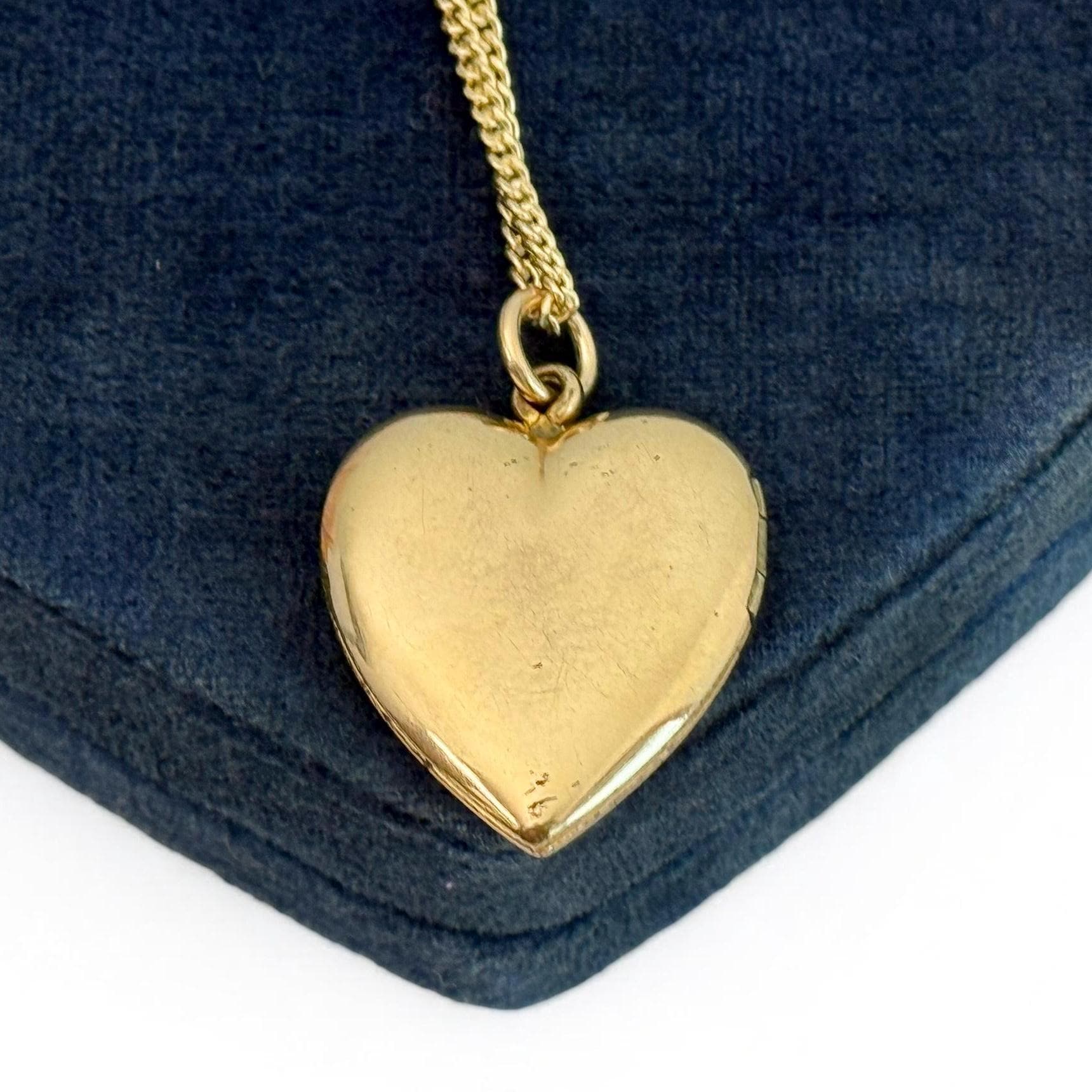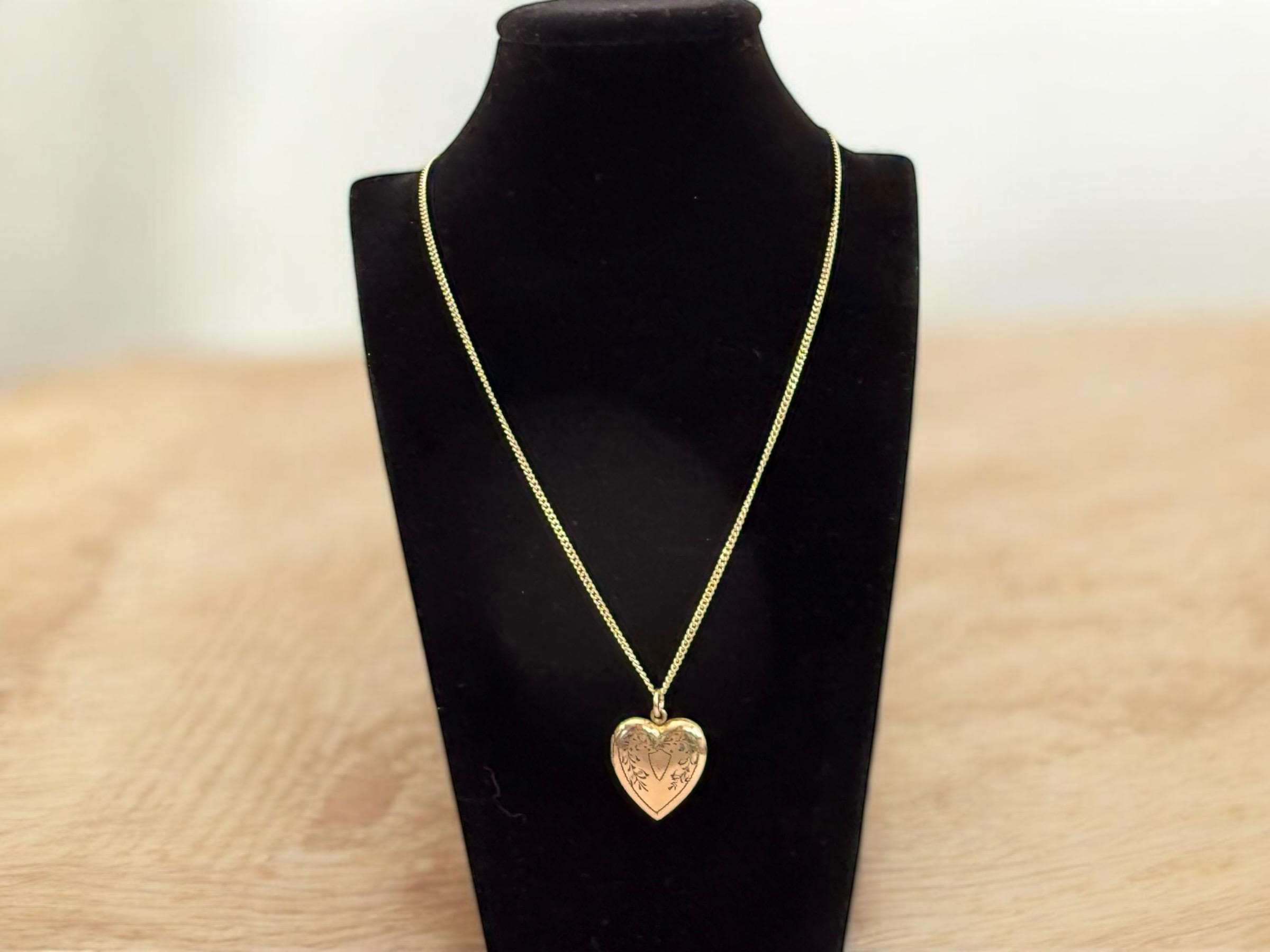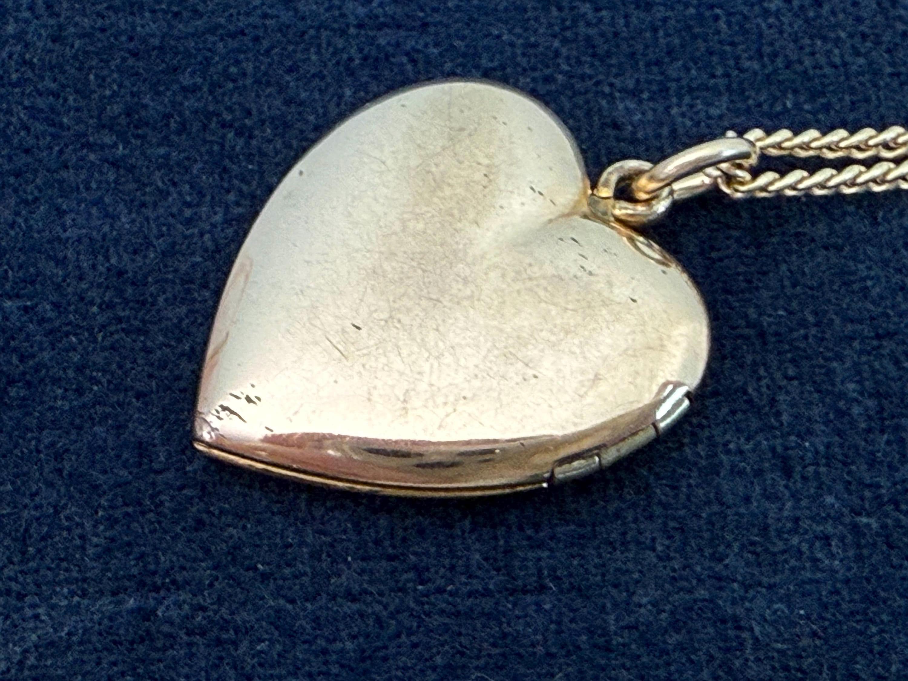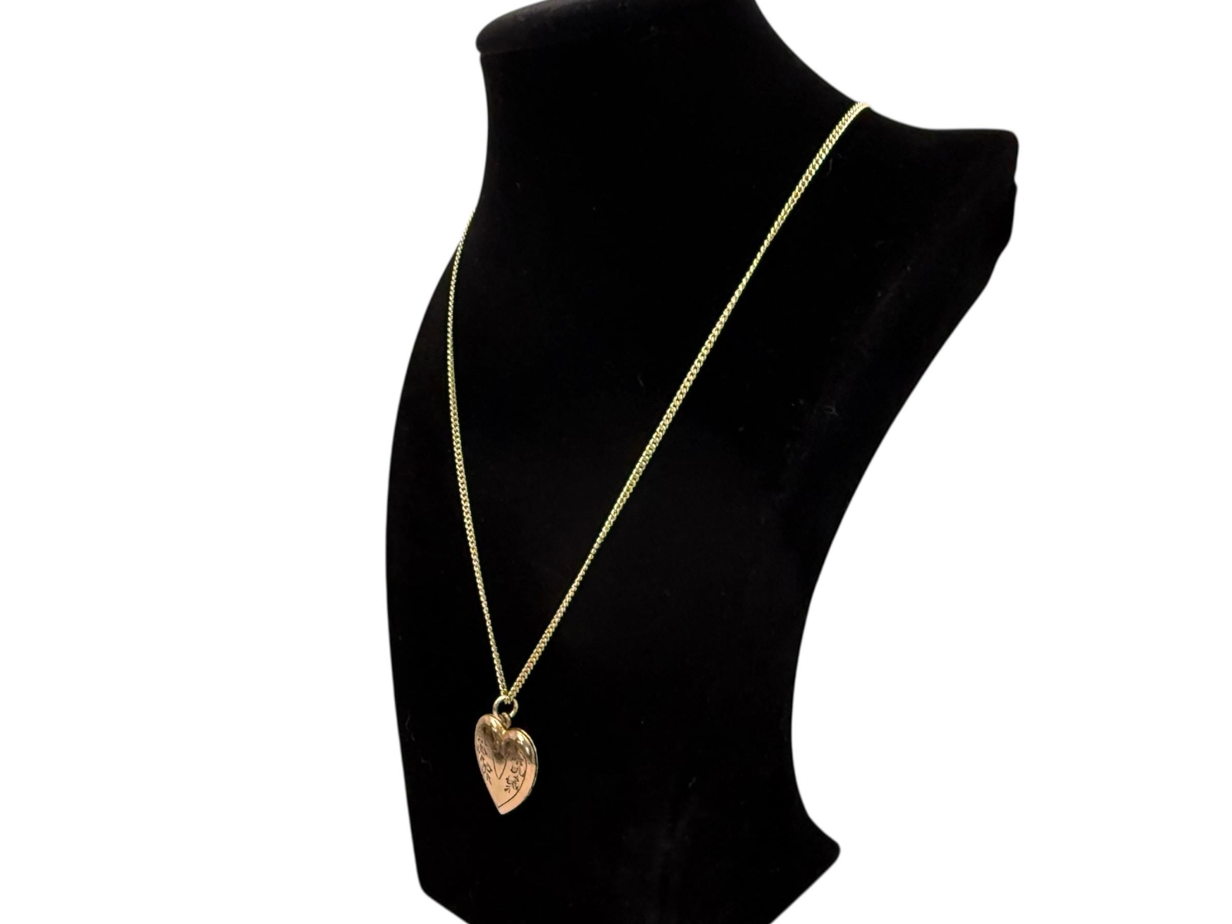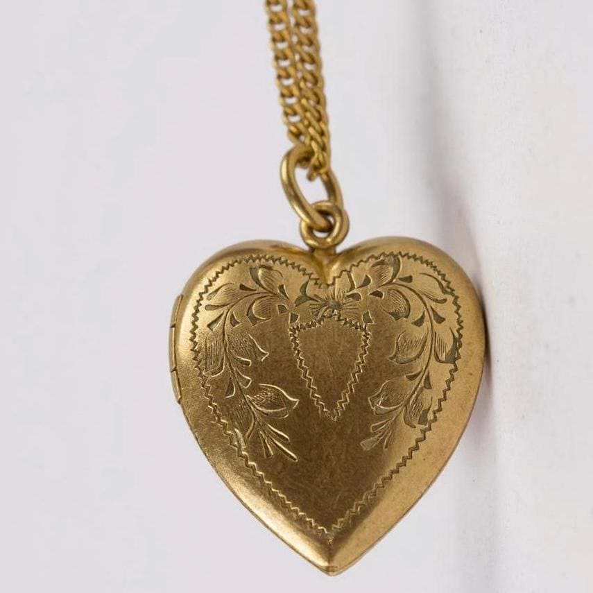 Vintage Etched Heart Locket, 12K Gold Filled, 14K GF Chain