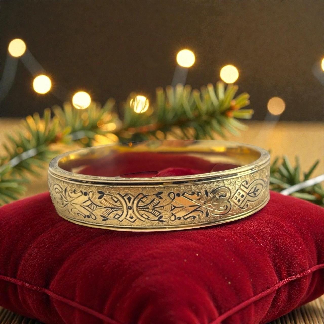 Vintage 12K Gold Filled Bangle: Etched Floral Cuff Bracelet, 1940s Estate Jewelry