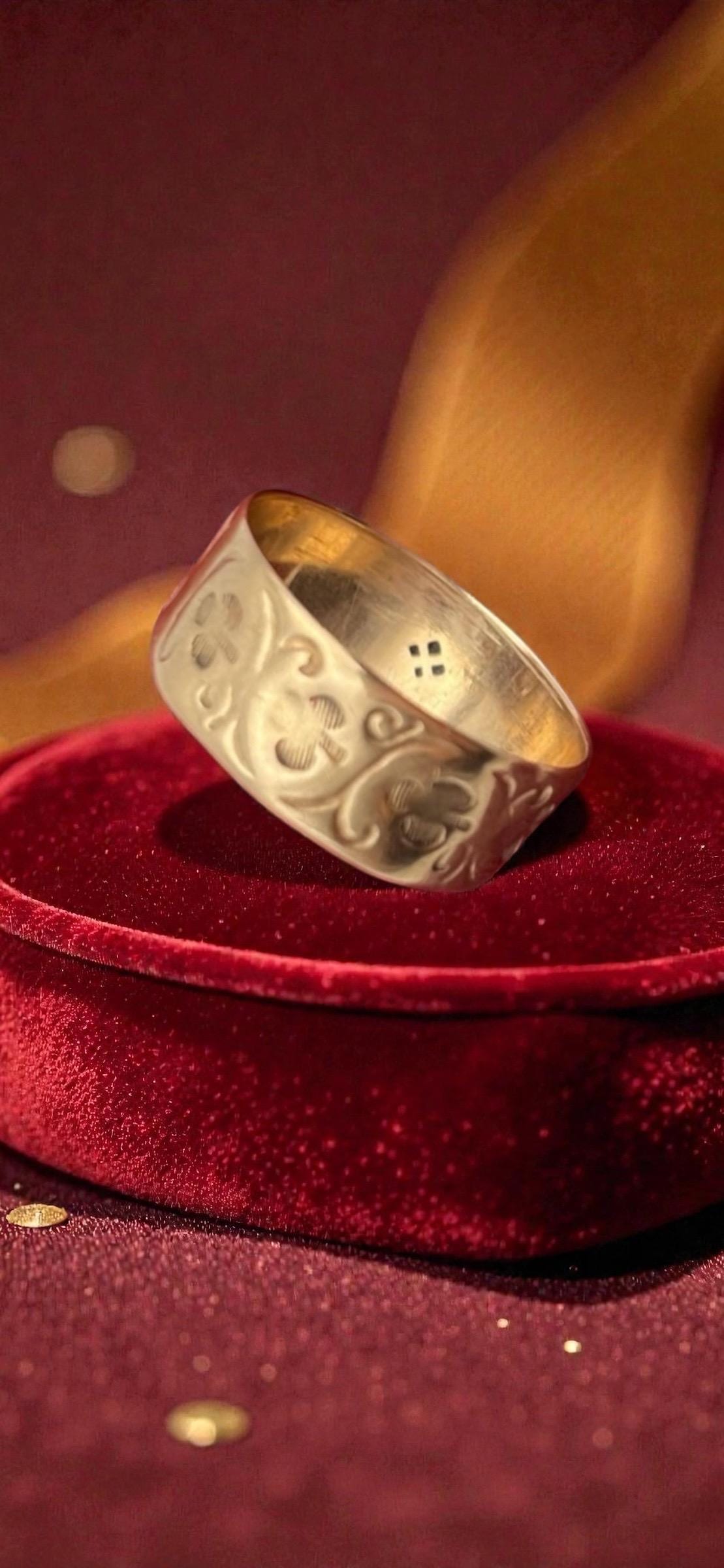 Antique 10K Gold Cigar Band Ring – Shamrock Clover, Size 6