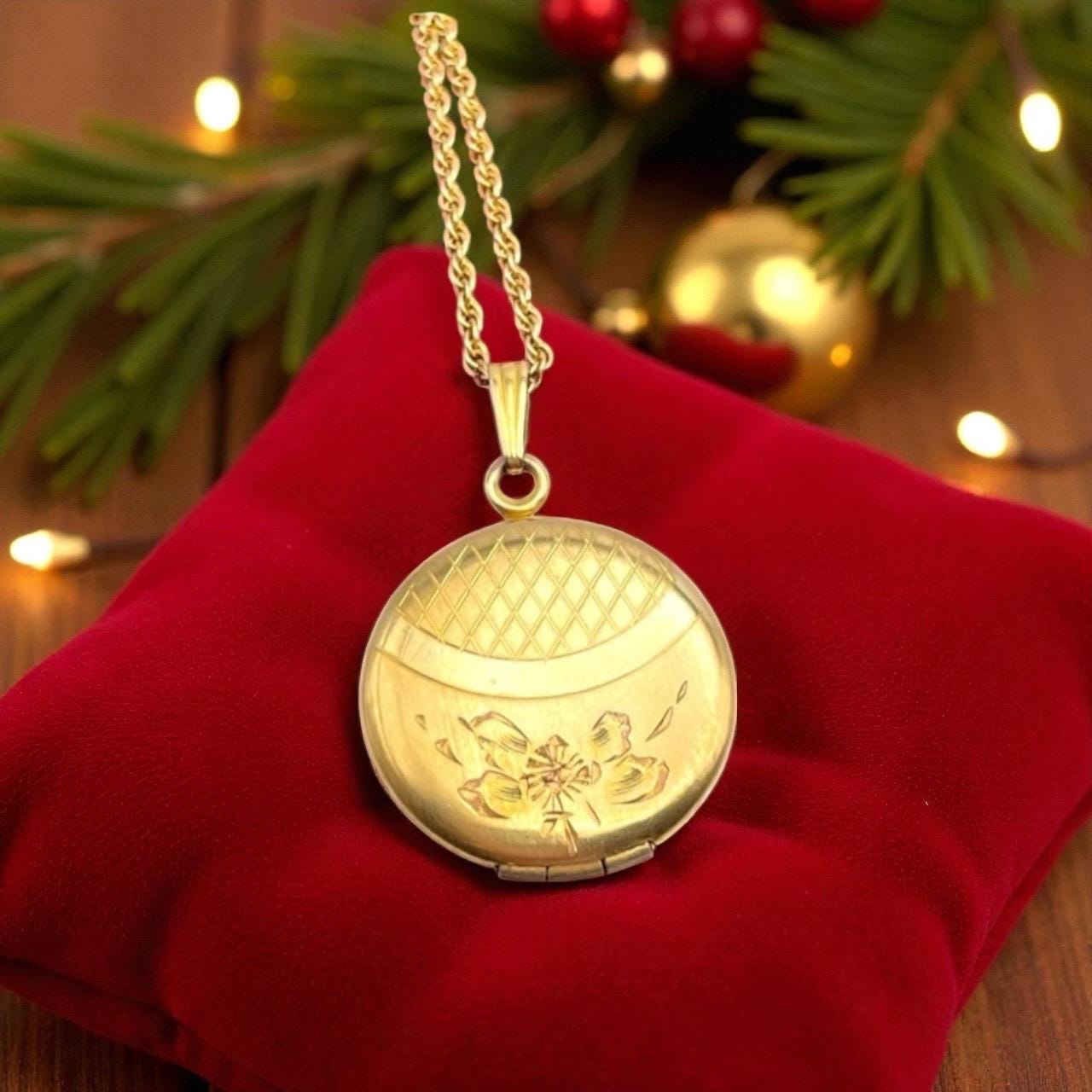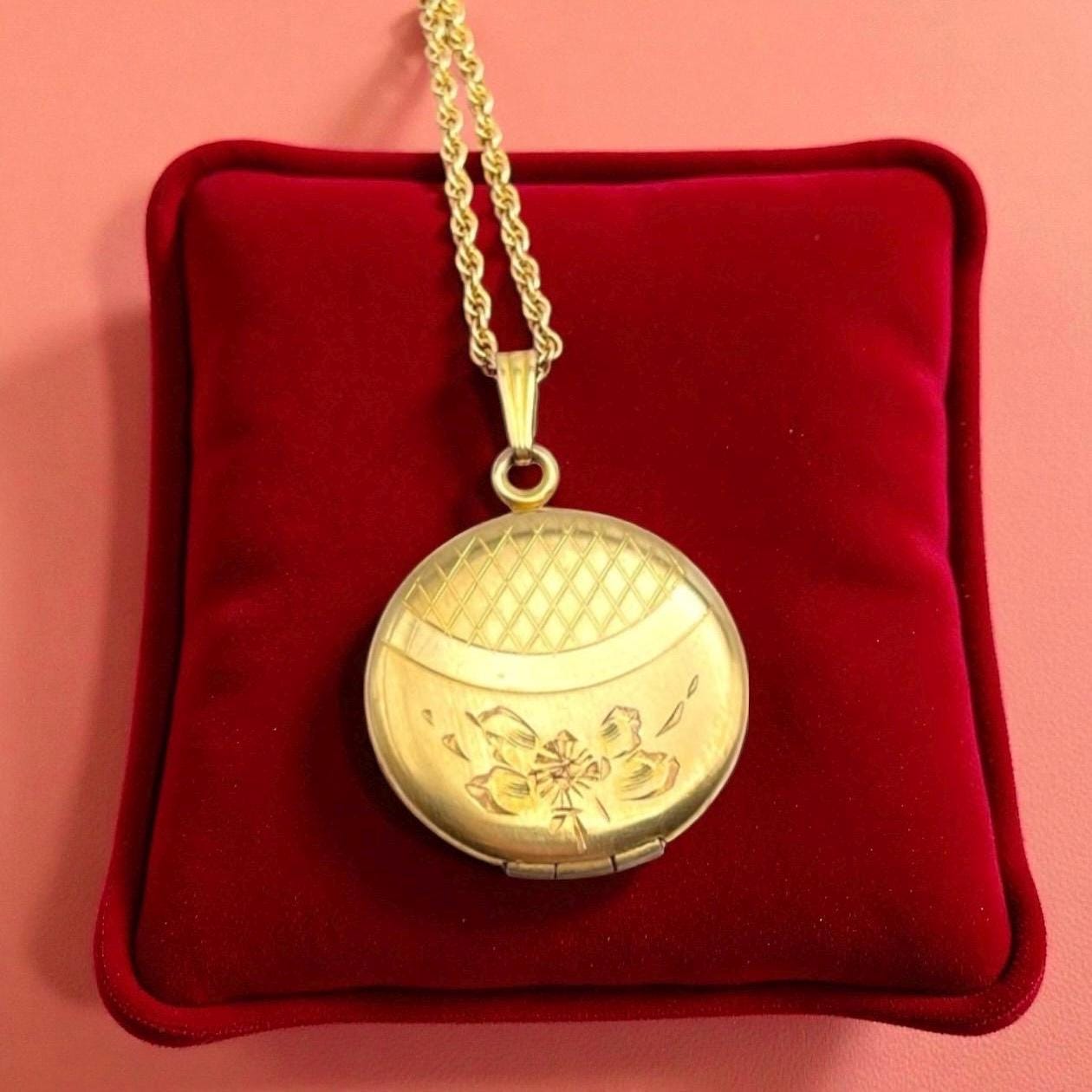 Vintage 12K Gold Filled Floral Locket Necklace - Etched Photo Pendant