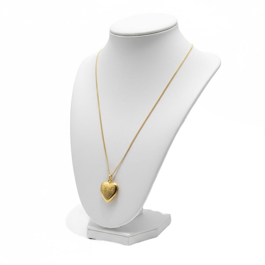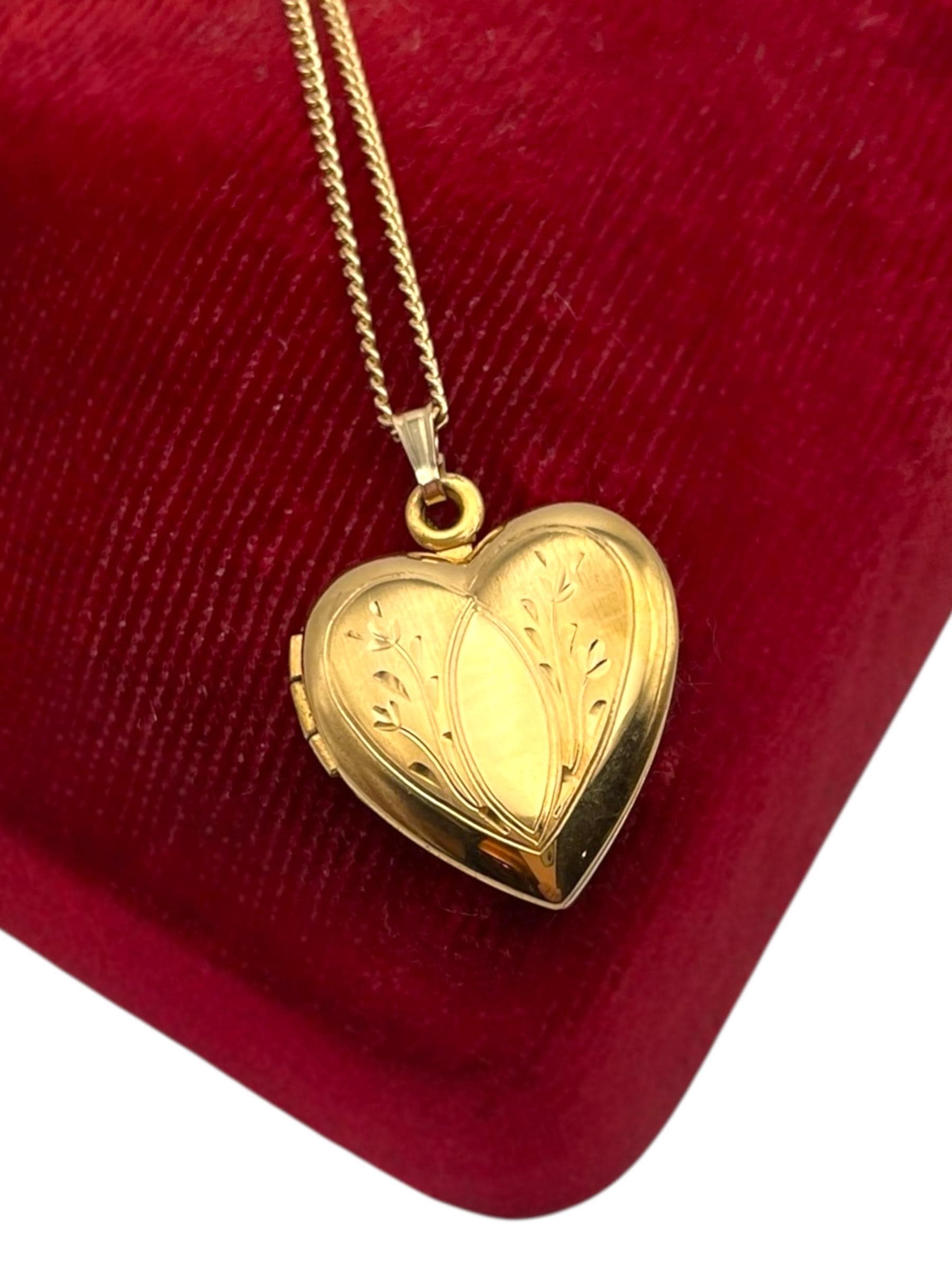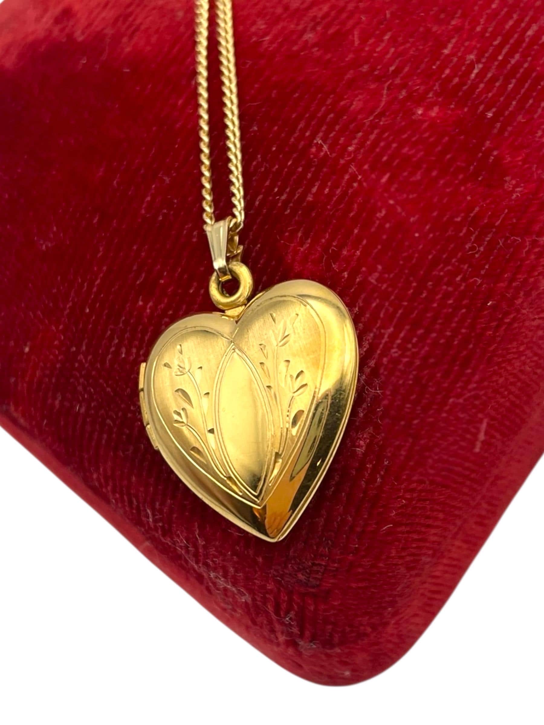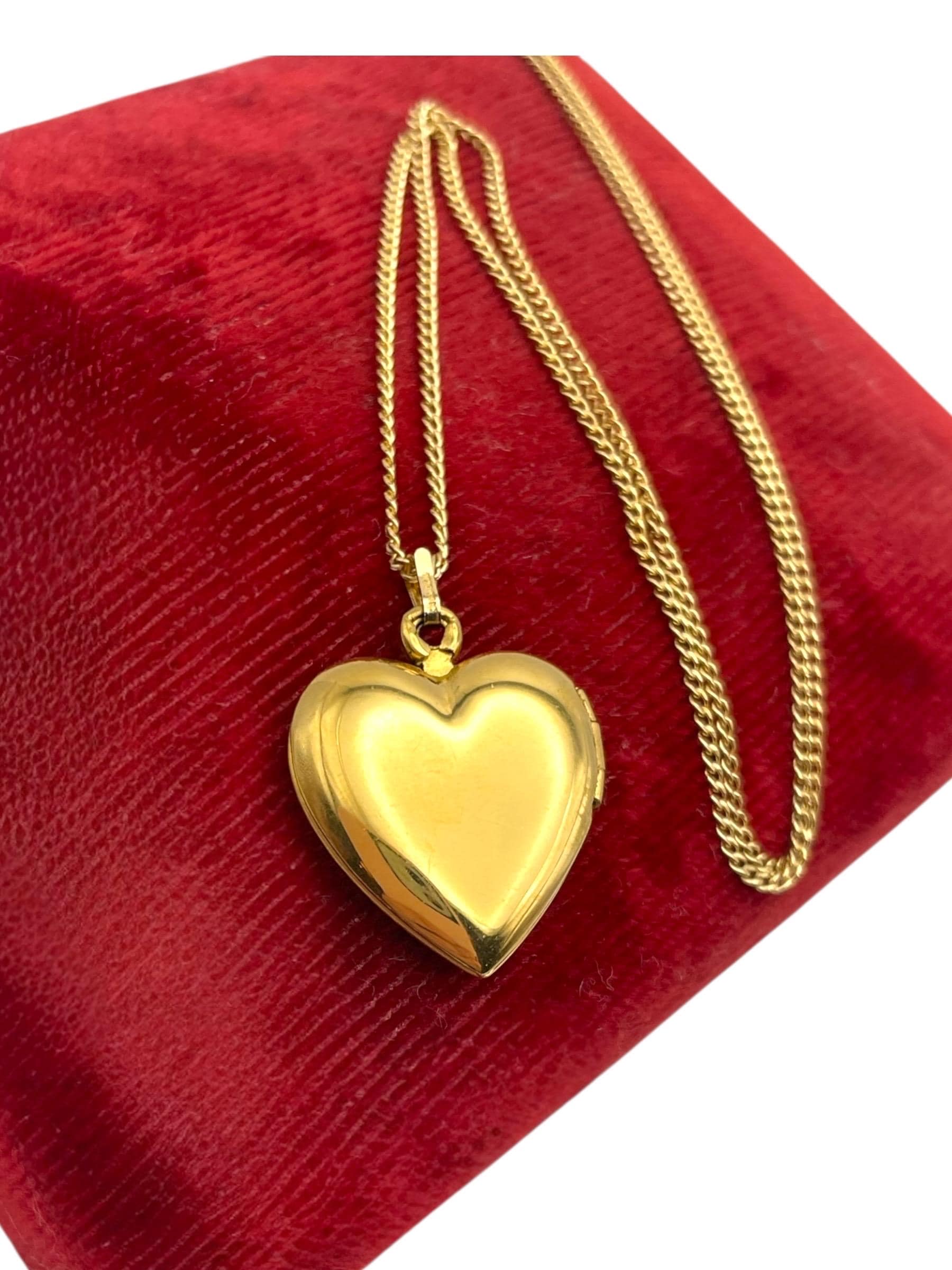 The locket has been attached to a new chain. The 14K gold filled 18” long curb chain has a spring ring clasp that opens and closes securely. The locket can be purchased with or without the chain.