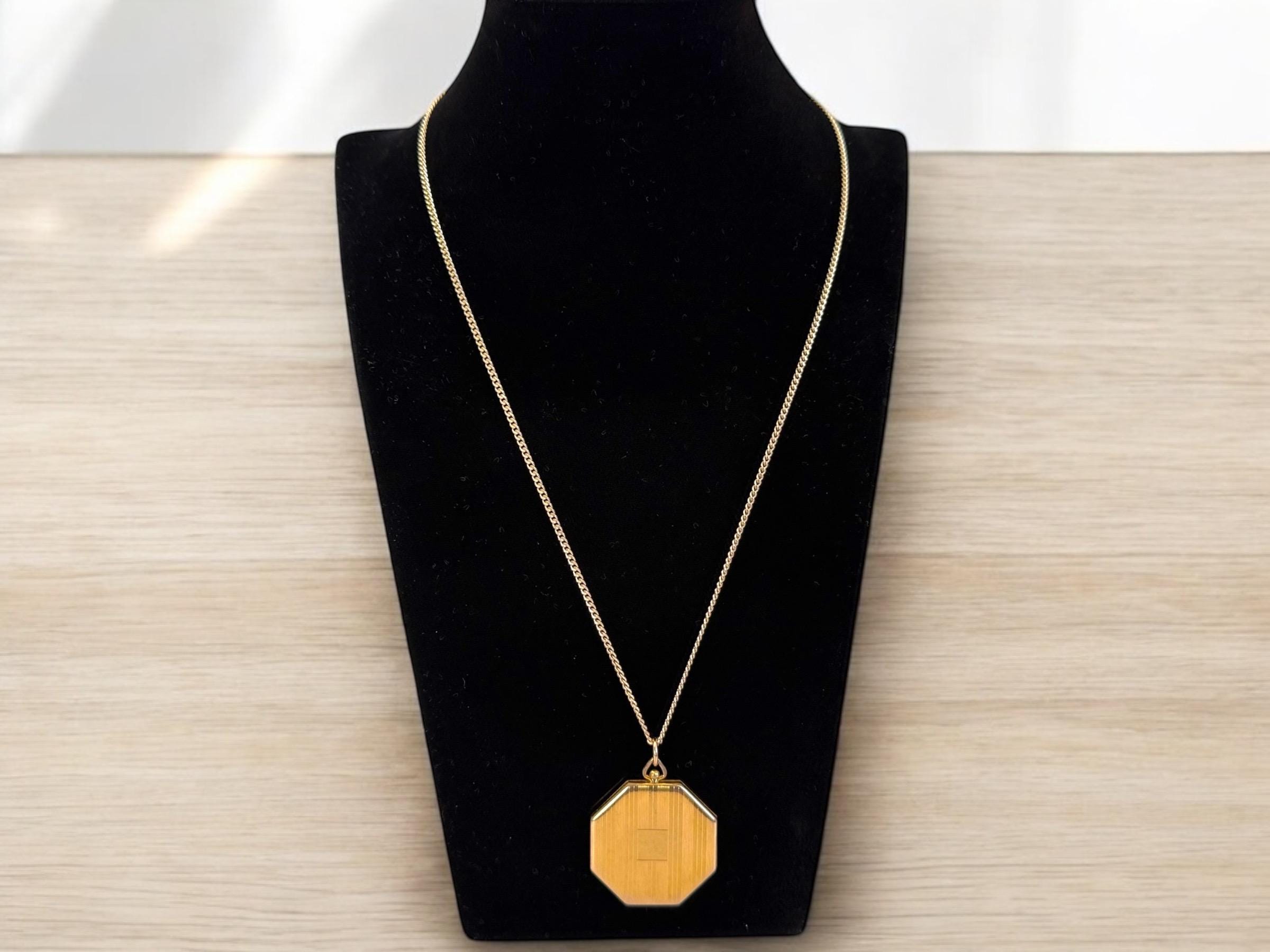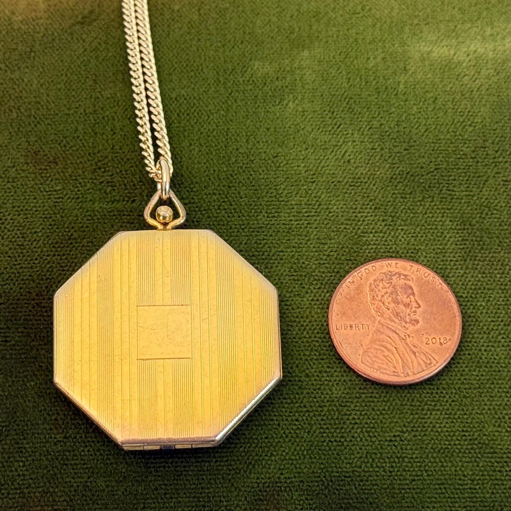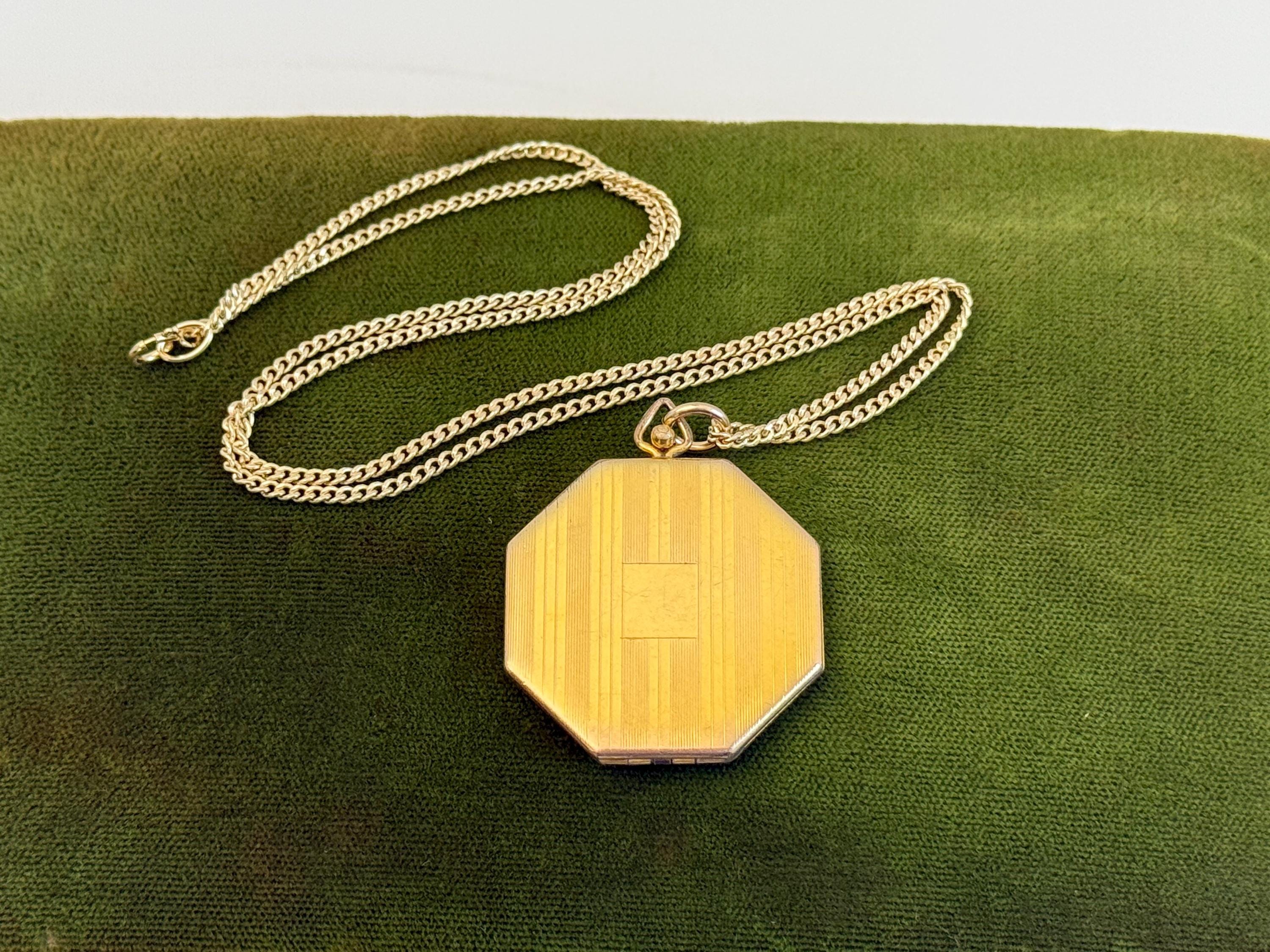 Vintage Gold Filled Etched Octagon Locket Necklace 14K GF Chain - 4 Photo Pendant: HFB Barrows
