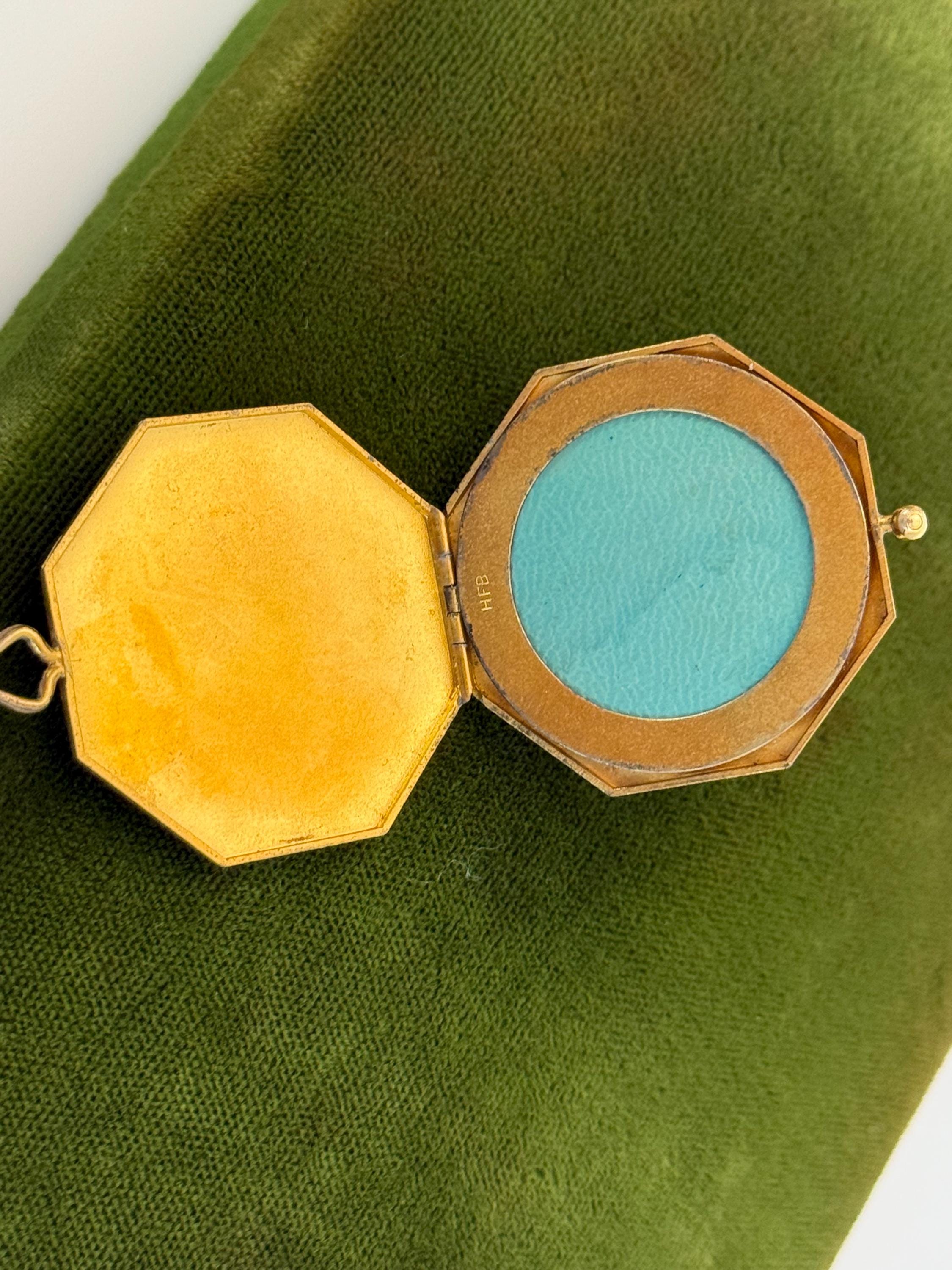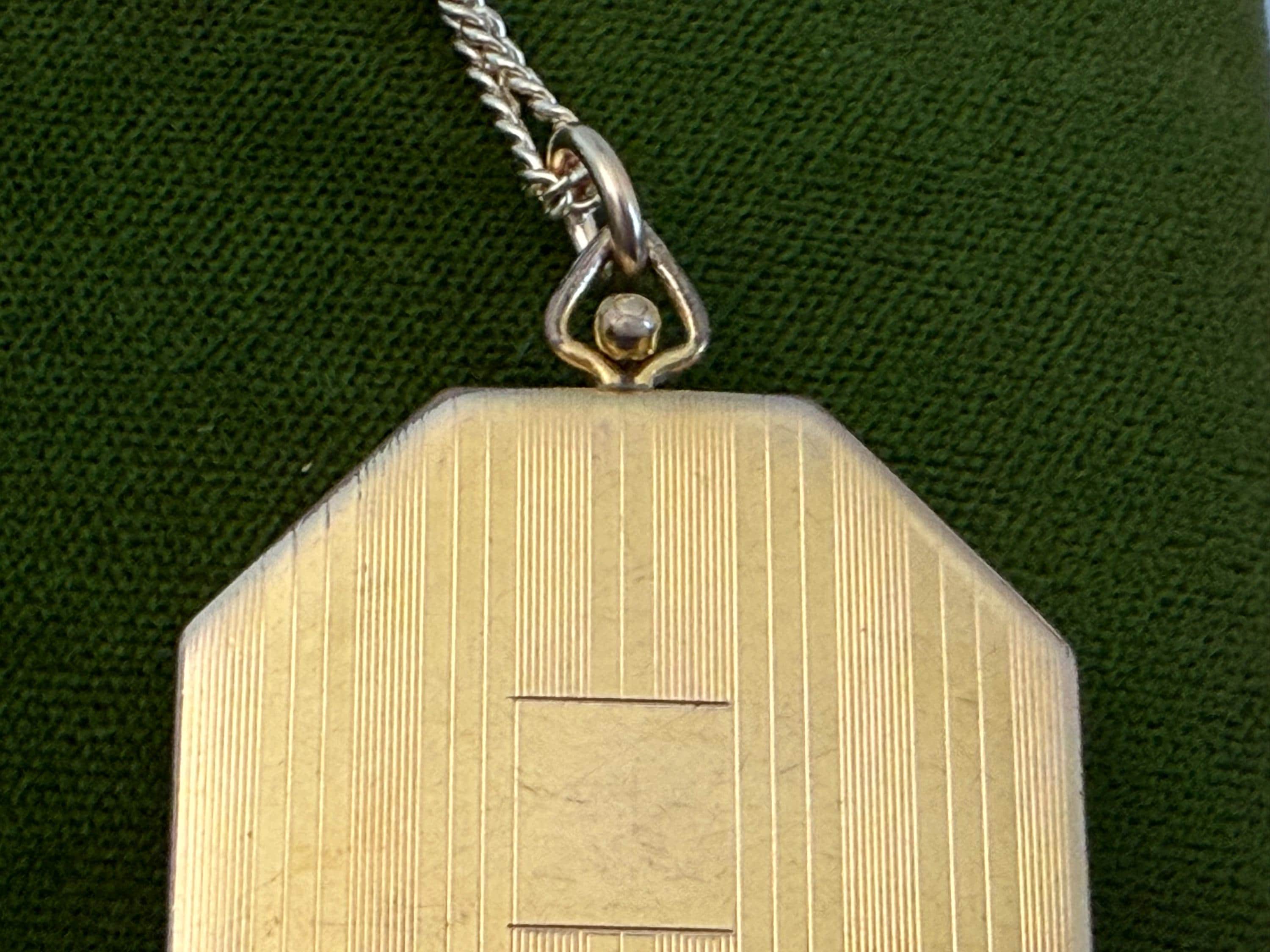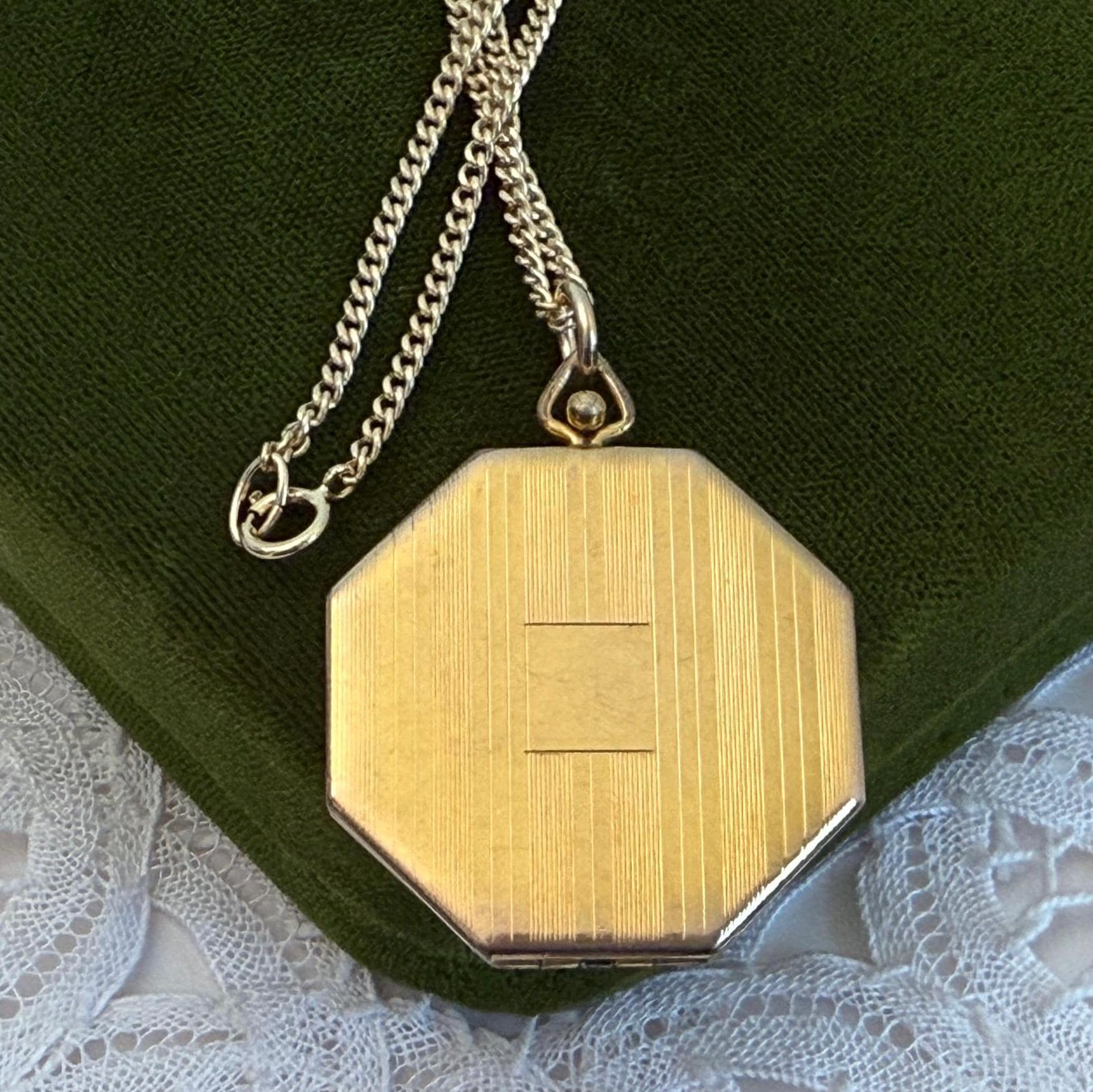 Vintage Gold Filled Etched Octagon Locket Necklace 14K GF Chain - 4 Photo Pendant: HFB Barrows