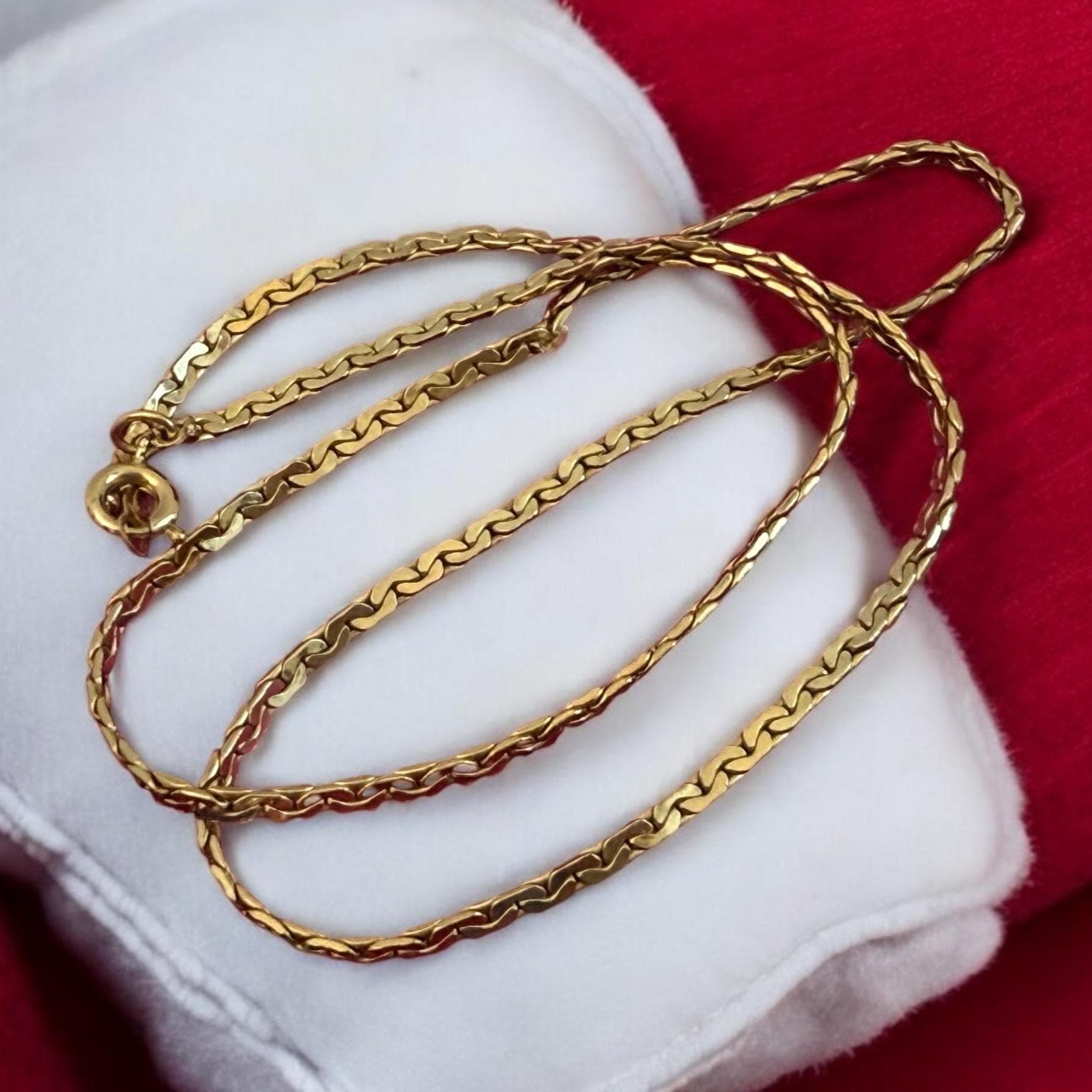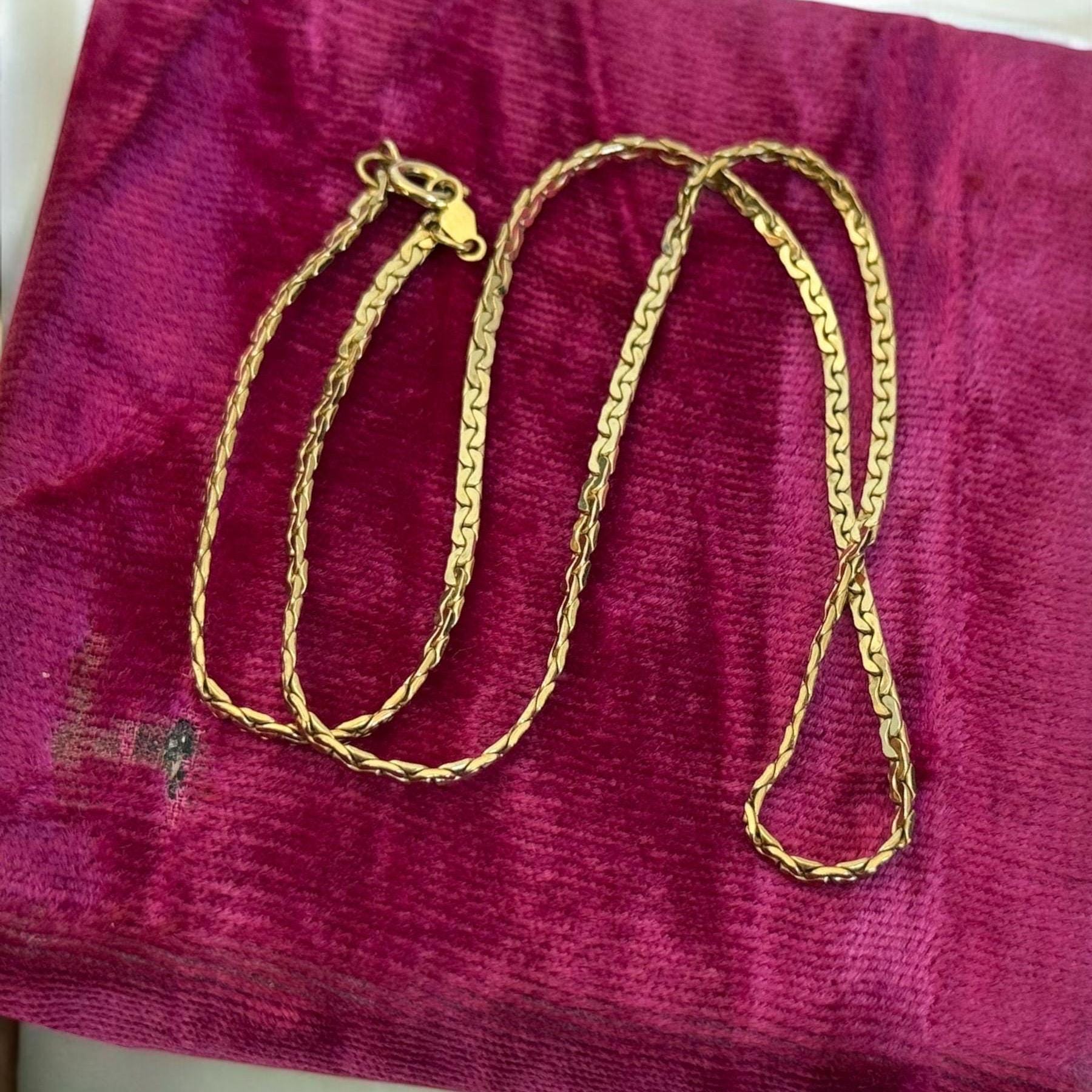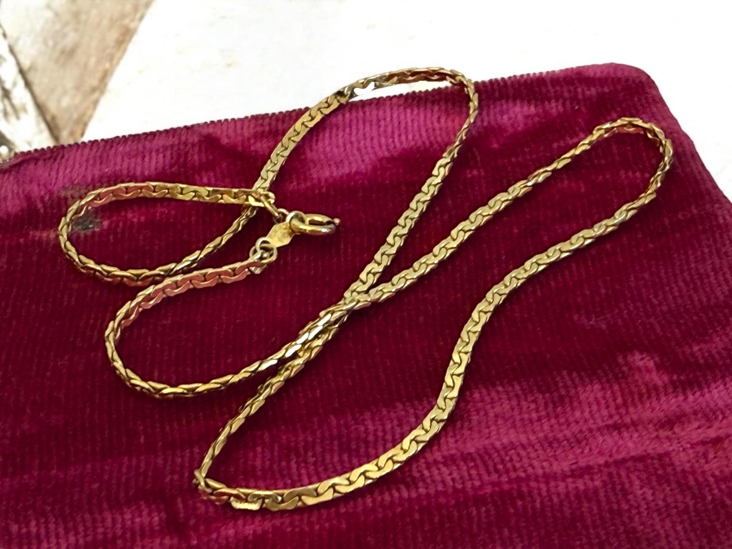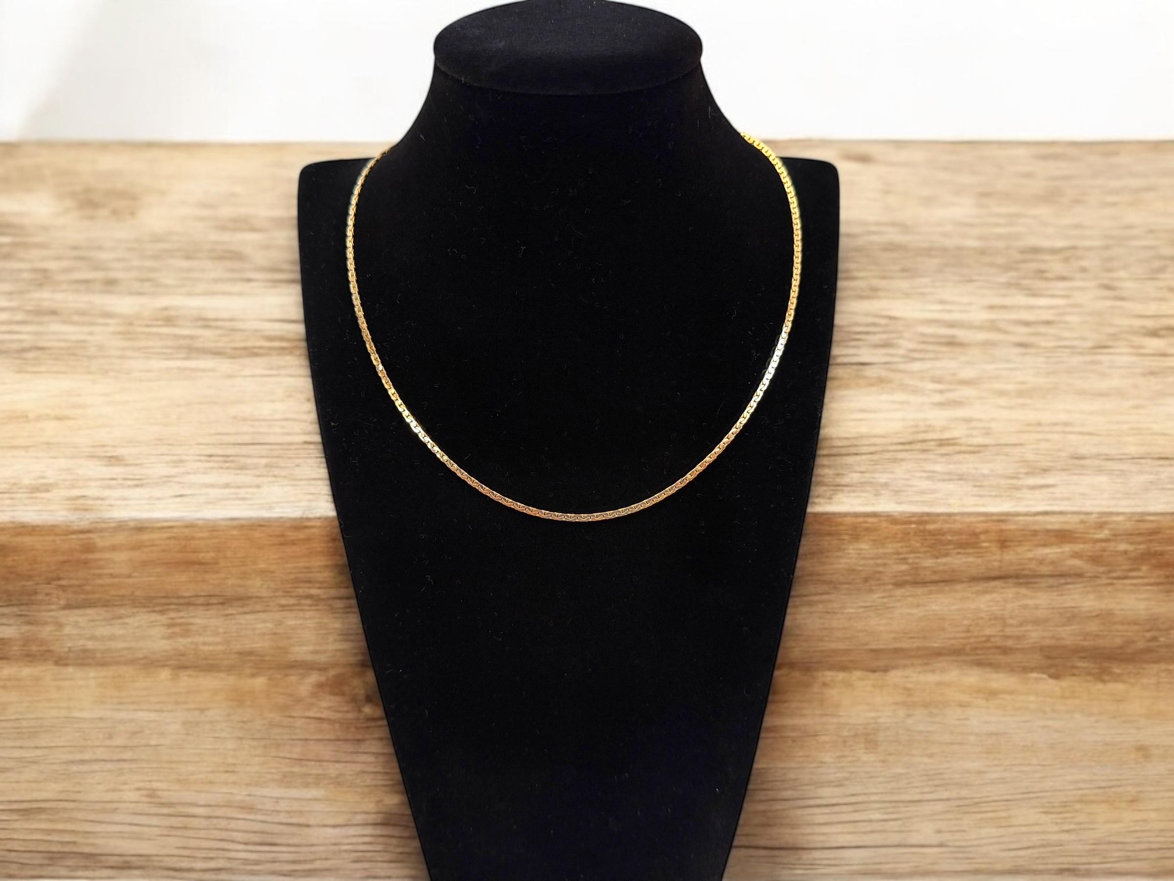 Beautiful vintage necklace! Lovely and simple. This gold filled flat chain is shiny and gorgeous. Necklace lays flat when worn.