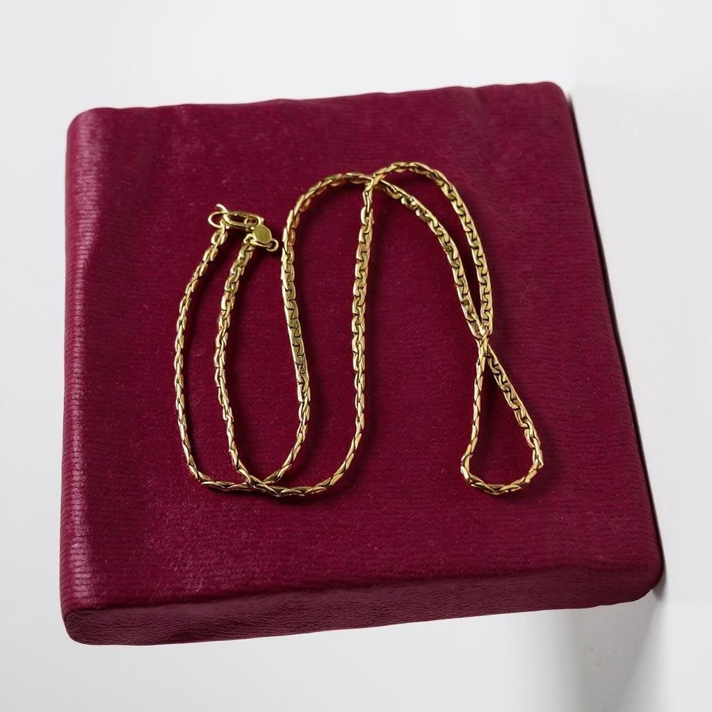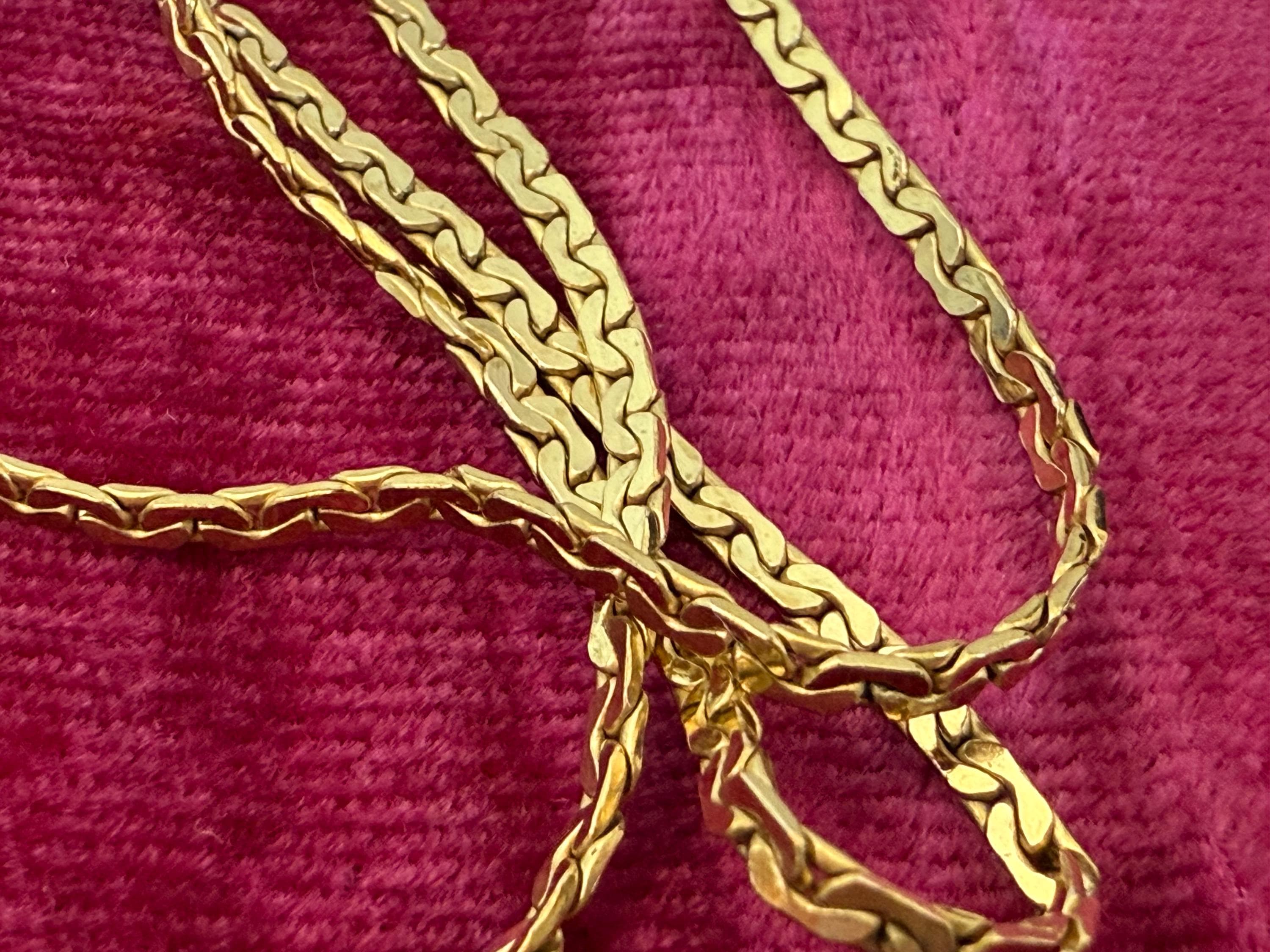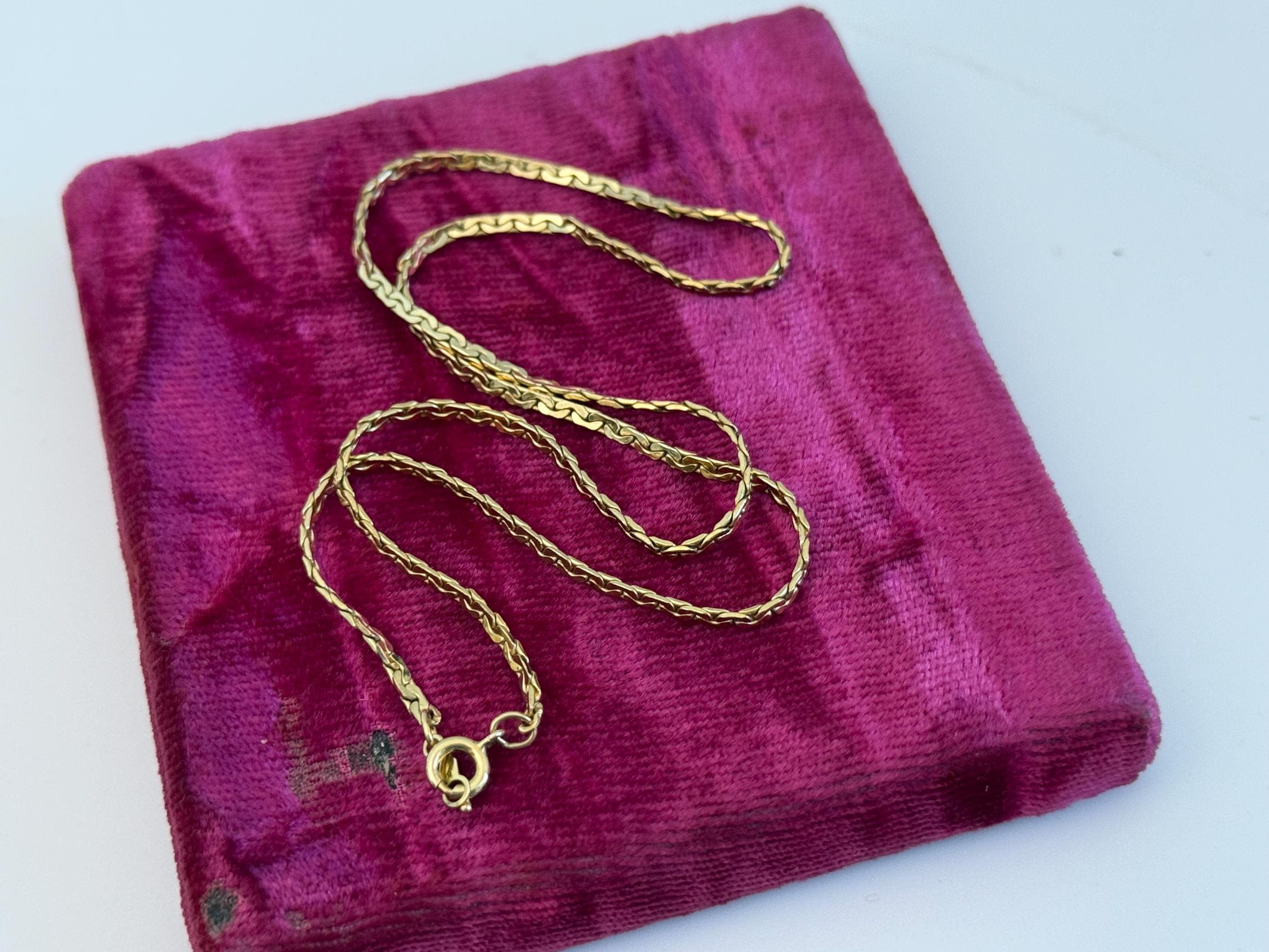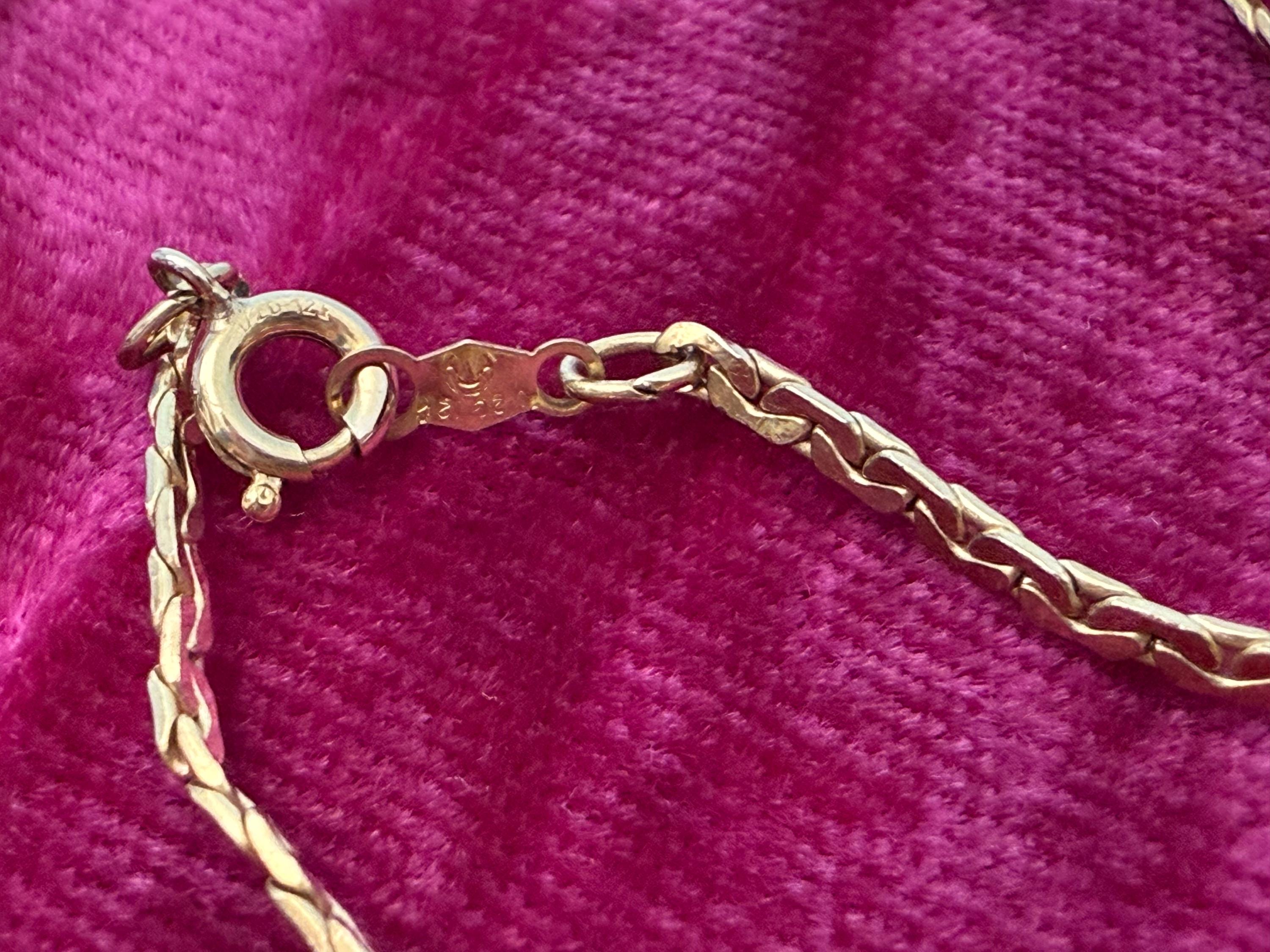 Beautiful vintage necklace! Lovely and simple. This gold filled flat chain is shiny and gorgeous. Necklace lays flat when worn.