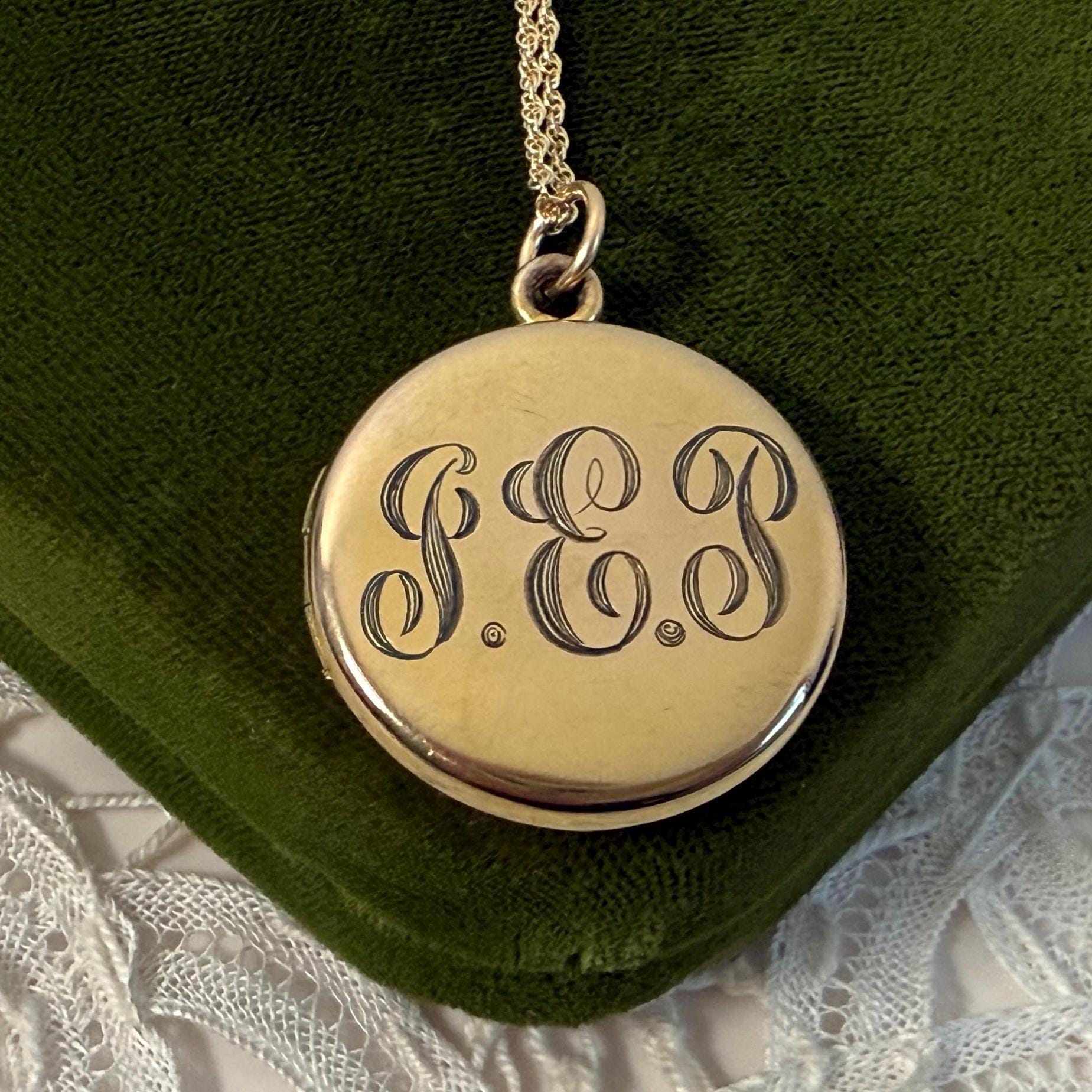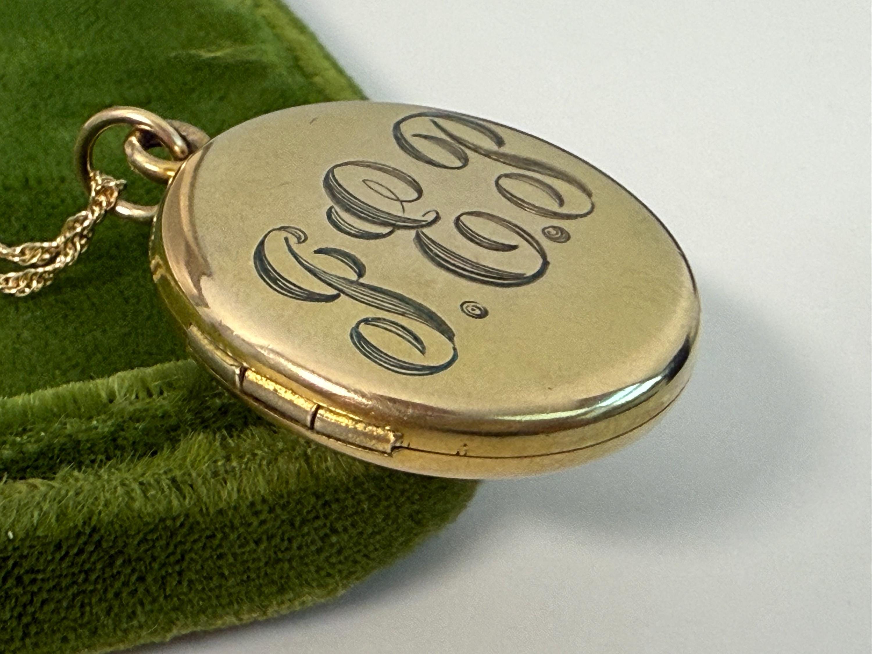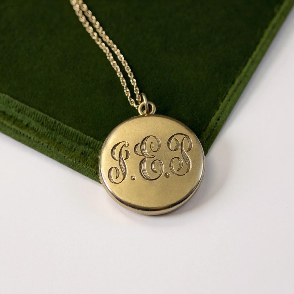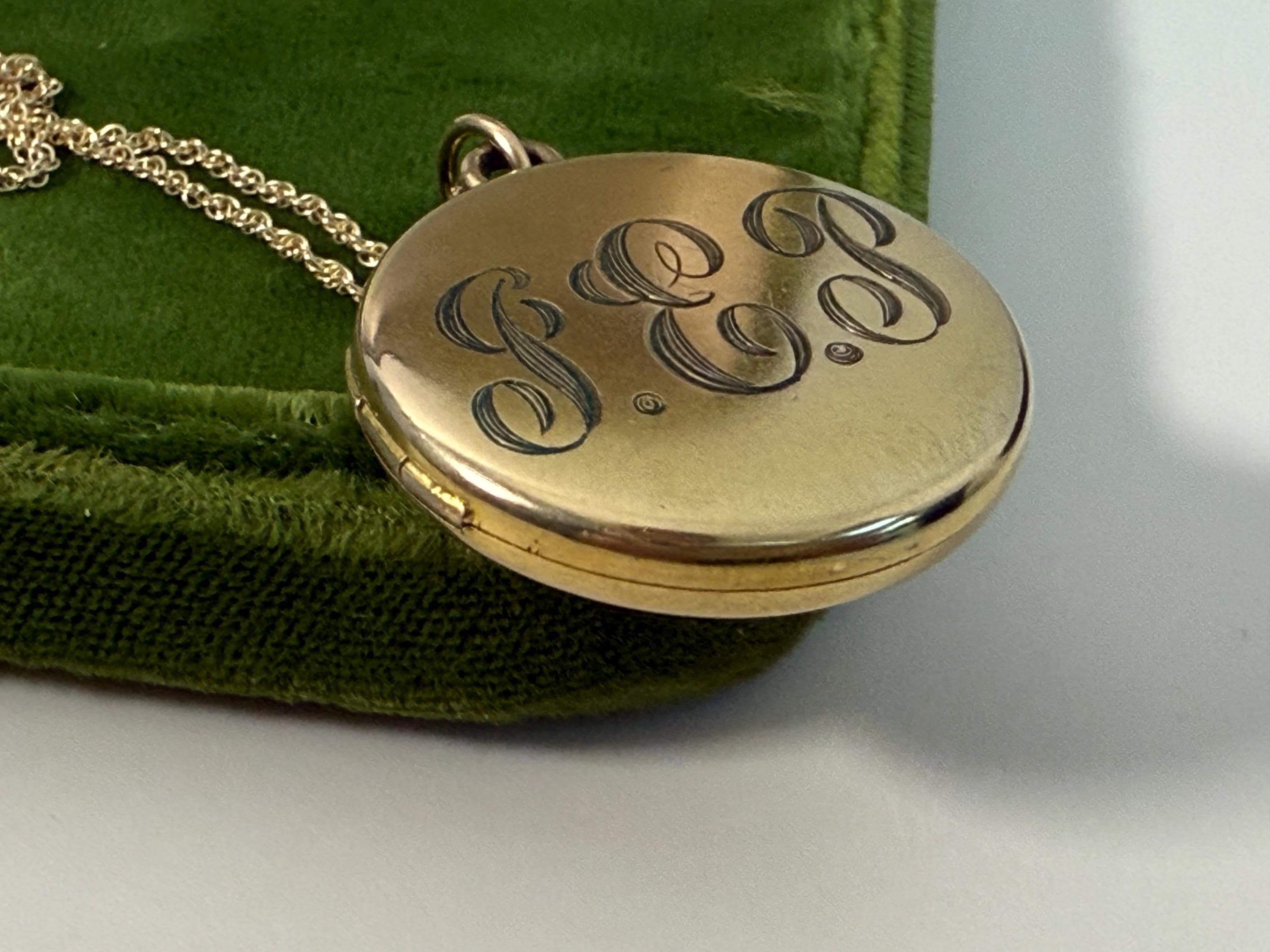 Antique Gold Filled Round Locket Necklace: Foster Bailey GEP Monogram Photo Jewelry, 14K GF Chain