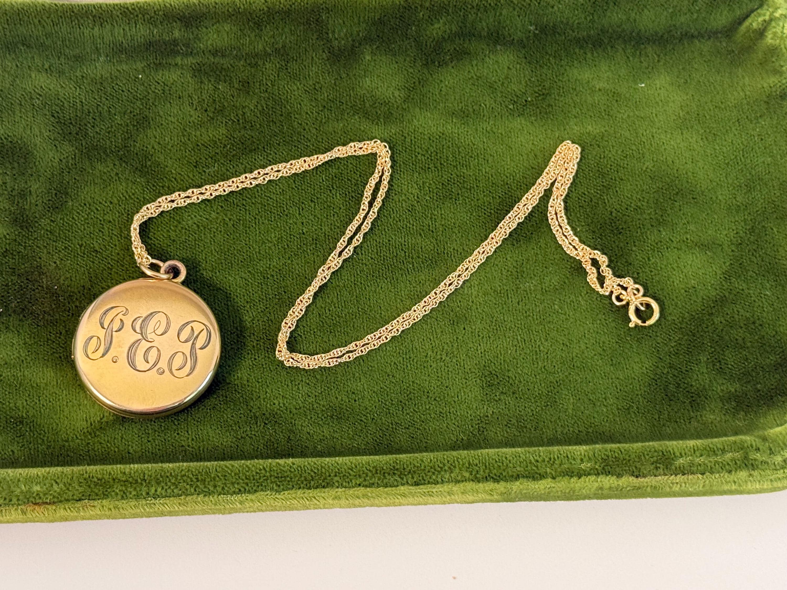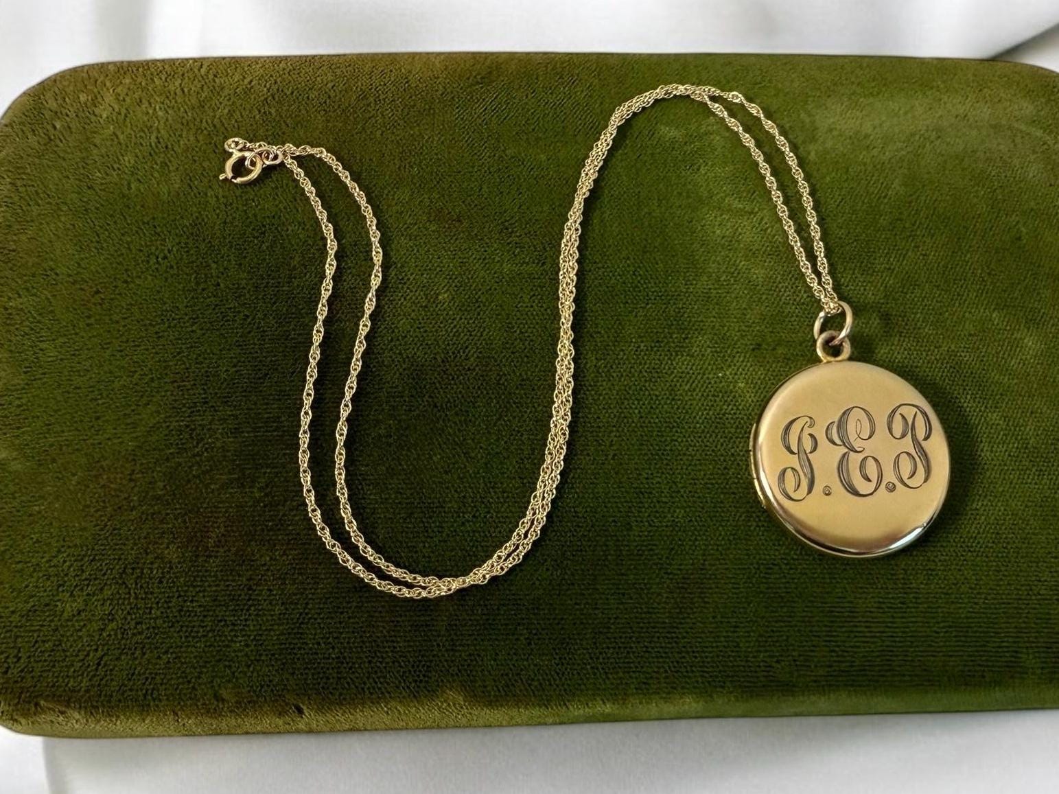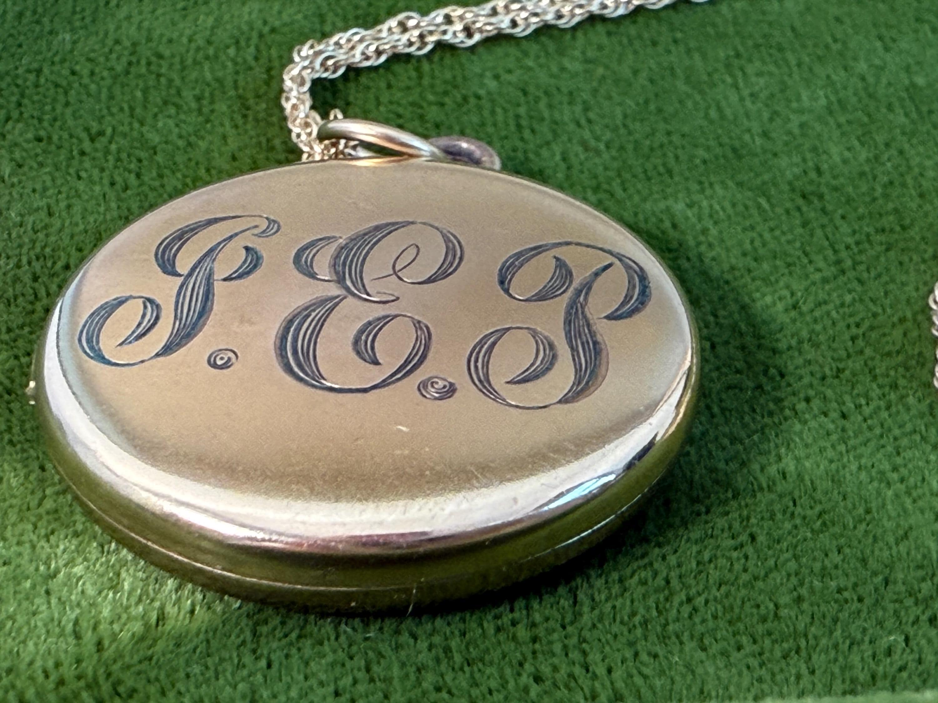Antique Gold Filled Round Locket Necklace: Foster Bailey GEP Monogram Photo Jewelry, 14K GF Chain