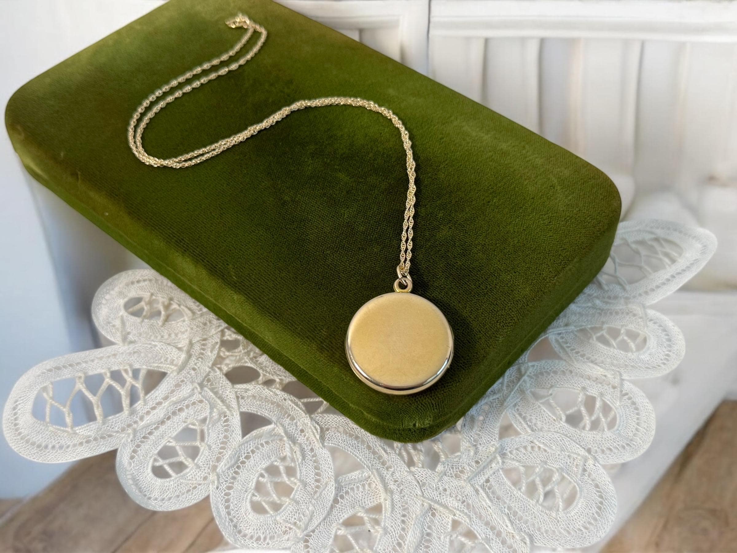 The locket is attached to a new 14K fine gold filled rope chain. The locket can be purchased with or without the chain.