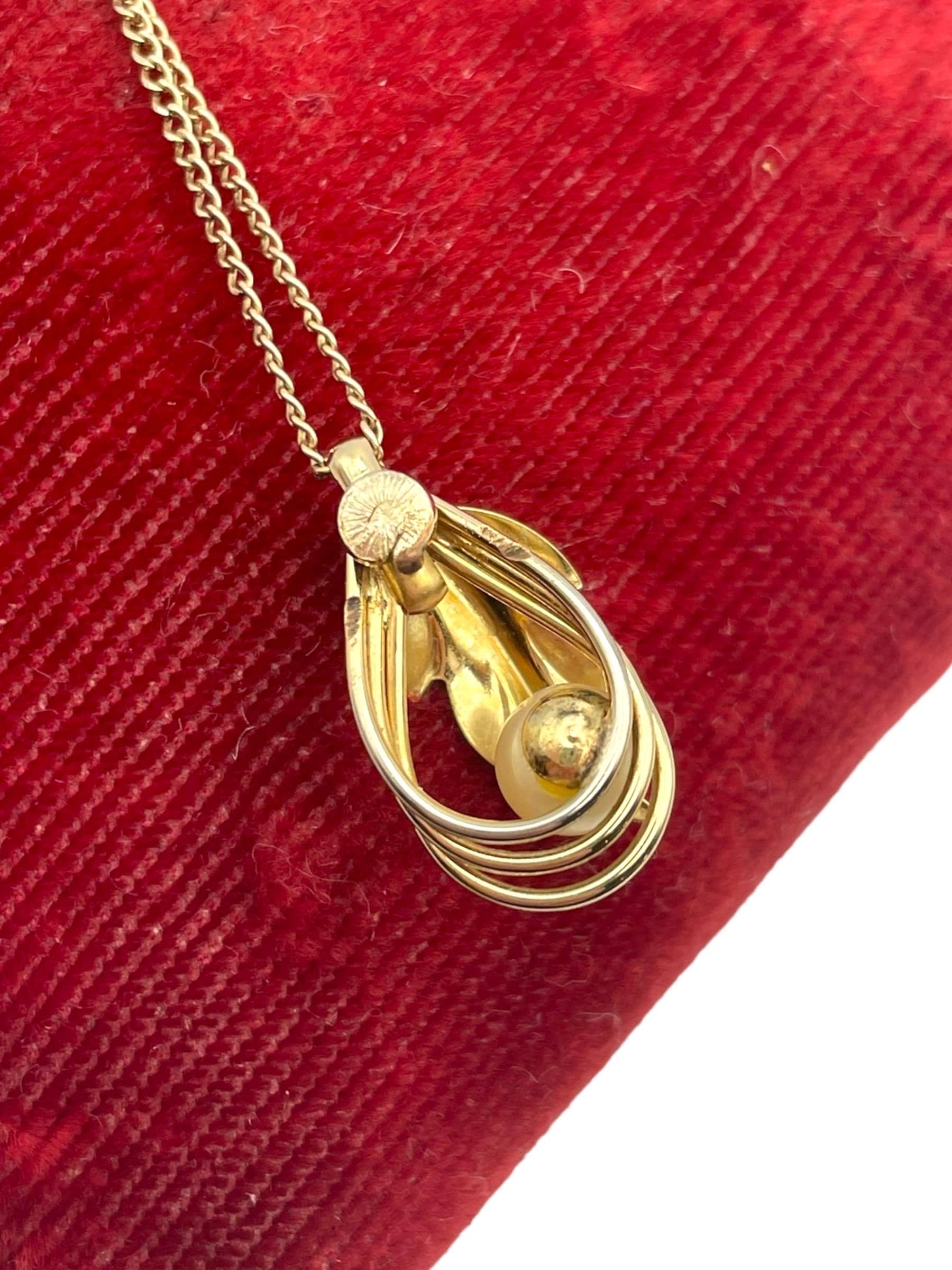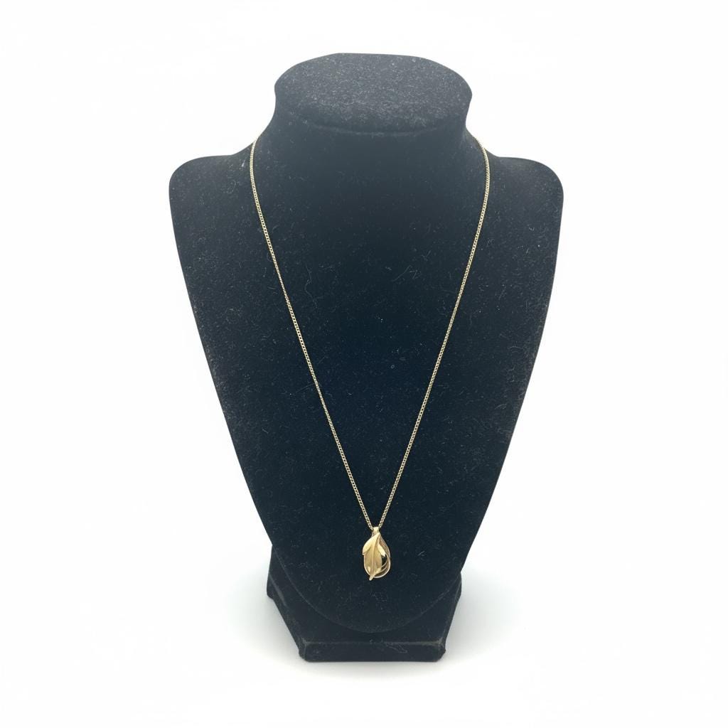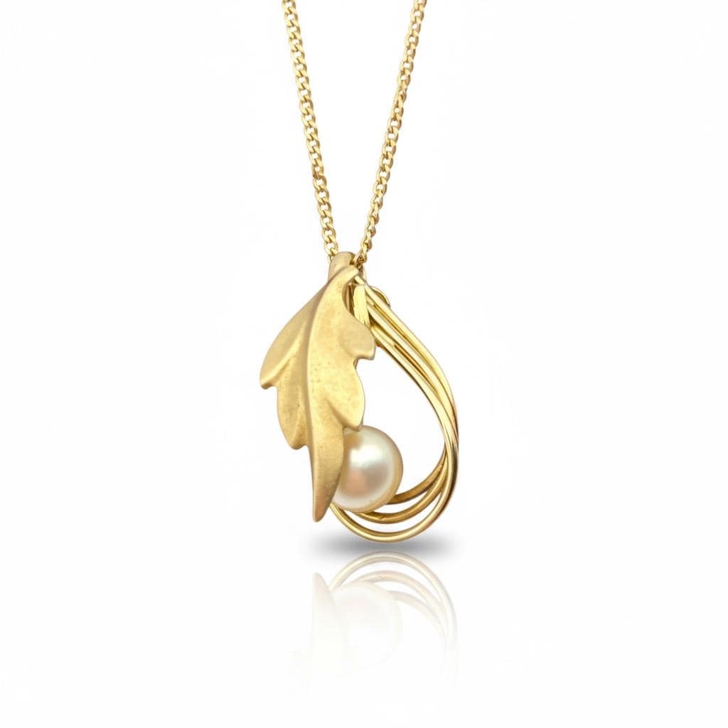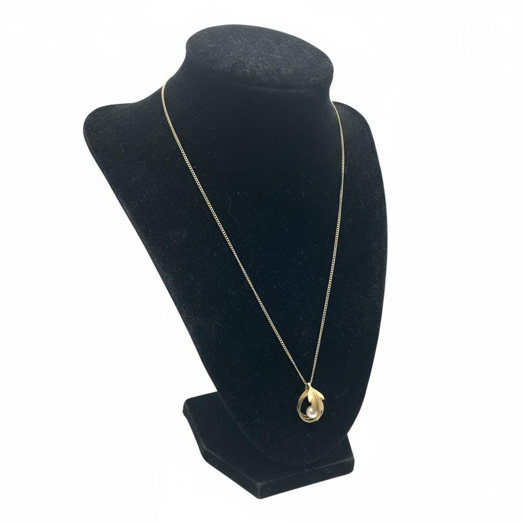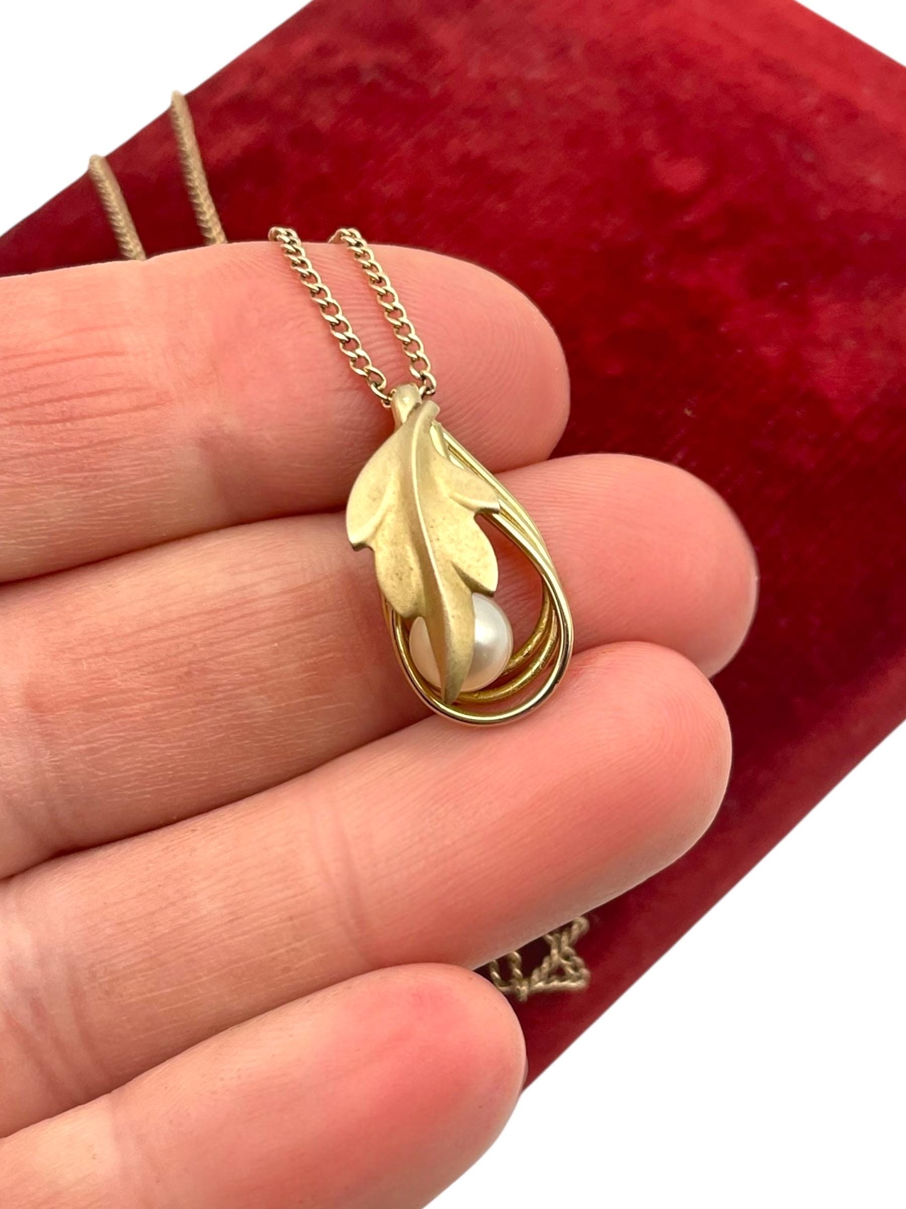 Vintage Gold Filled Pearl Leaf Pendant Necklace - 12K GF Chain - Retro Jewelry Gift for Her