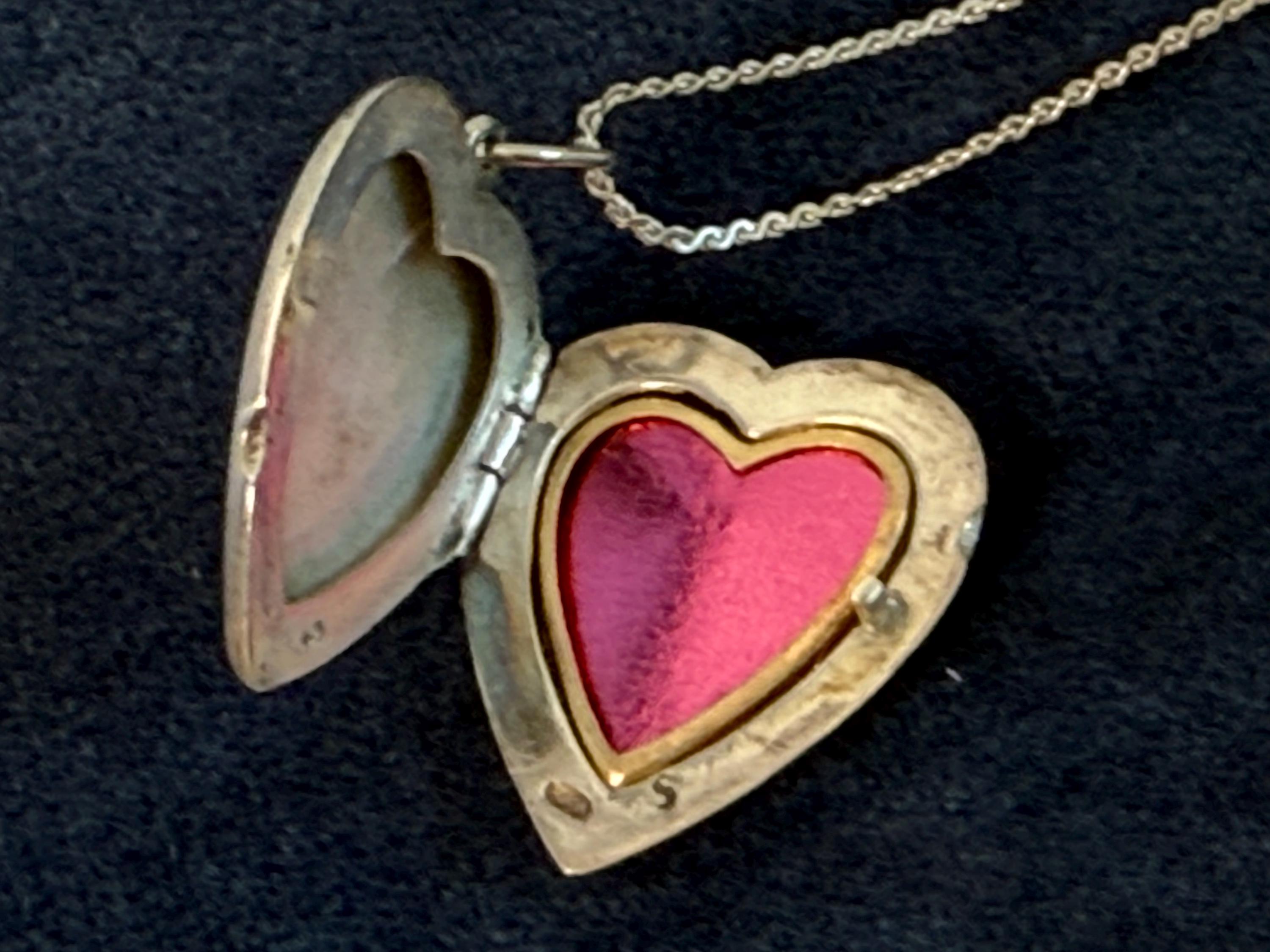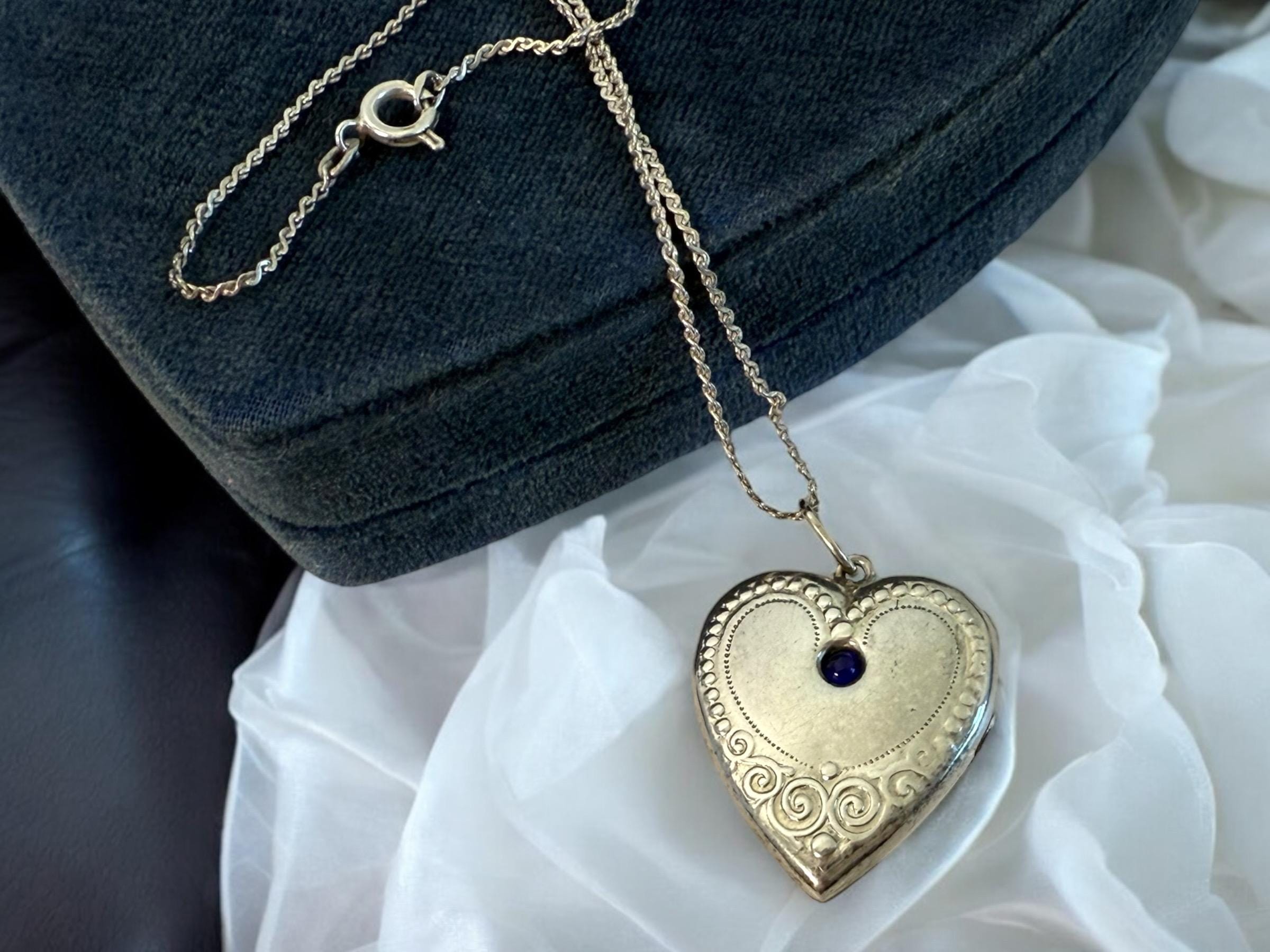 The locket hangs on a fine vintage 925 silver “S” link chain that is 18" long.