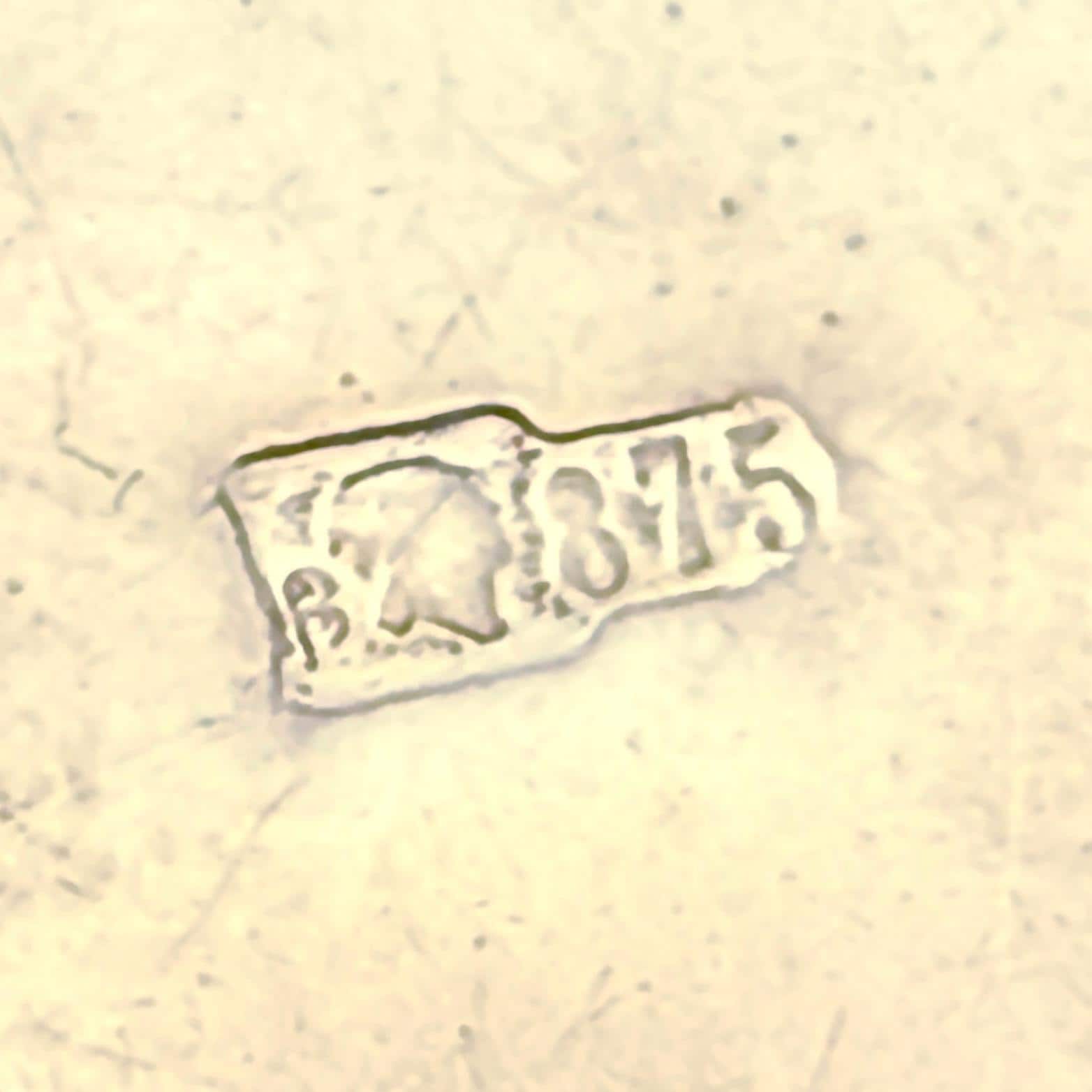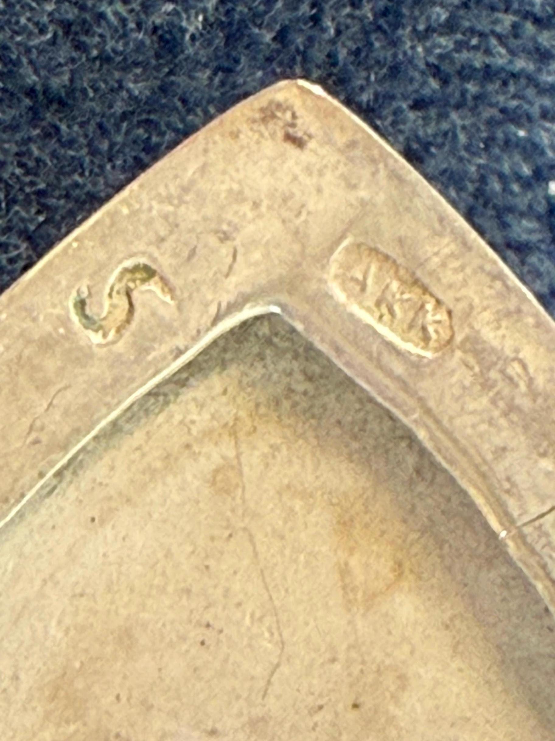 The locket is marked 875 S and has a maker’s mark of AAK. The back is marked with a beta symbol, a head and 875.