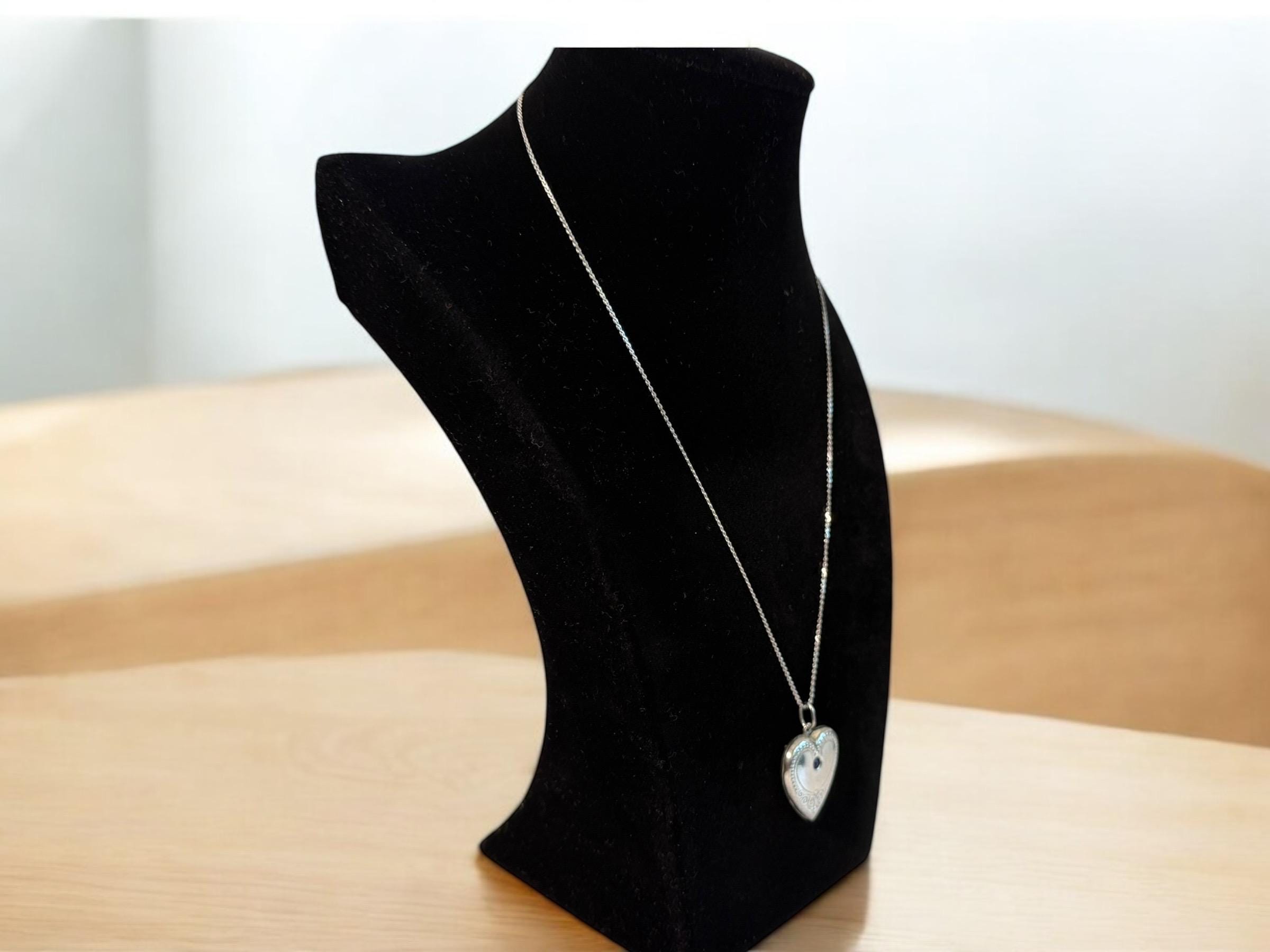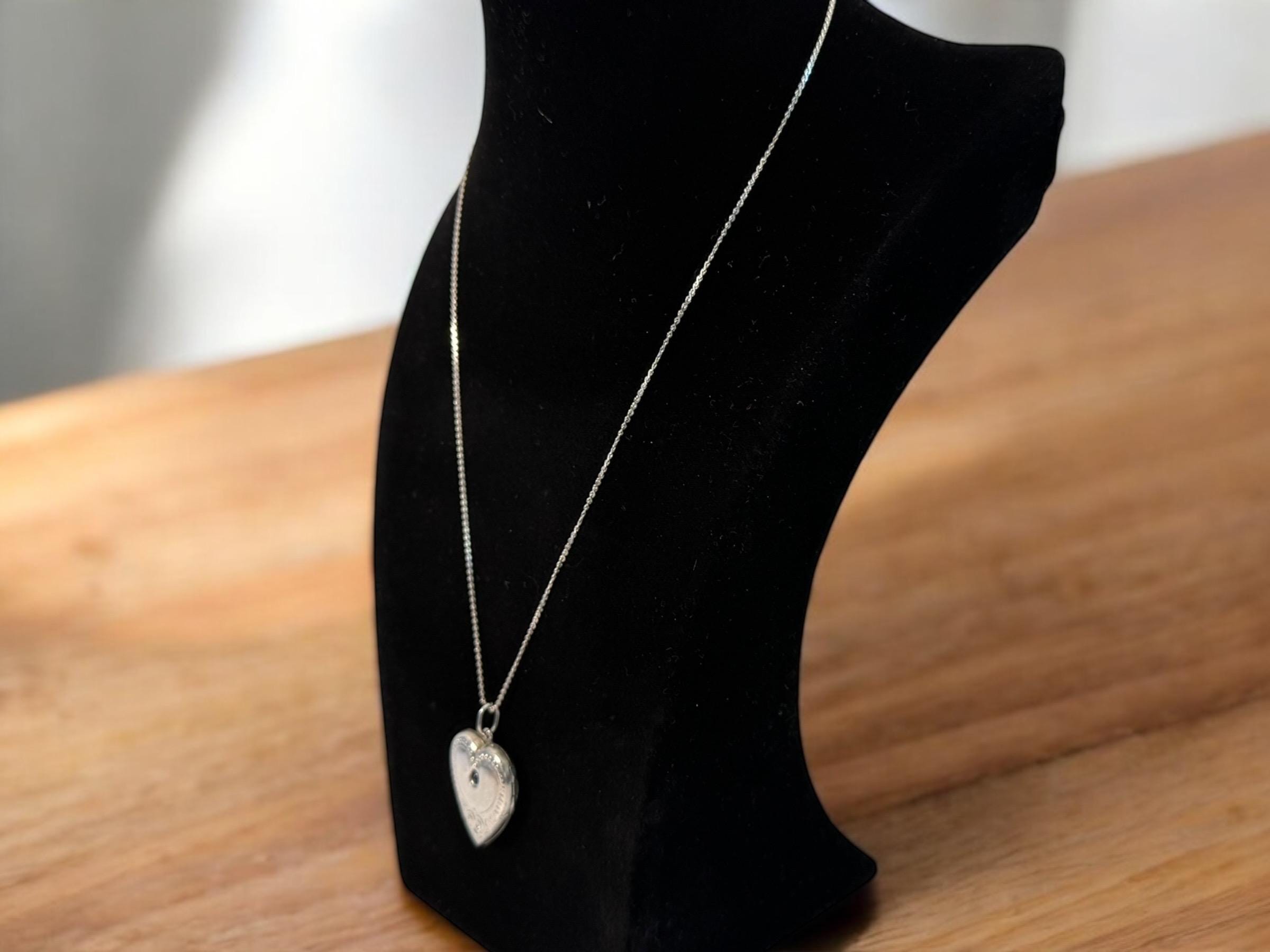 This antique heart locket hangs from a vintage 20” long slender sterling silver “S” link chain.