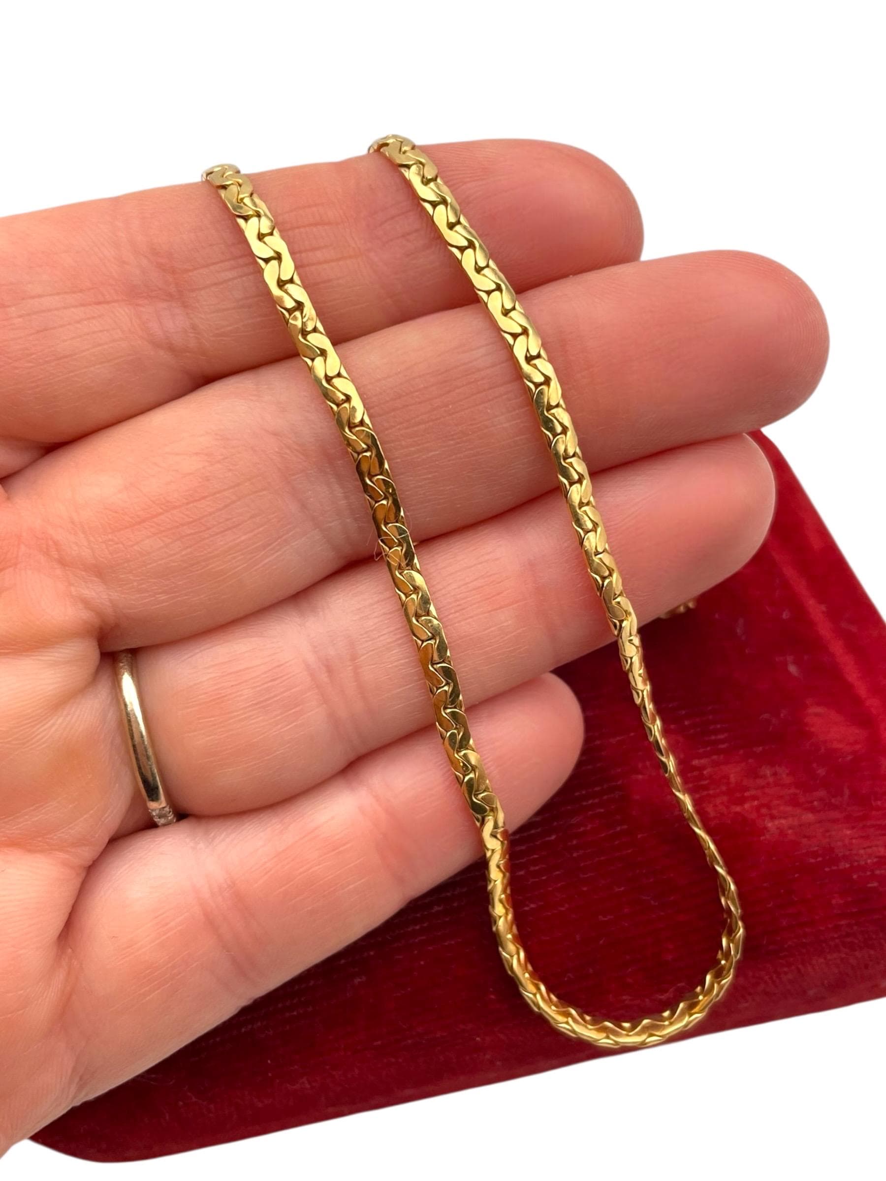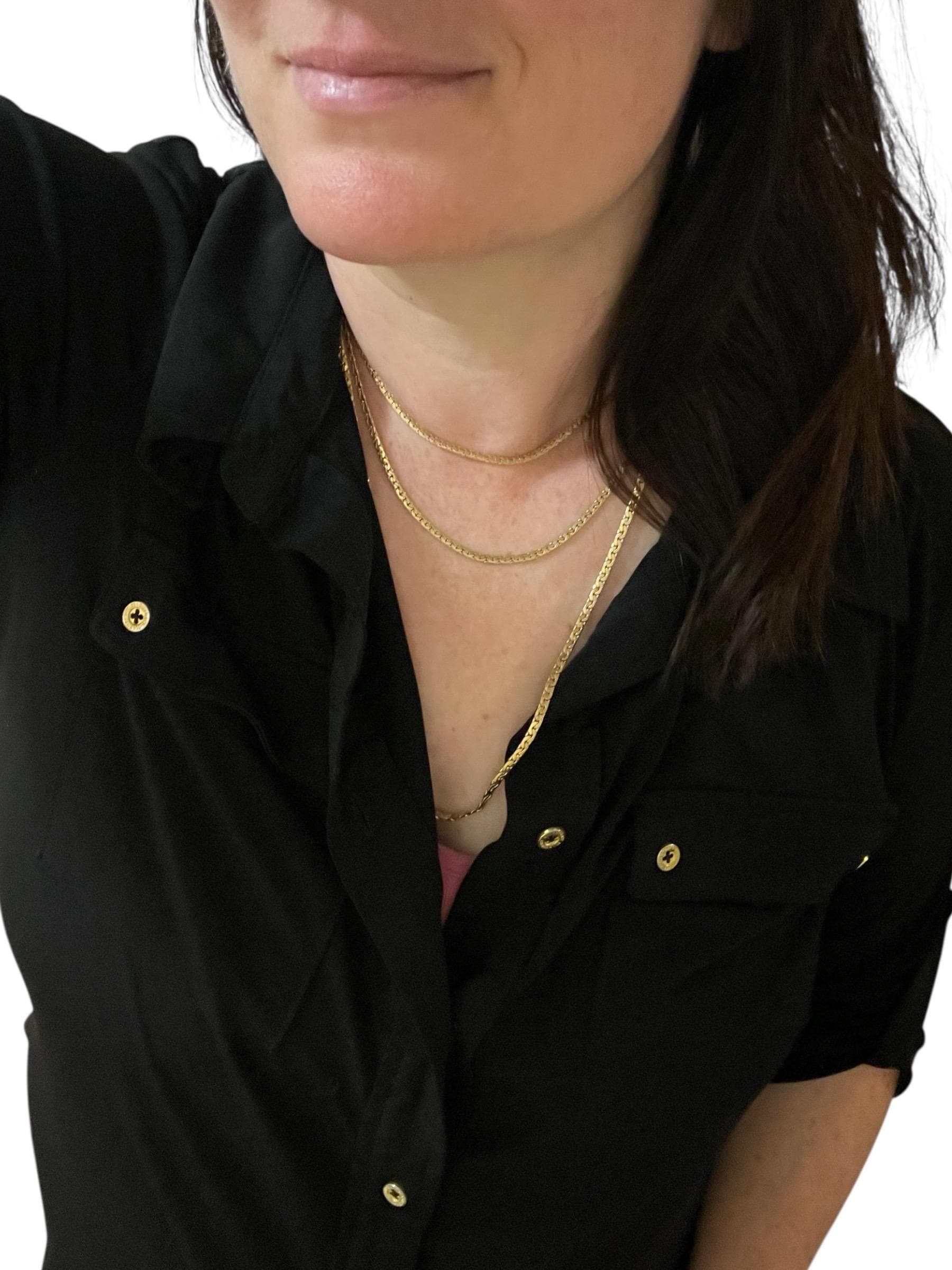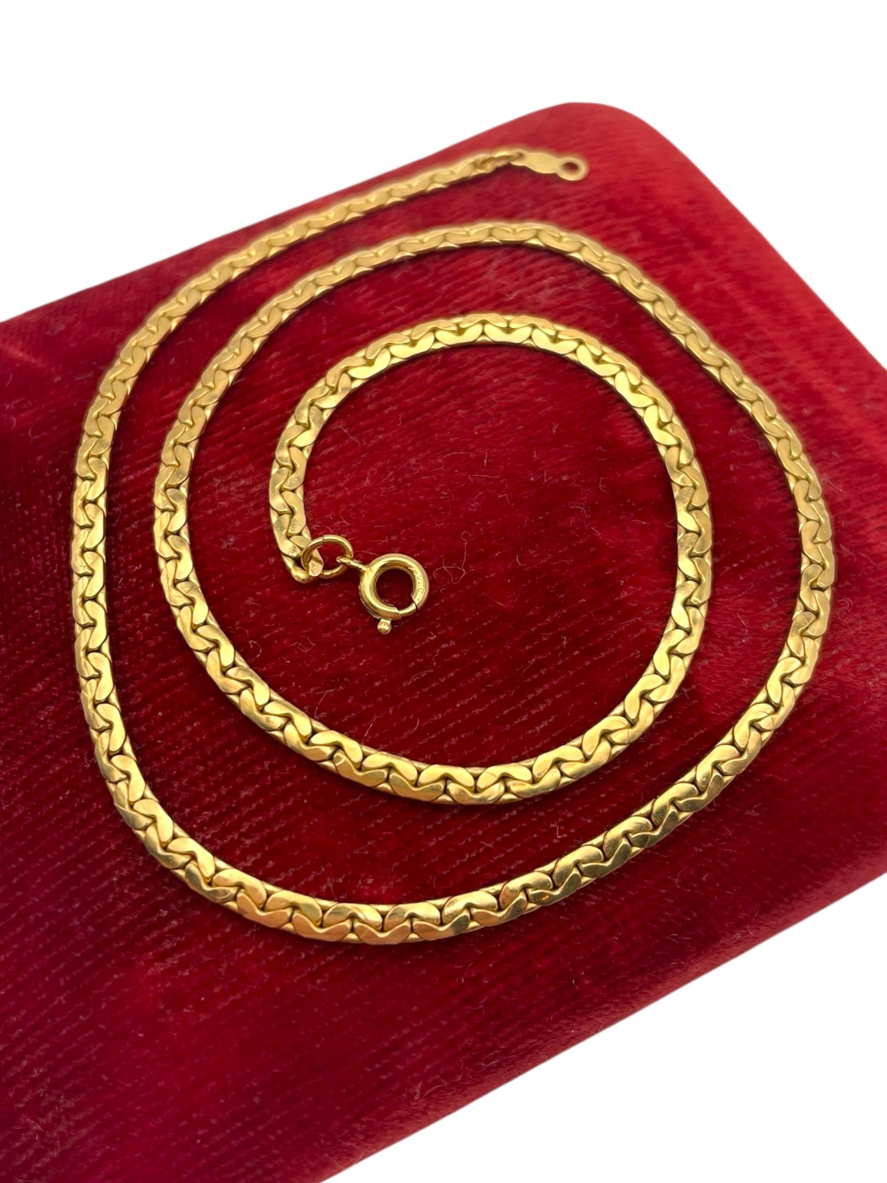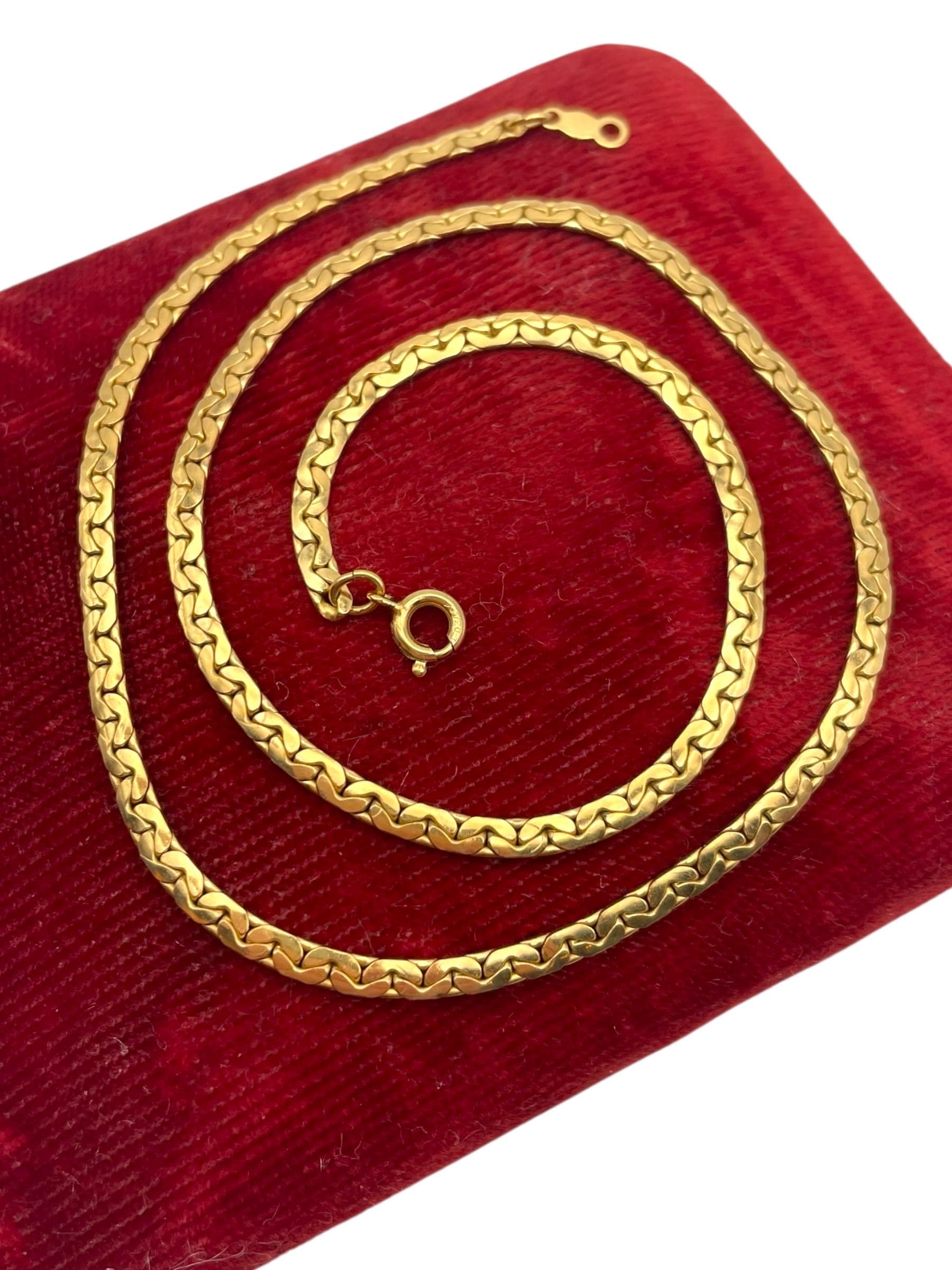 Beautiful vintage gold necklace! This gold filled flat c-link chain is shiny, gorgeous and unique. Add a pendant or wear alone. Great for layering. This is the shortest necklace shown in the layering photos.