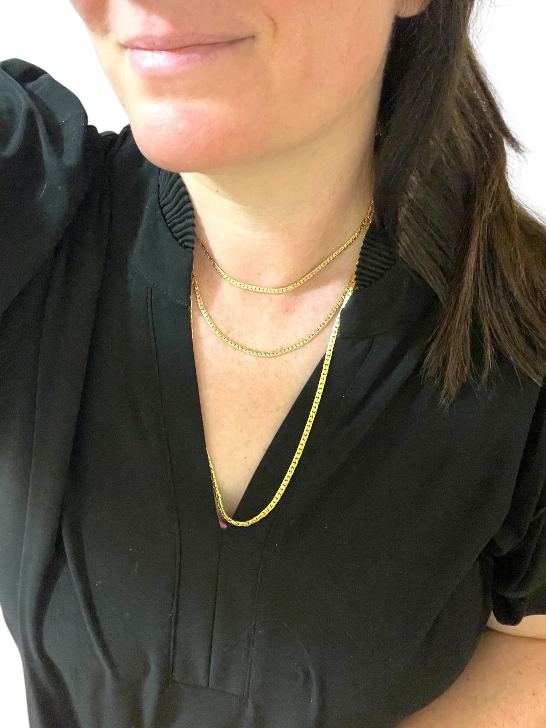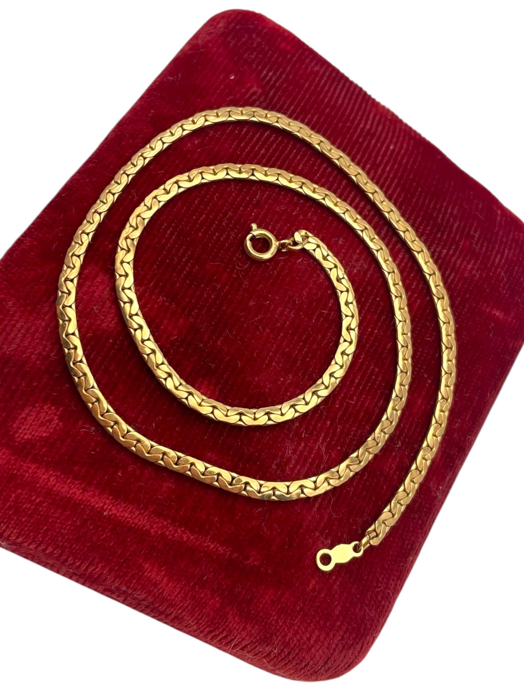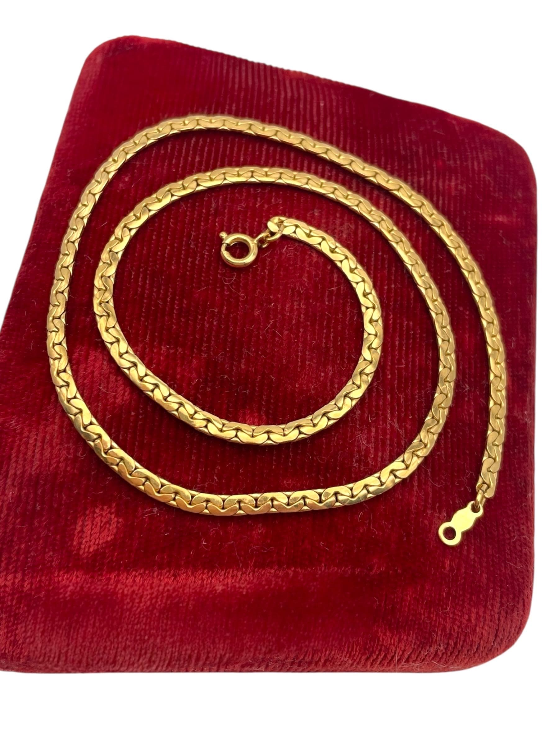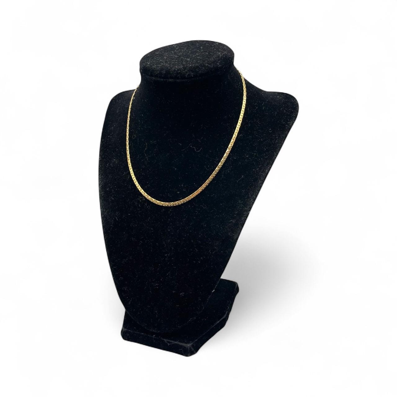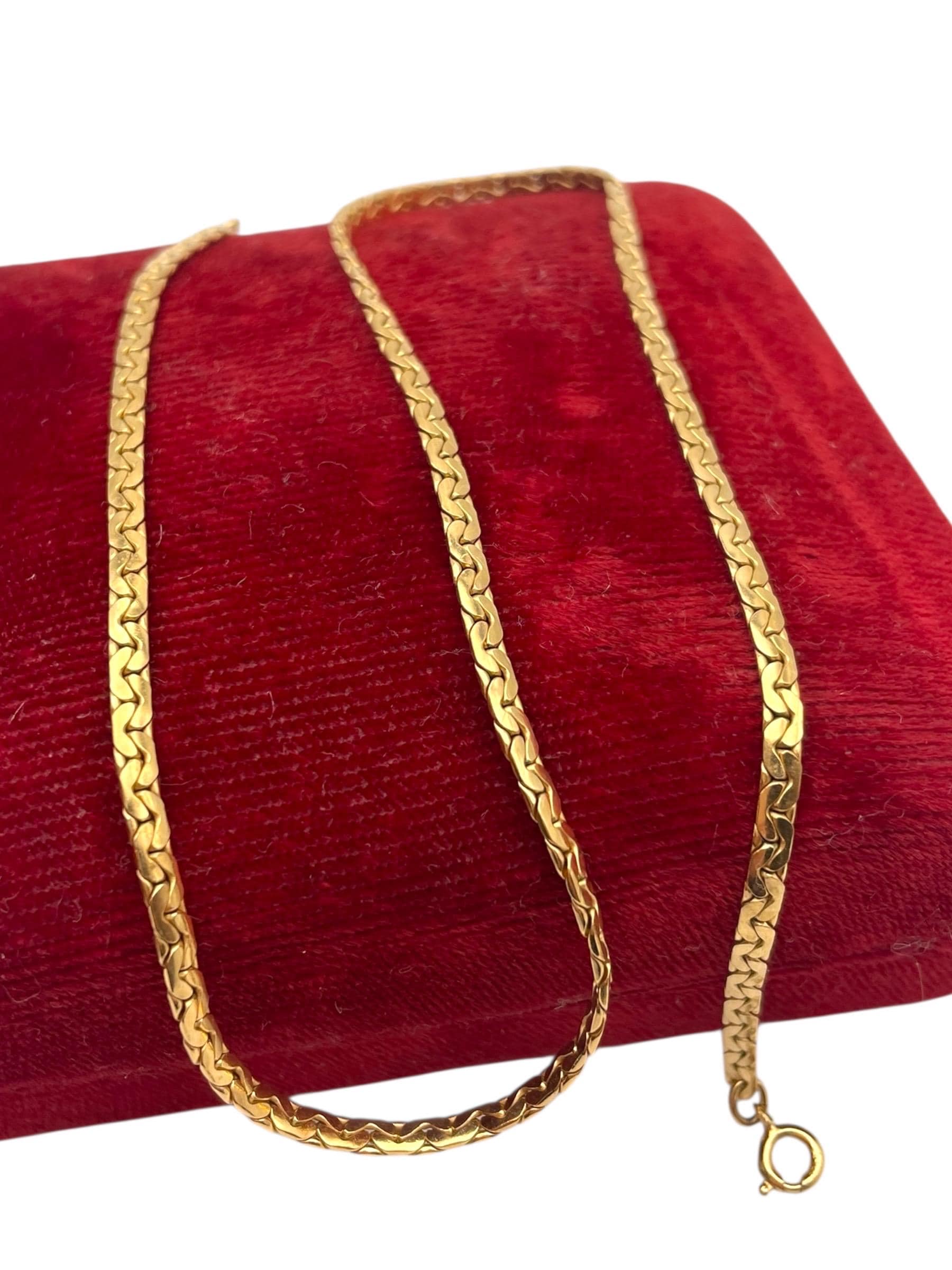 Beautiful vintage gold necklace! This gold filled flat c-link chain is shiny, gorgeous and unique. Add a pendant or wear alone. Great for layering. This is the shortest necklace shown in the layering photos.