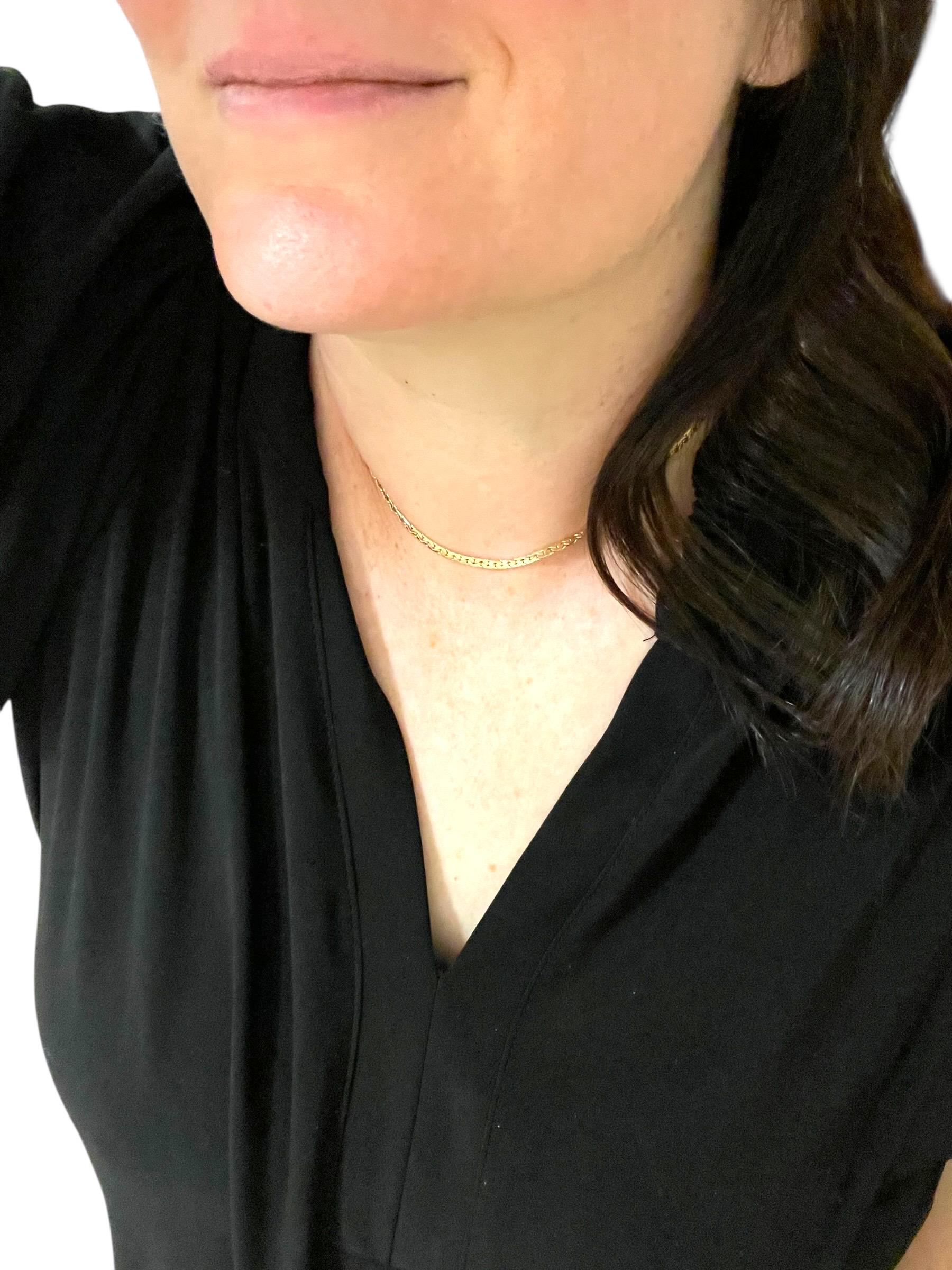 Vintage Flat 14K Yellow Gold Filled C Link Chain - Choker Necklace 15 Inch GF 3mm Layering Pendant Simple Minimal Caco Hallmark