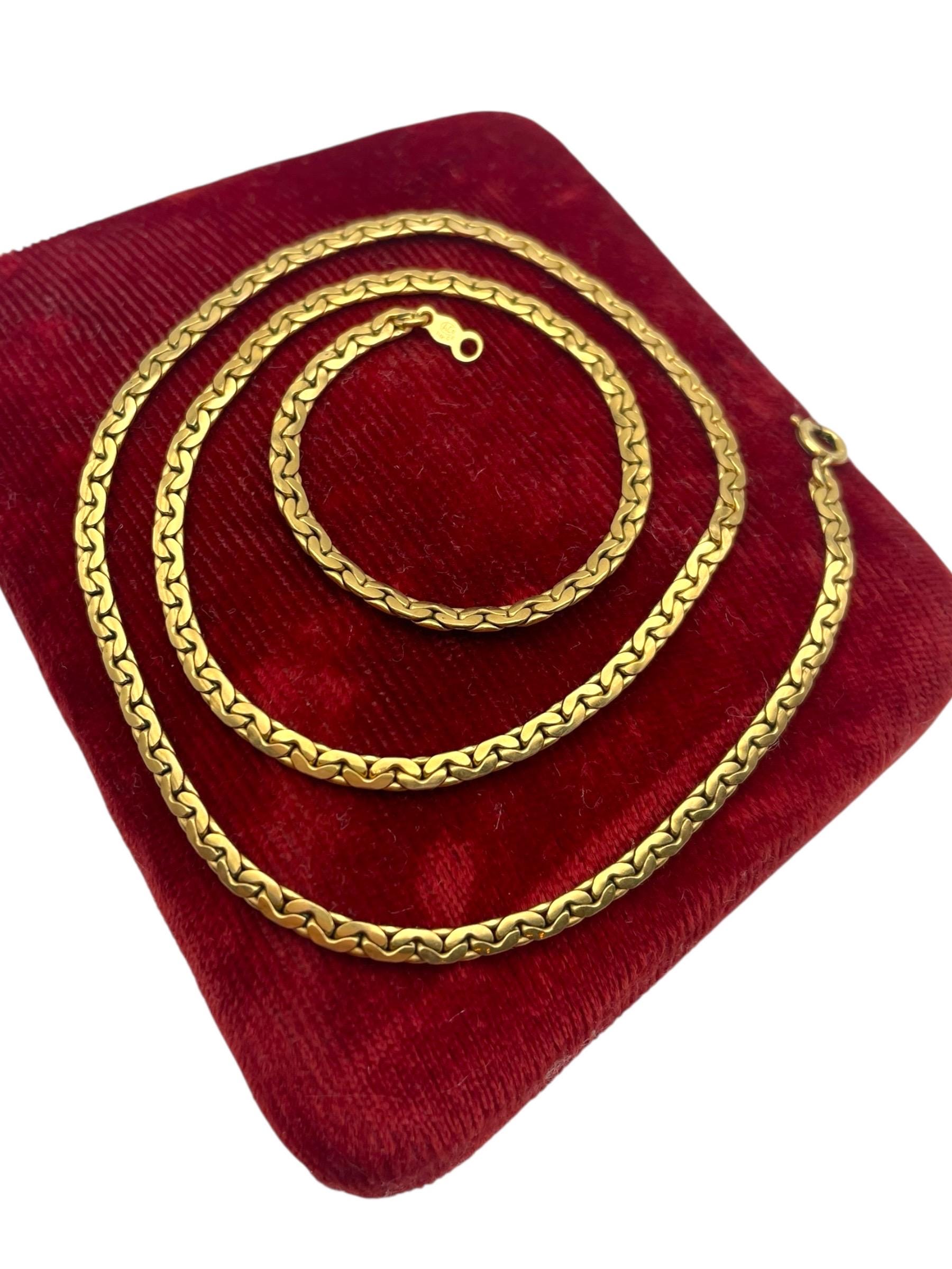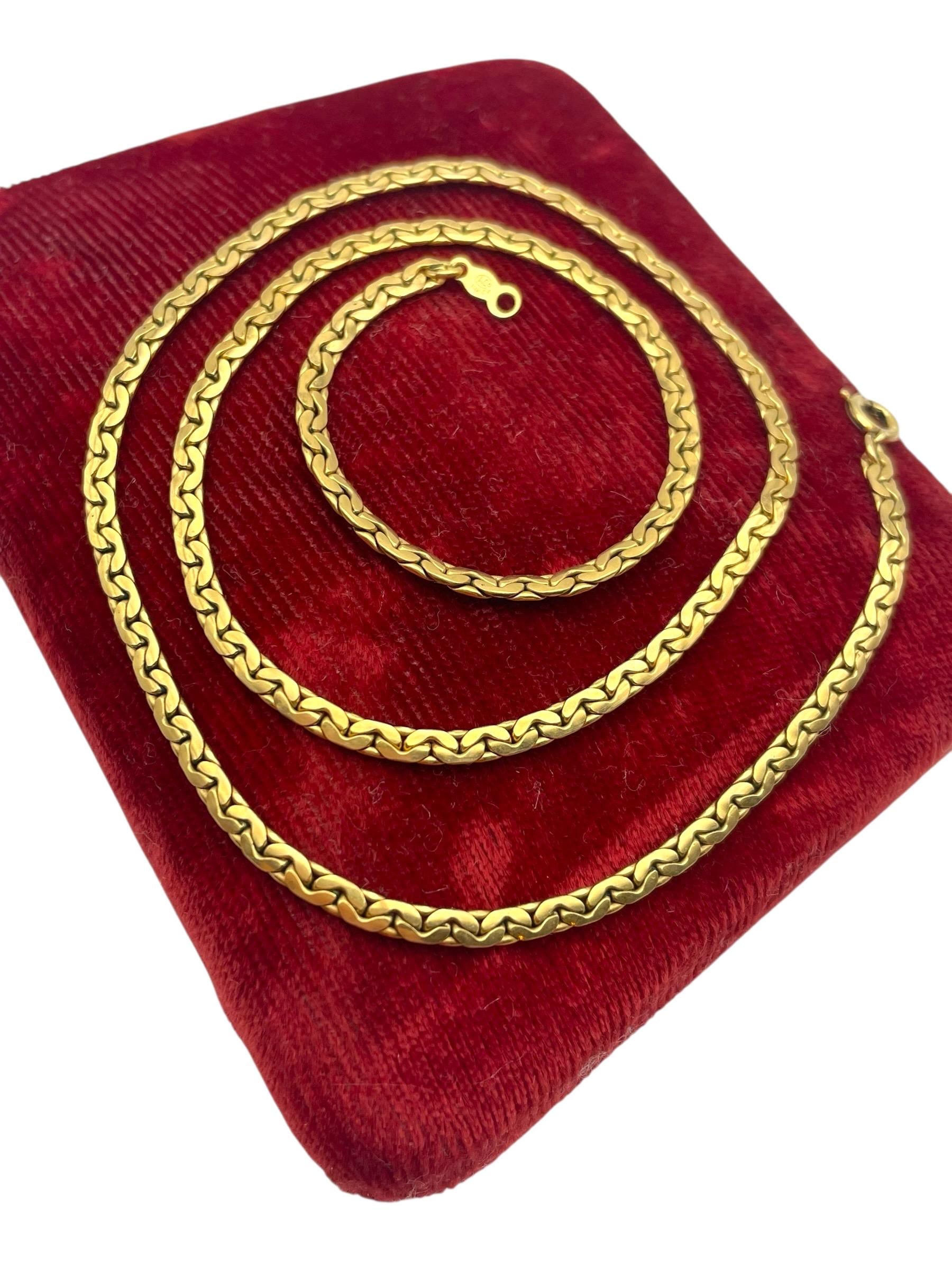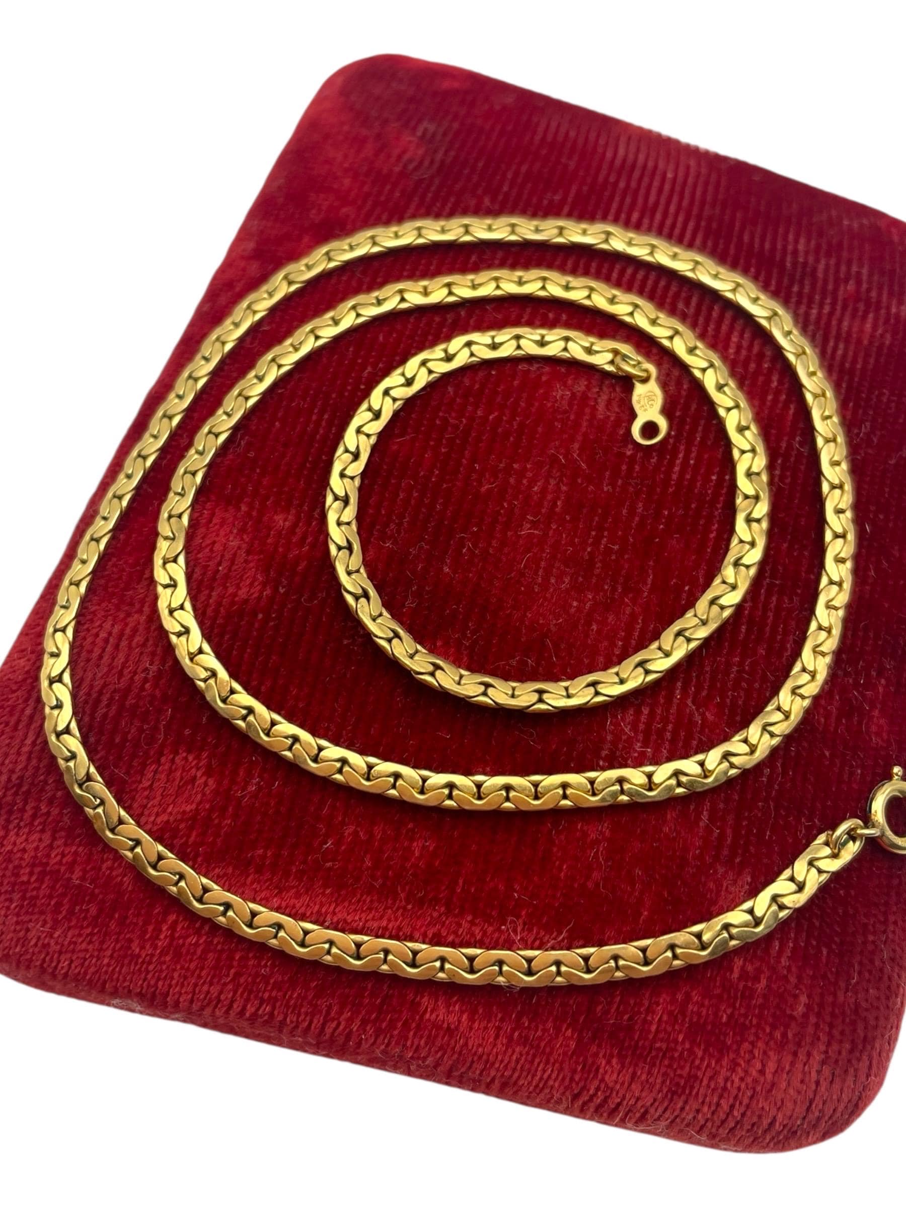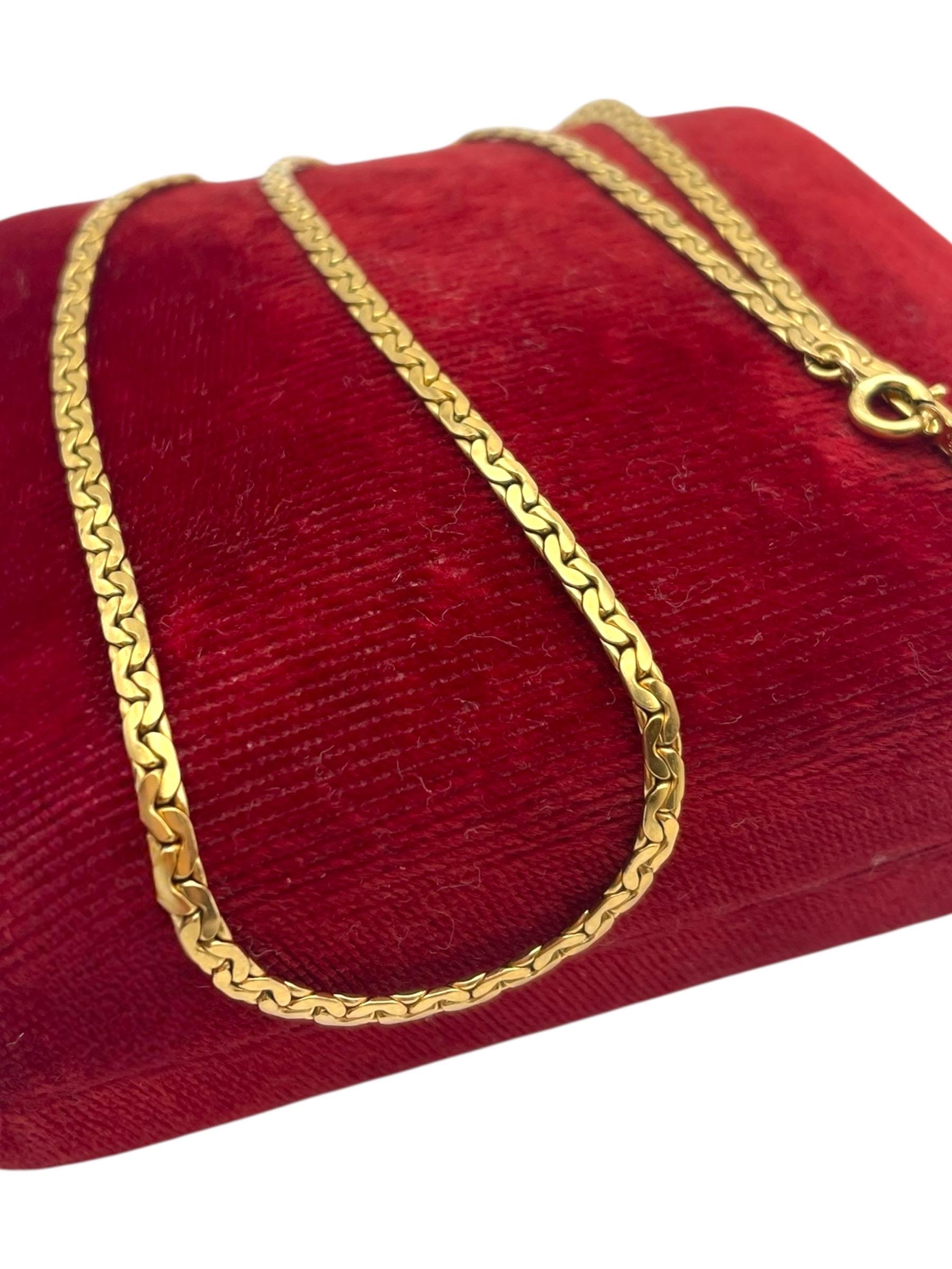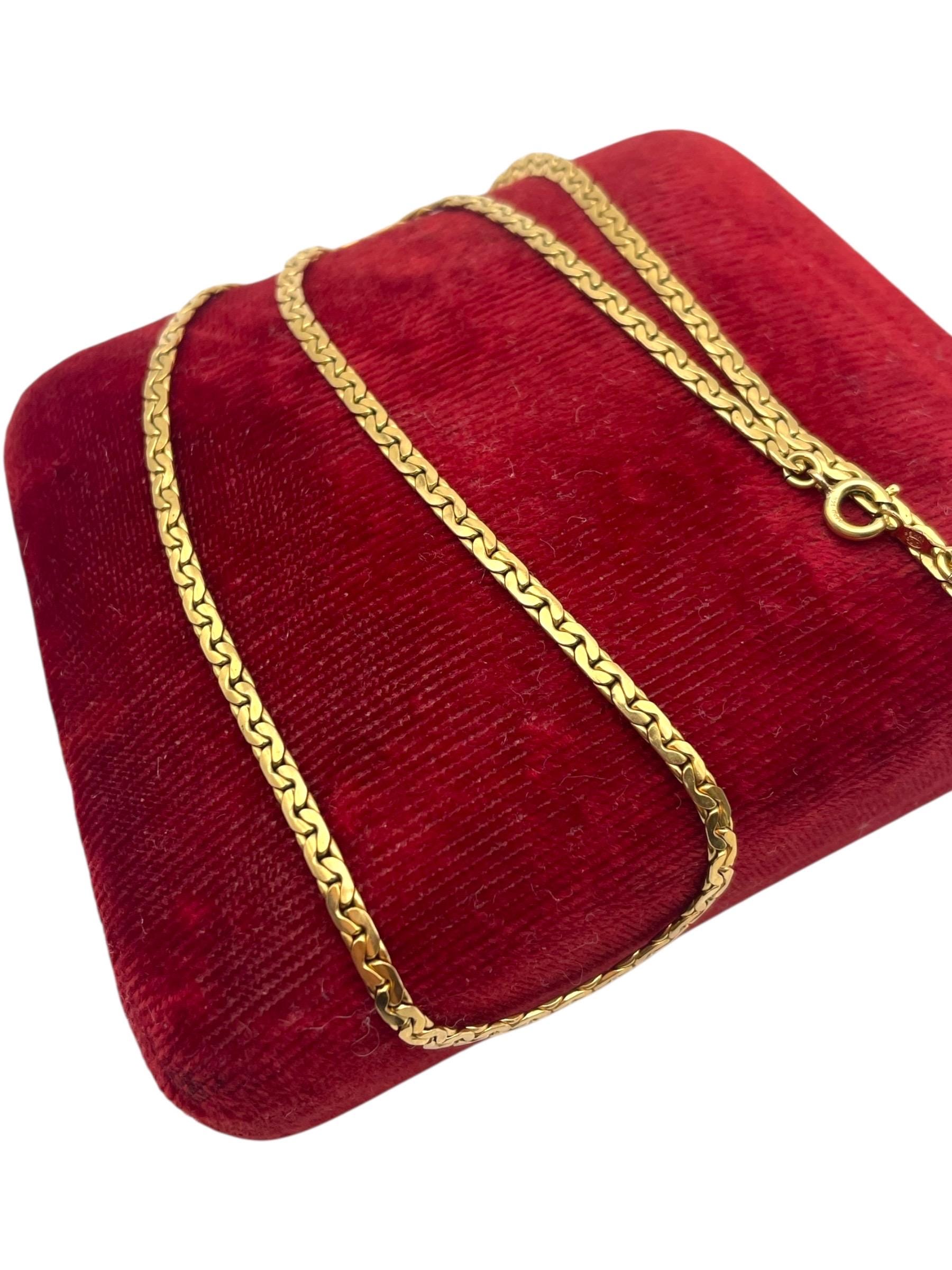 Beautiful vintage gold necklace! This gold filled flat c-link chain is shiny, gorgeous and unique. Add a pendant or wear alone. Great for layering. This is the middle length necklace shown in the layering photos.
