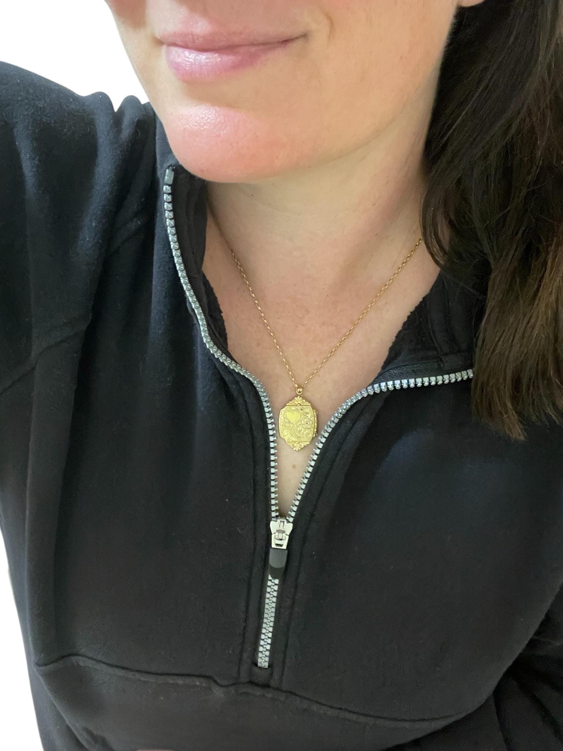 The locket is attached to a vintage 12K gold filled chain that is 18'' in length. The locket can be purchased with or without the chain.