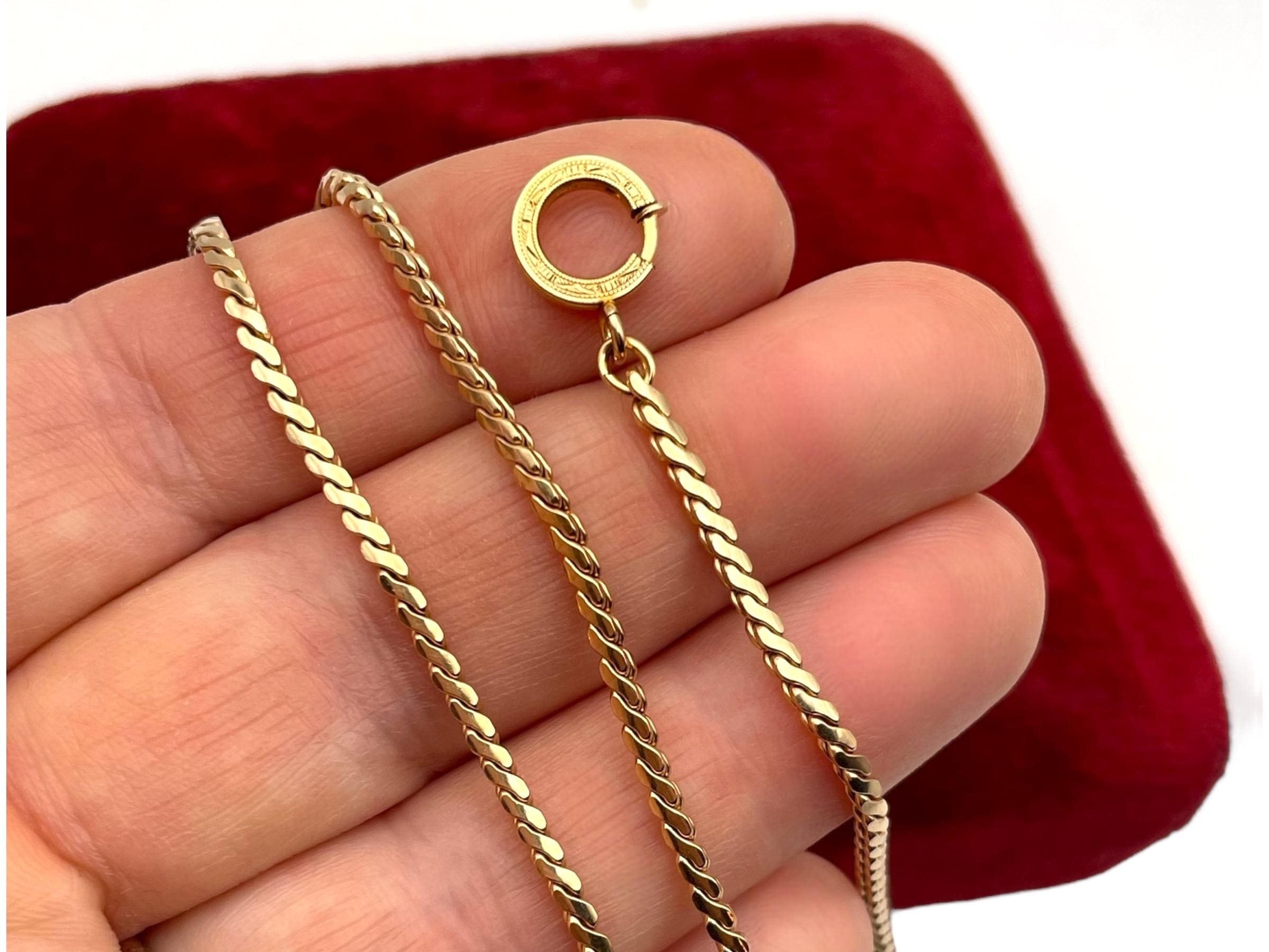 Beautiful vintage gold necklace! This gold filled serpentine s-link chain is shiny, gorgeous and unique. Add a pendant or wear alone. Great for layering. Unique jump ring - beautiful if worn in the front and when attaching a pendant! (pendant shown is not included)