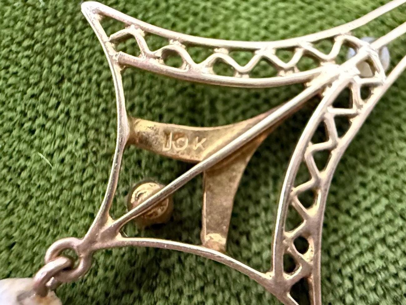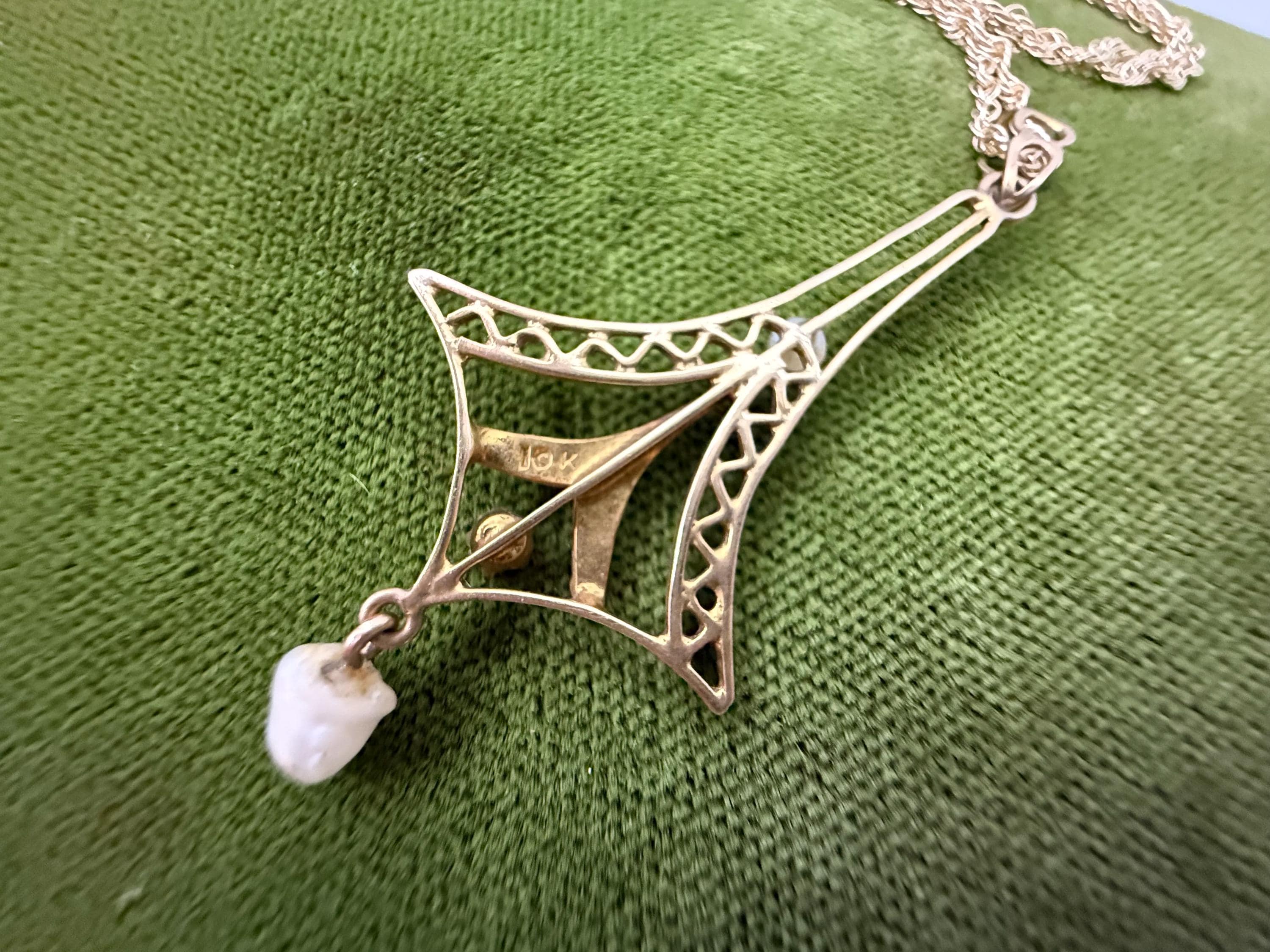 An antique and very dainty 10K gold lavaliere pendant on a new 14K yellow gold filled chain. The 10K gold pendant can be purchased with or without the gold filled chain.