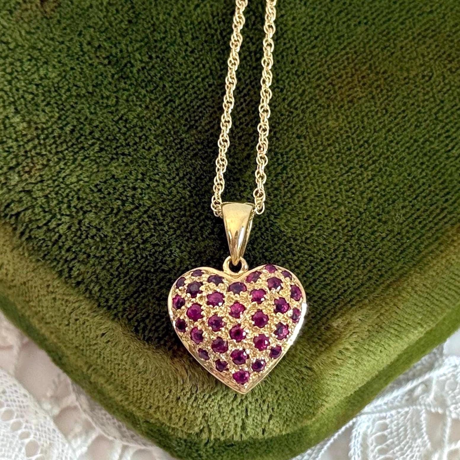 Vintage 14K Gold Spinel Heart Pendant with Gold Filled Chain