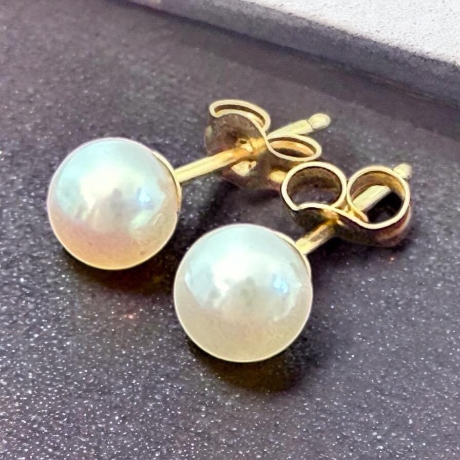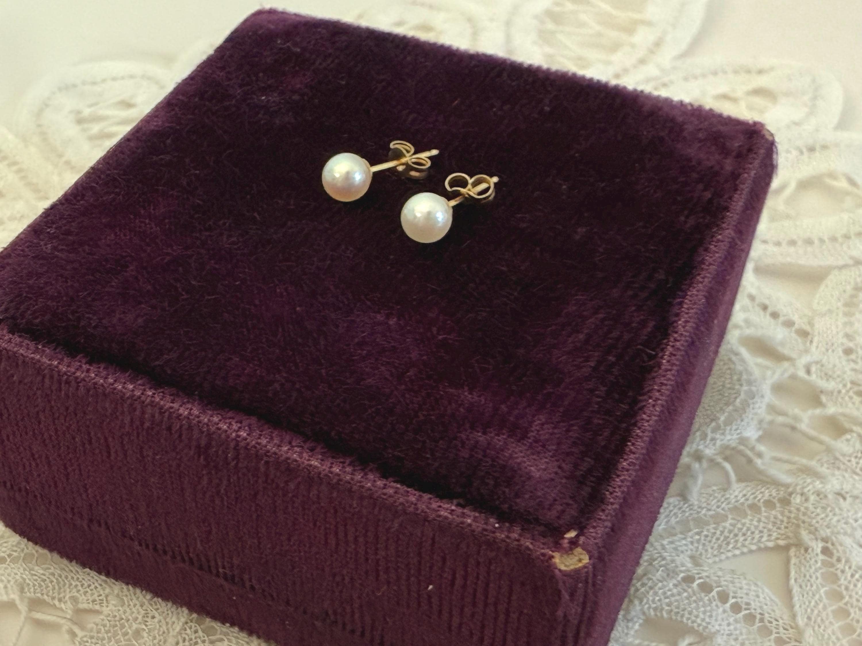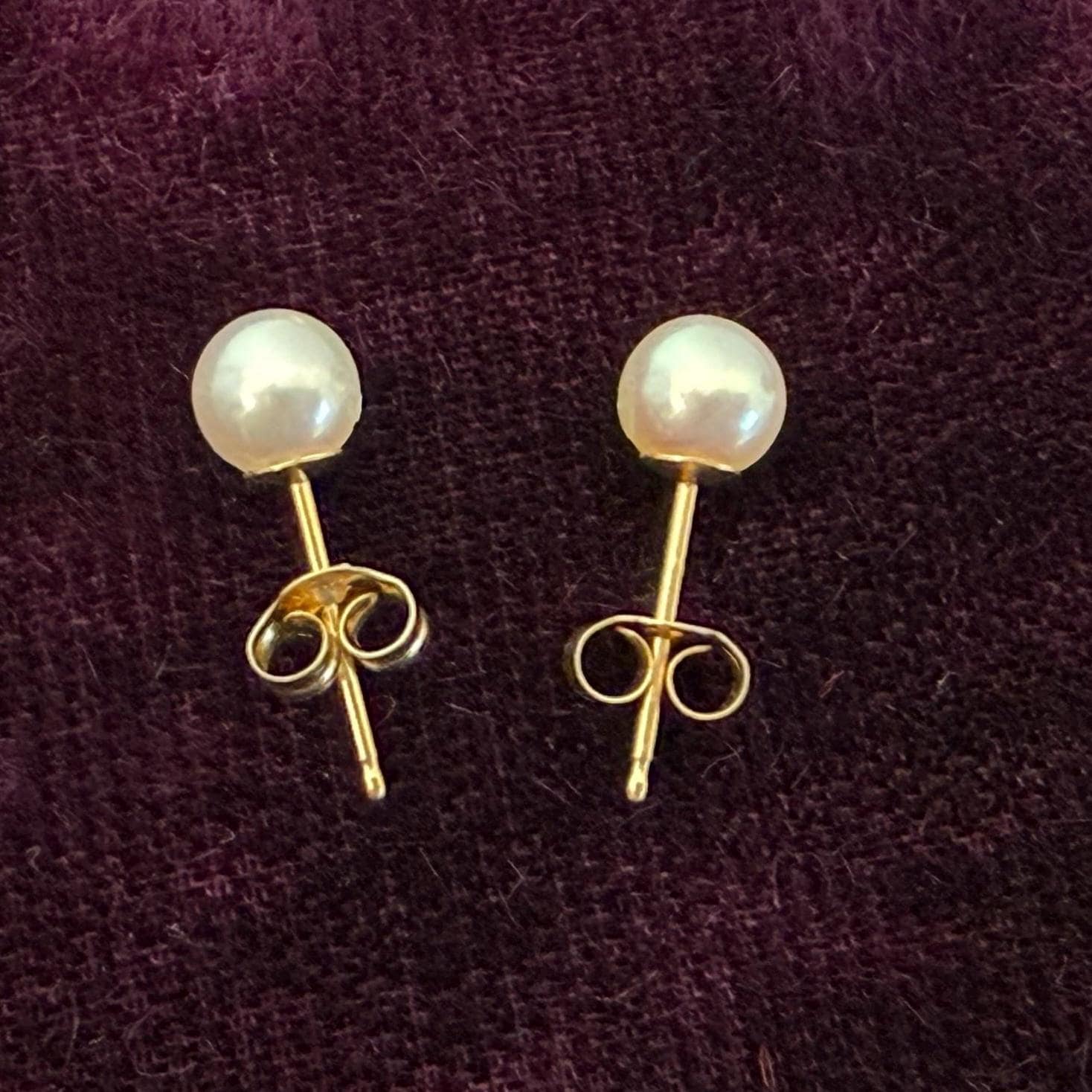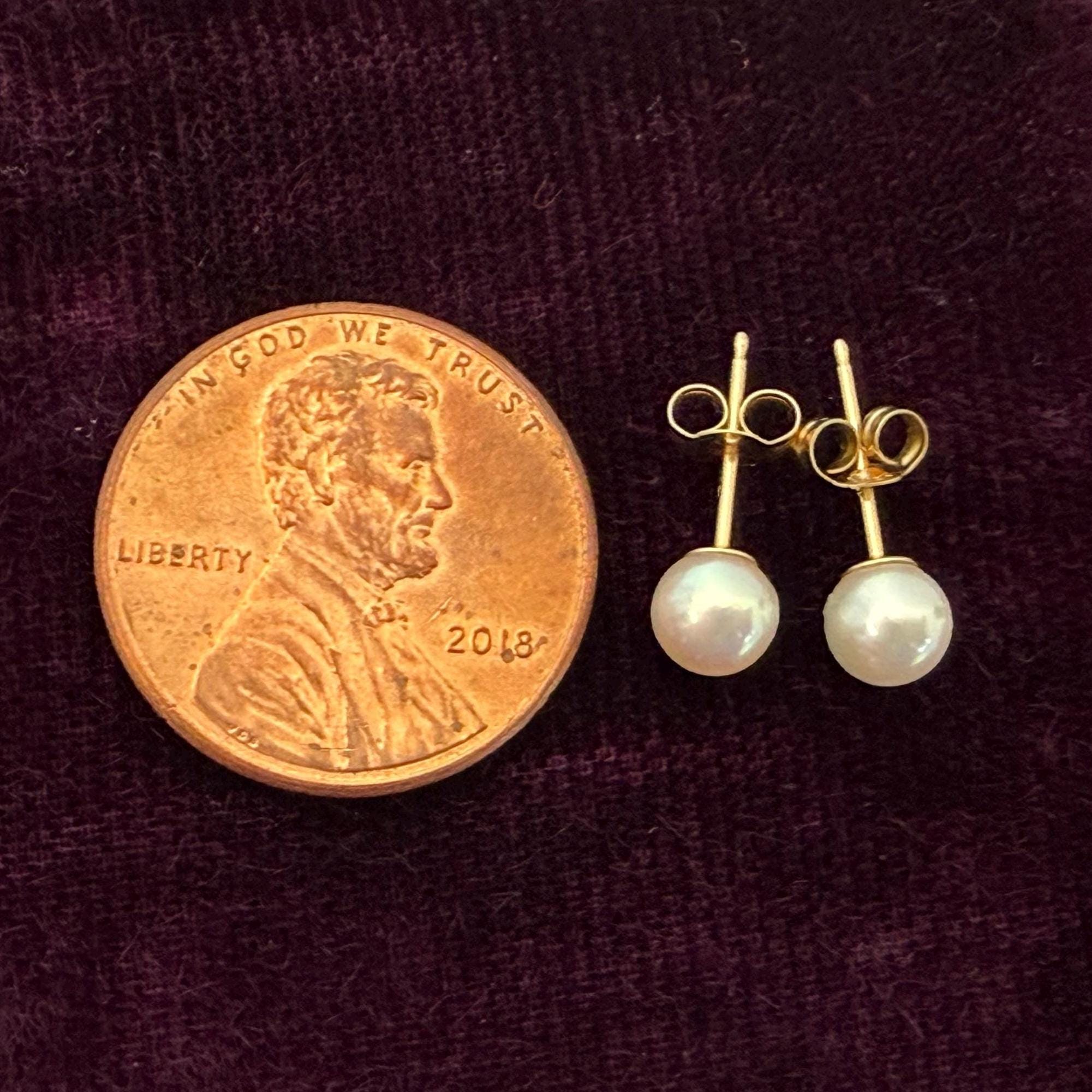 Vintage 14K Gold Pearl Earrings - Retro Dainty Small Pair Post Studs