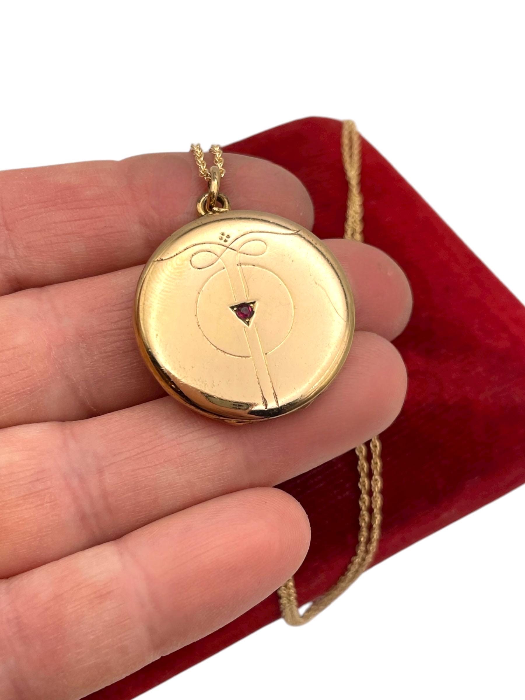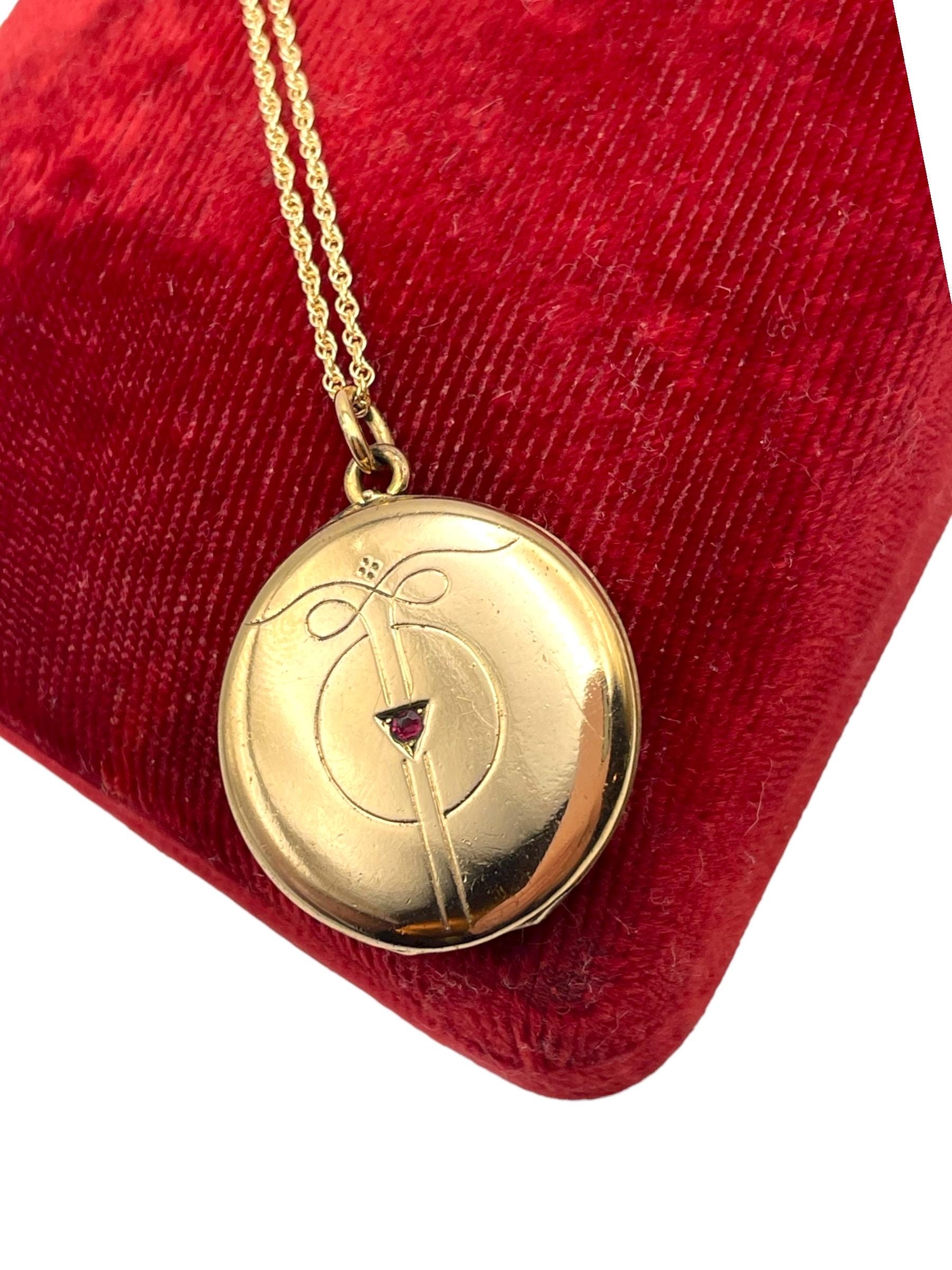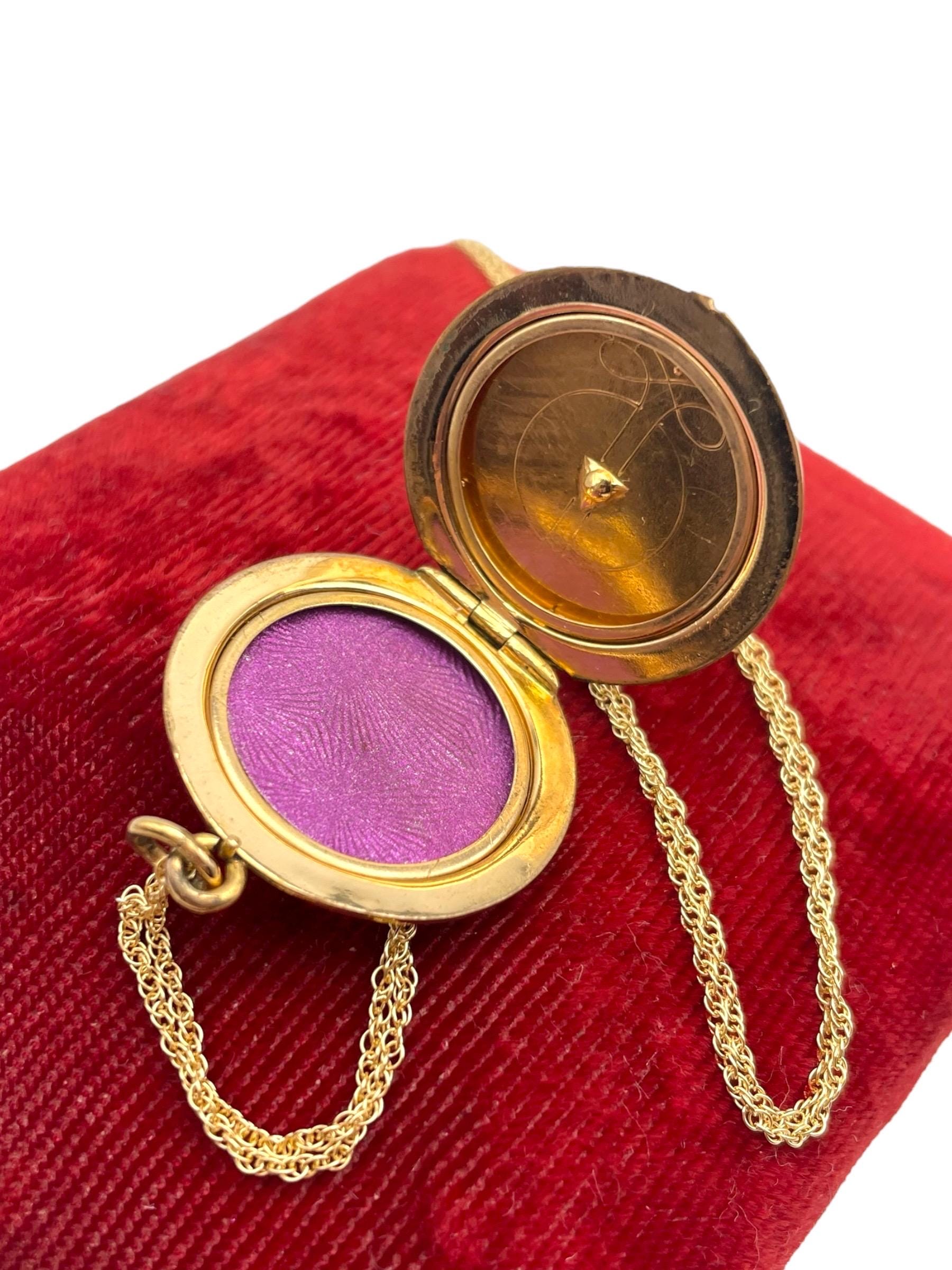 The locket is hallmarked inside "KJ" crossed by an arrow for Kollmar & Jourdan and tested as 13K gold (filled).