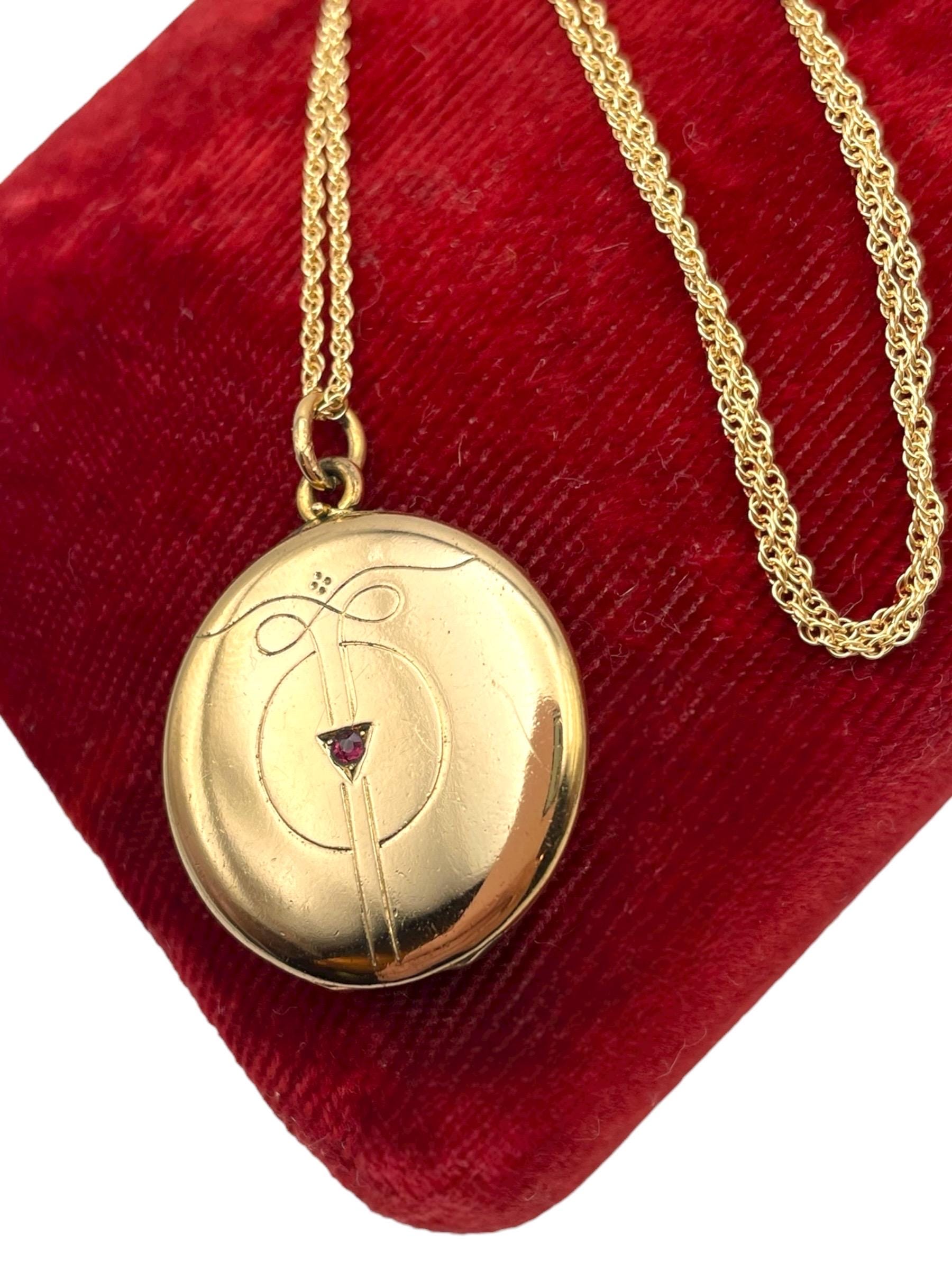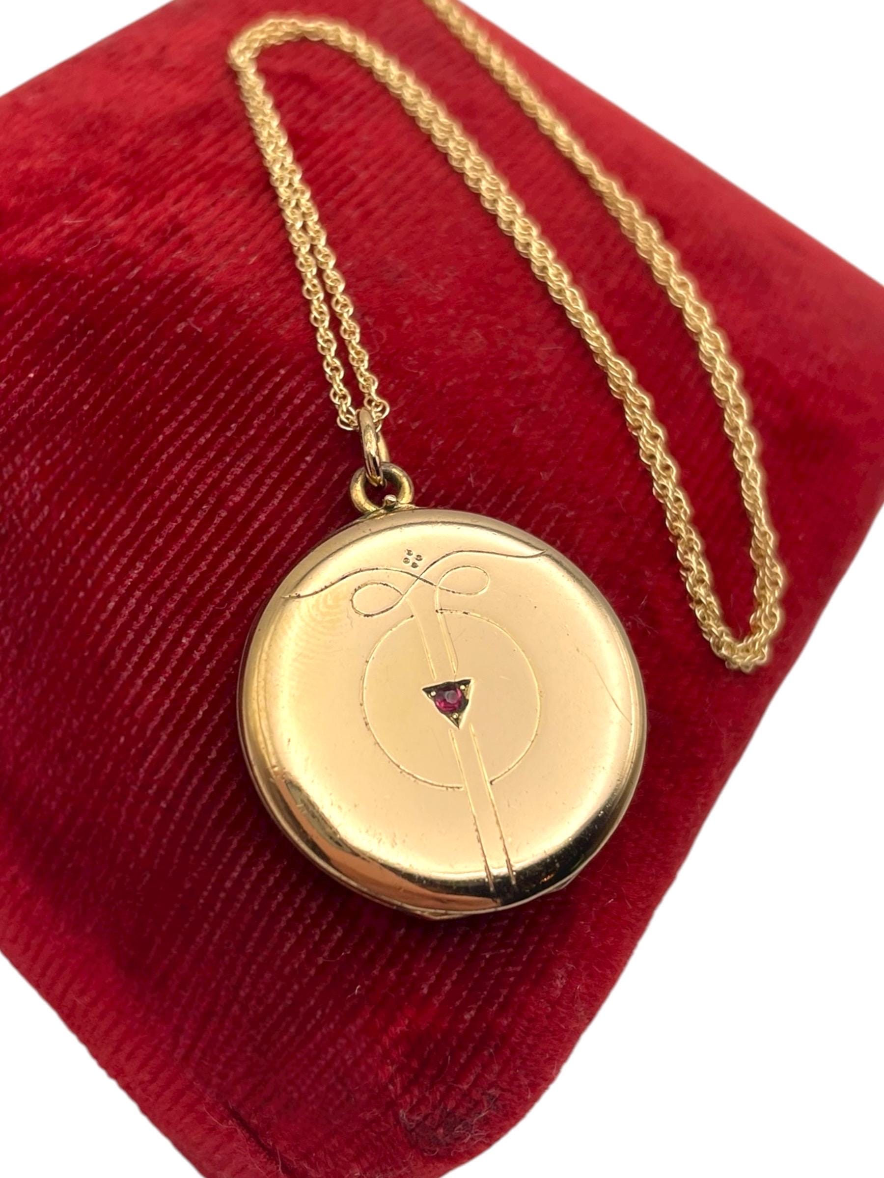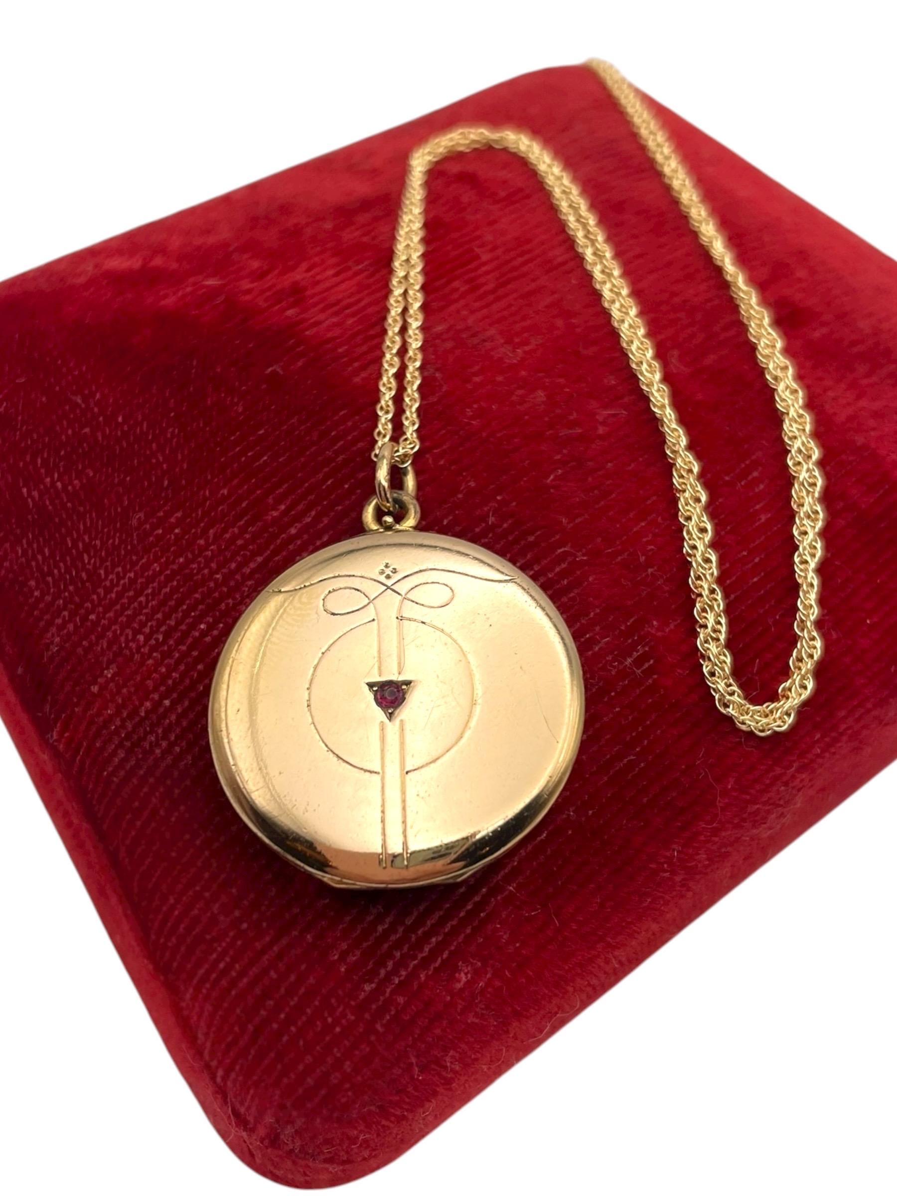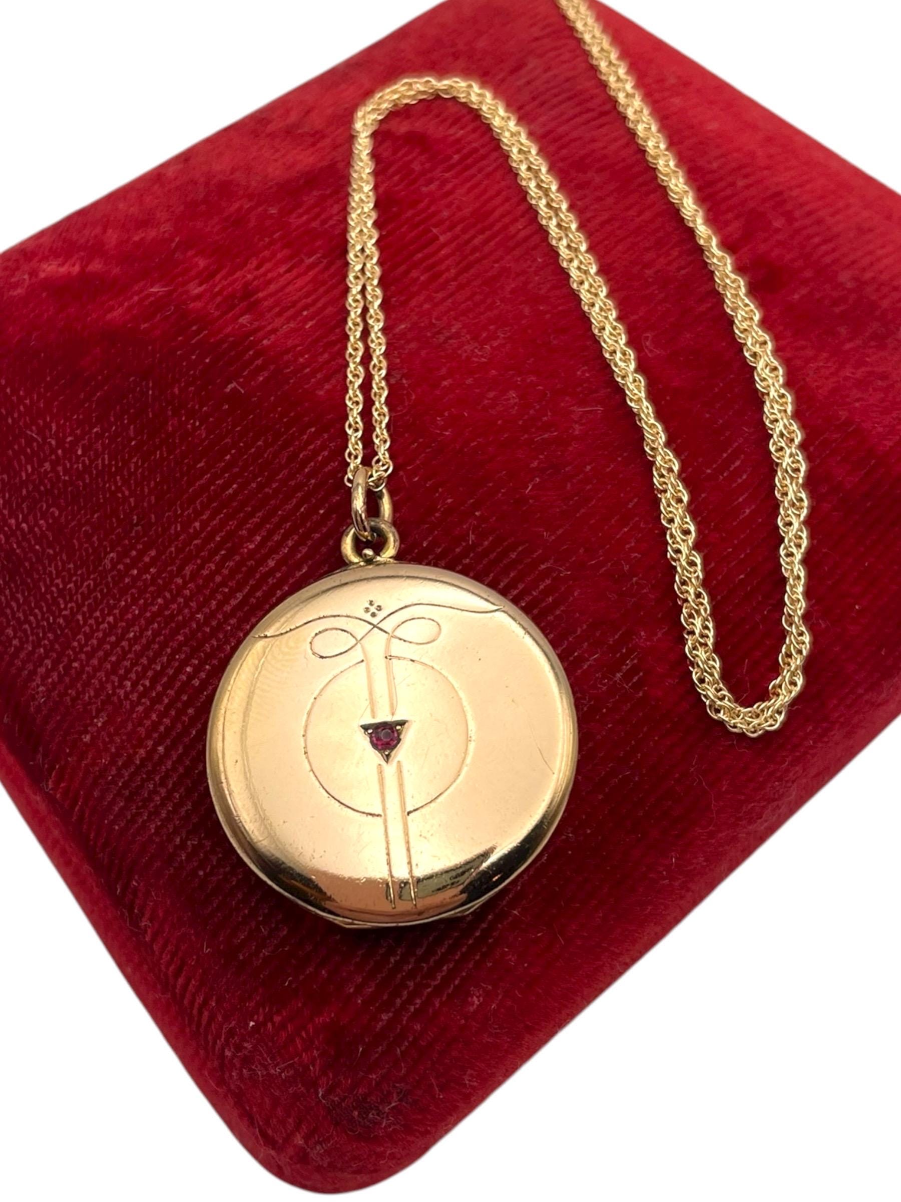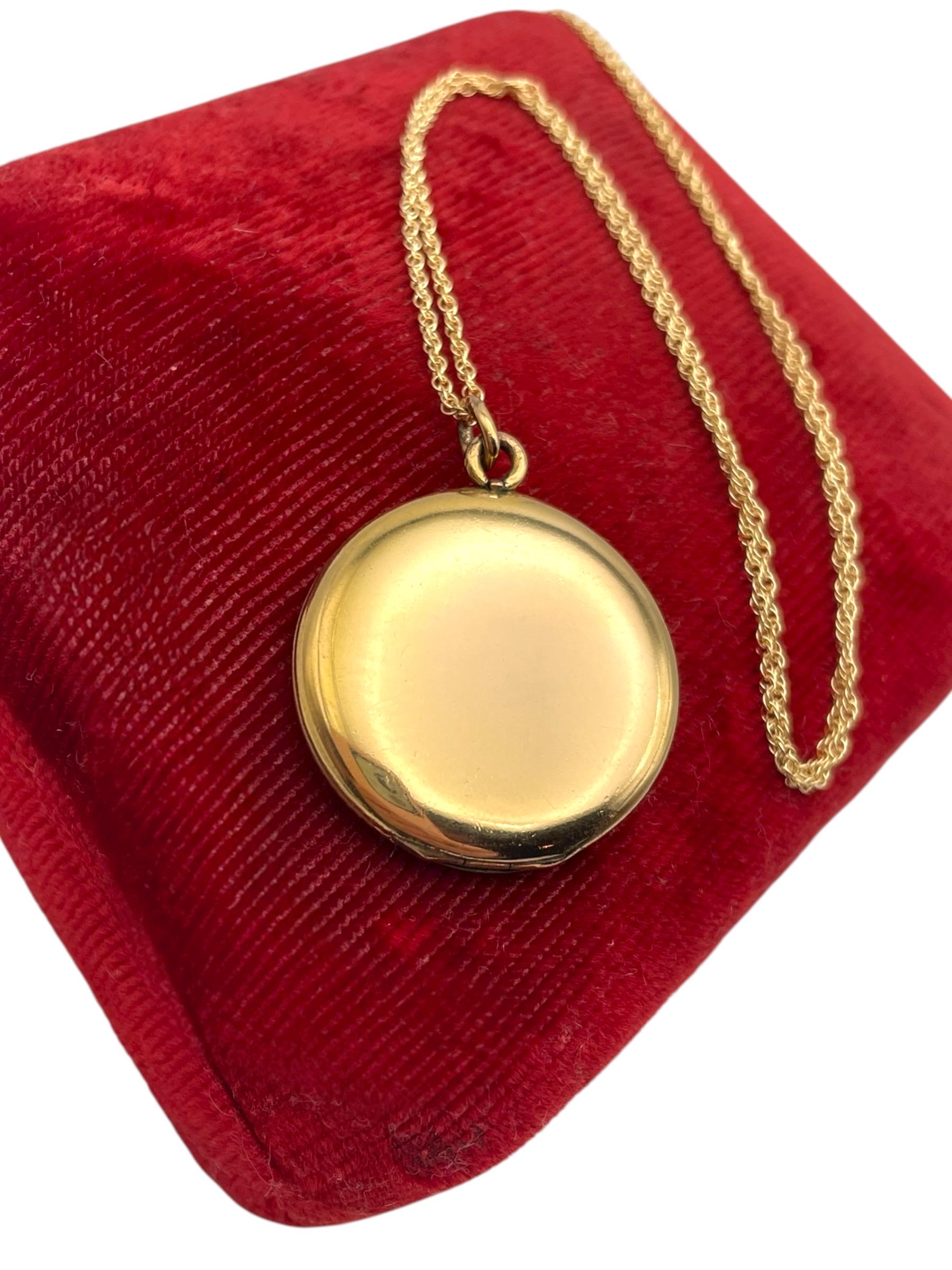 This antique round locket hangs from a new 20" long 14K gold filled chain. Locket can be purchased with or without the chain.