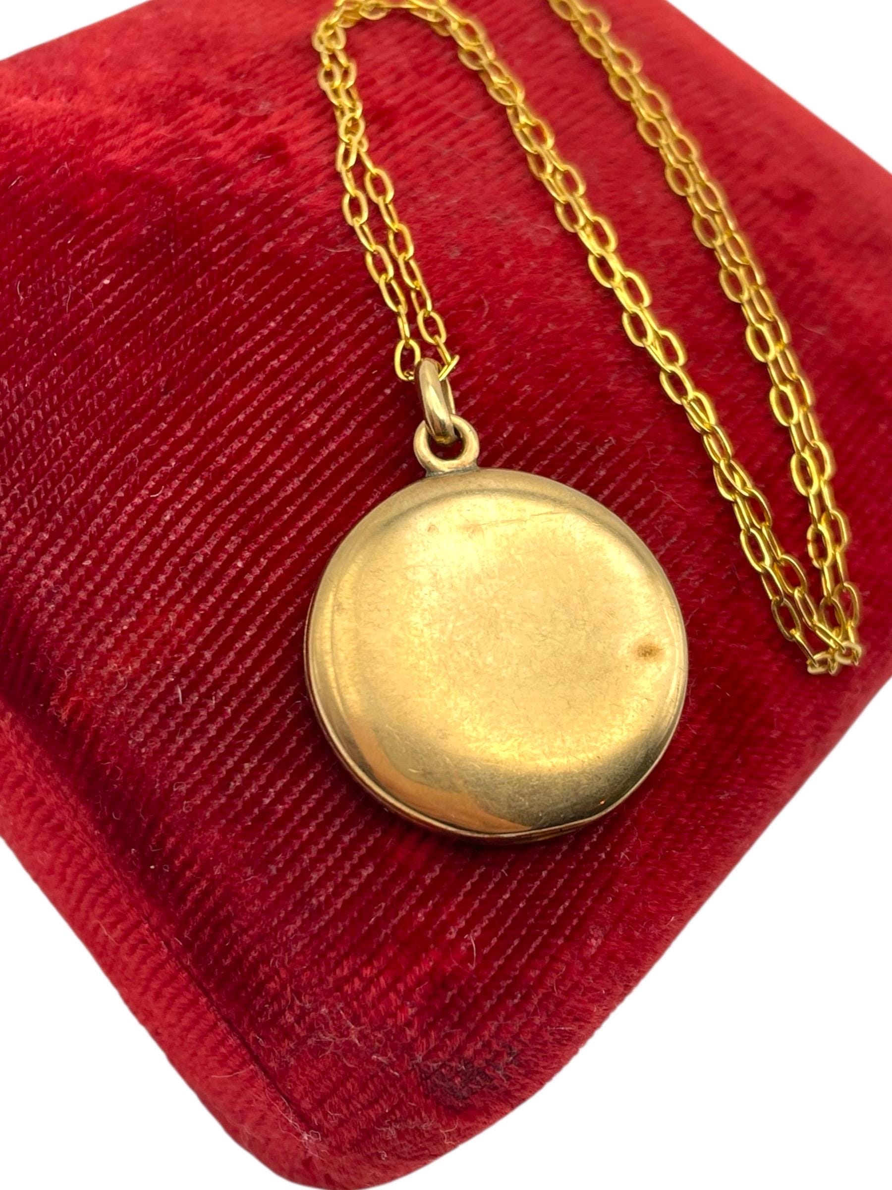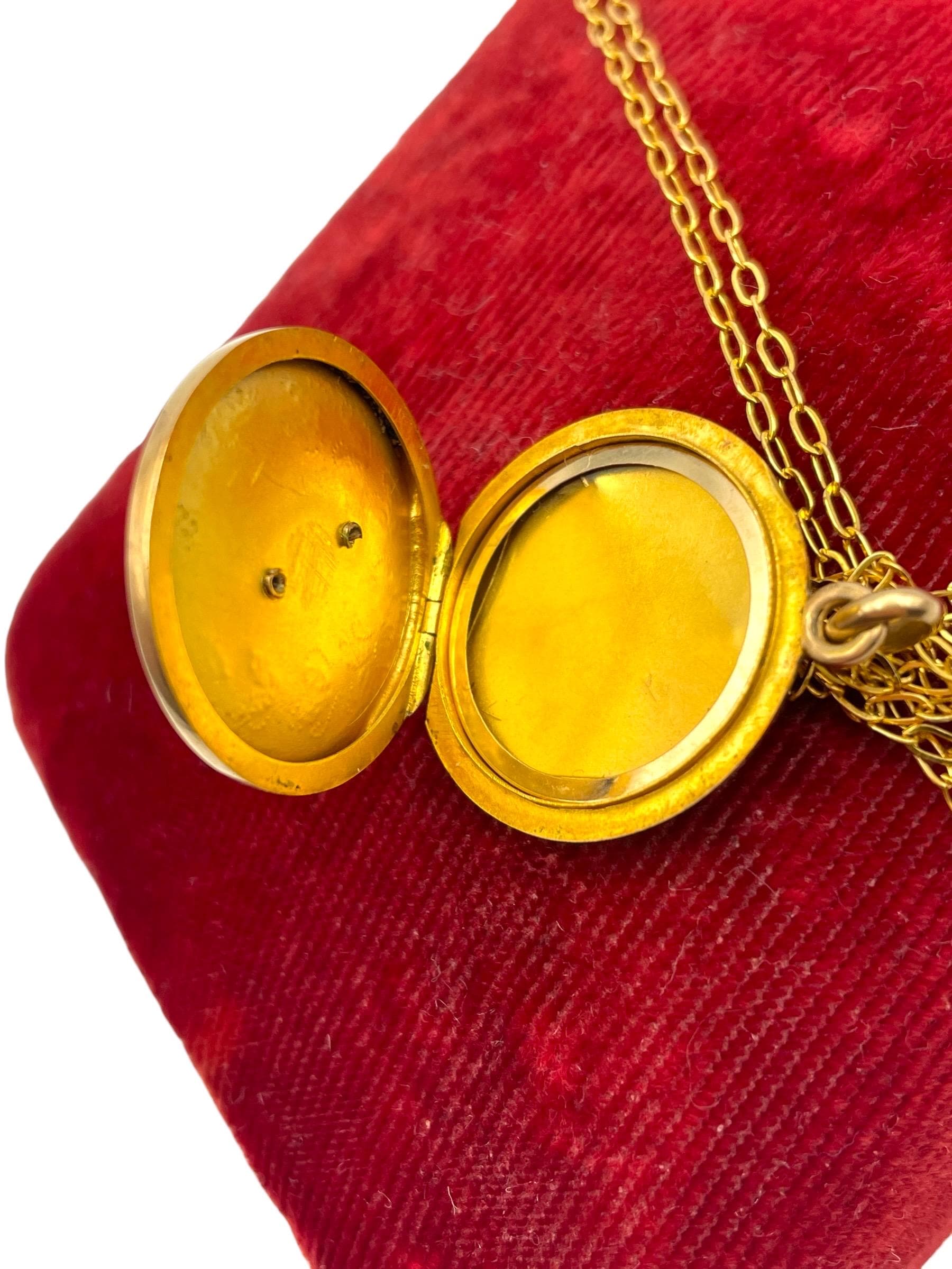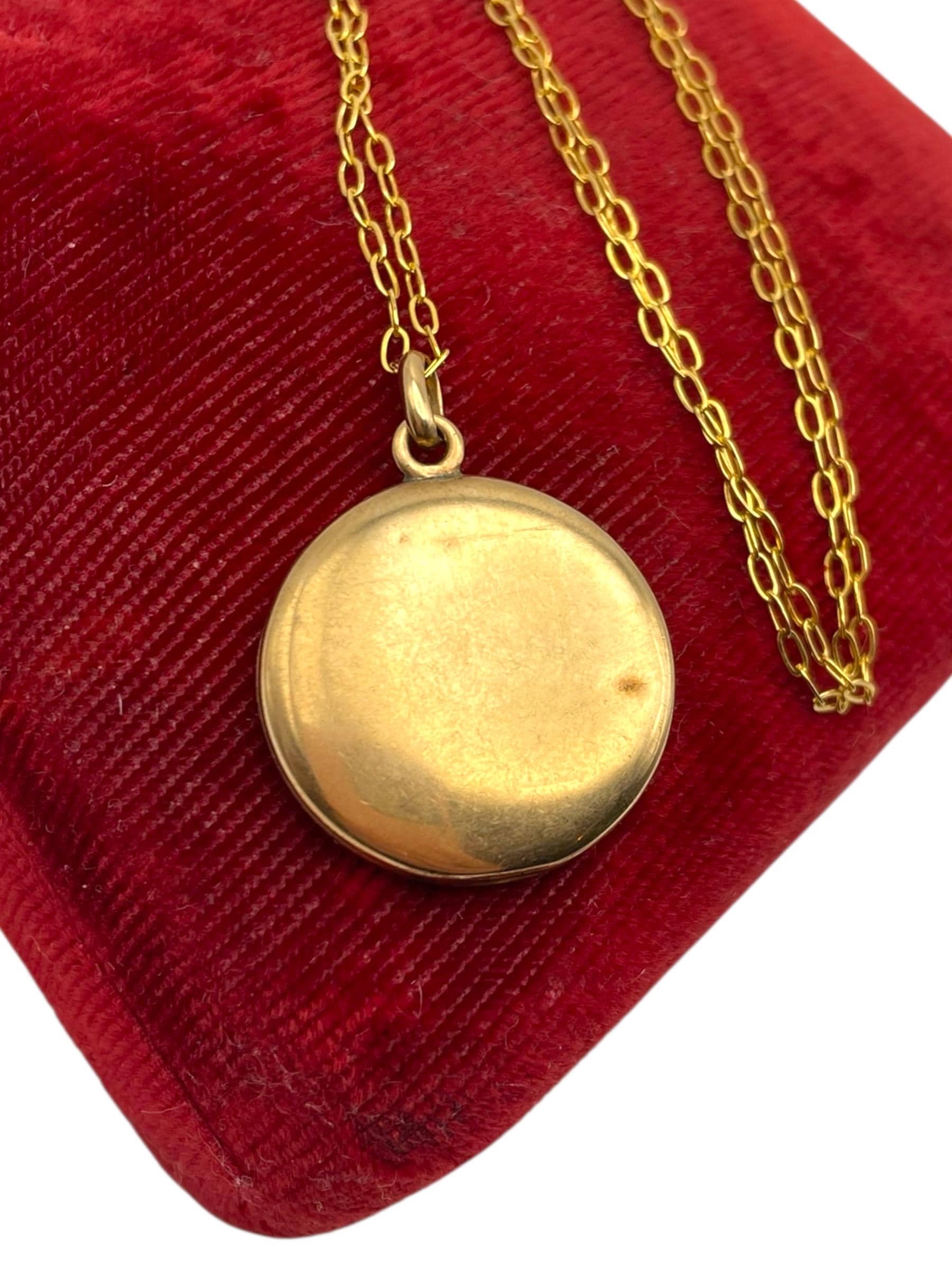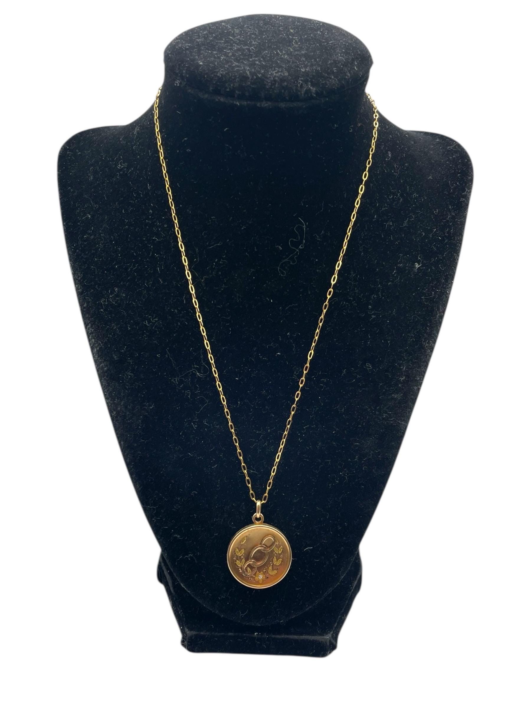 The antique locket is attached to a 14K gold filled link chain that is 18" long and has a spring ring clasp.