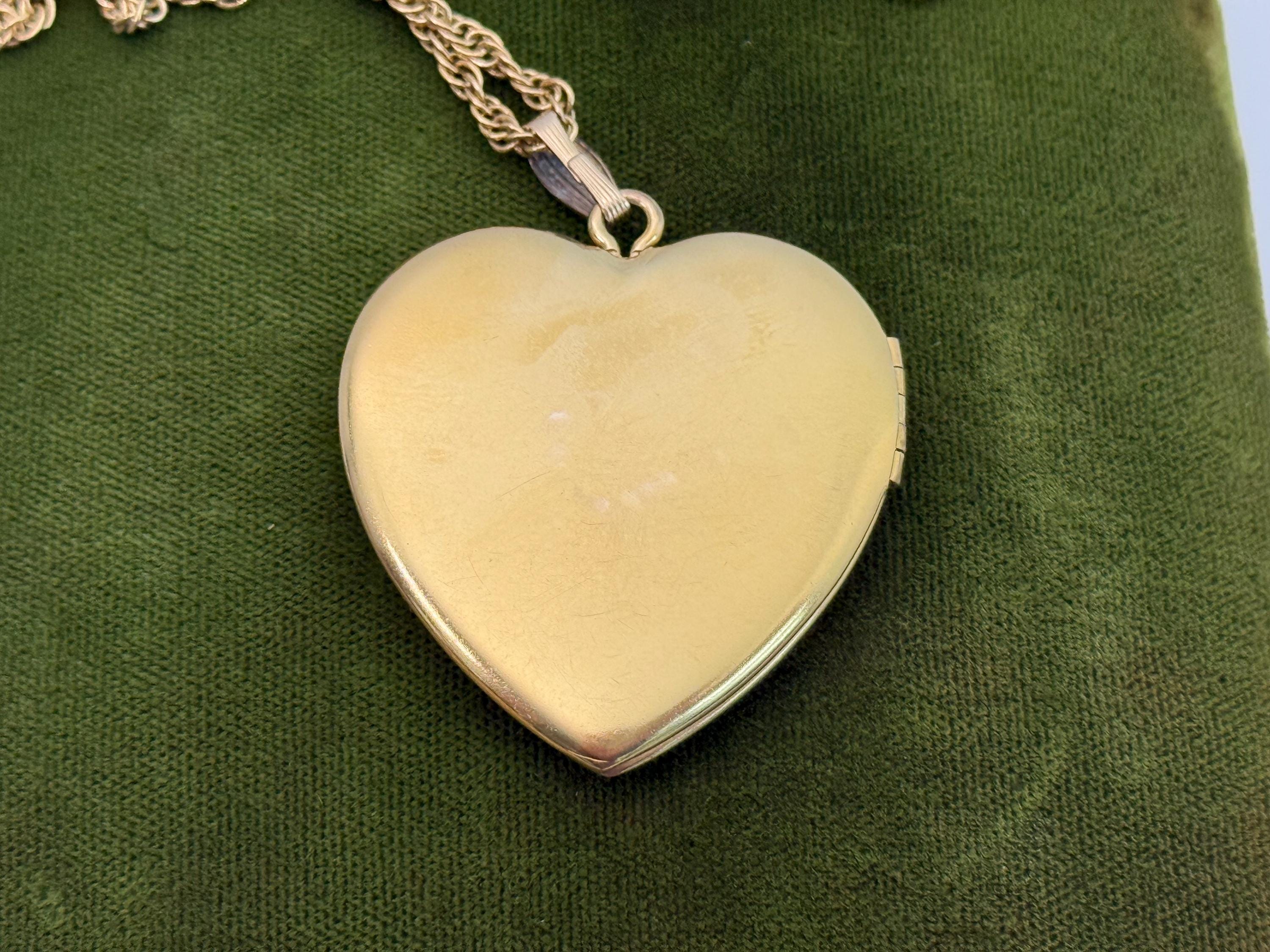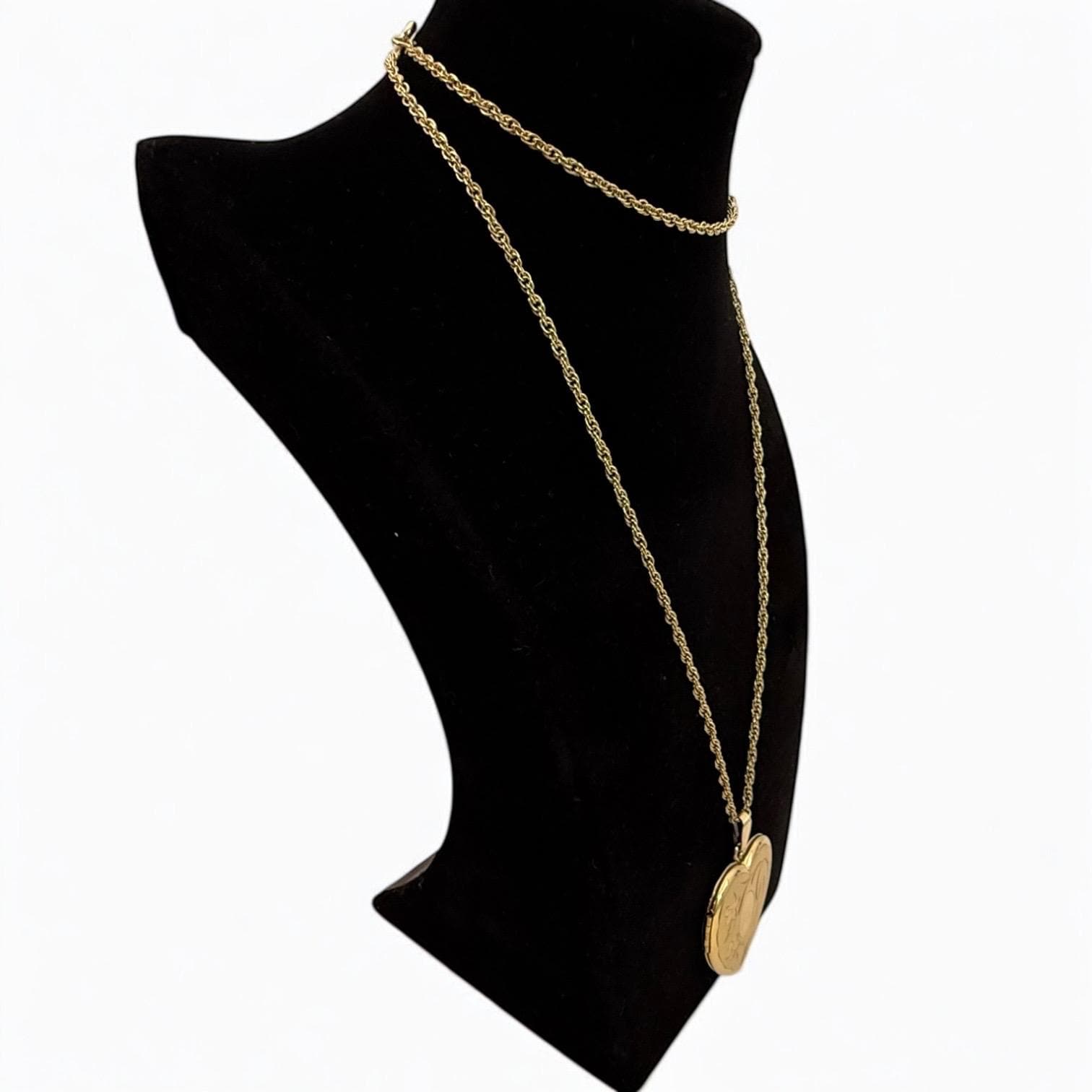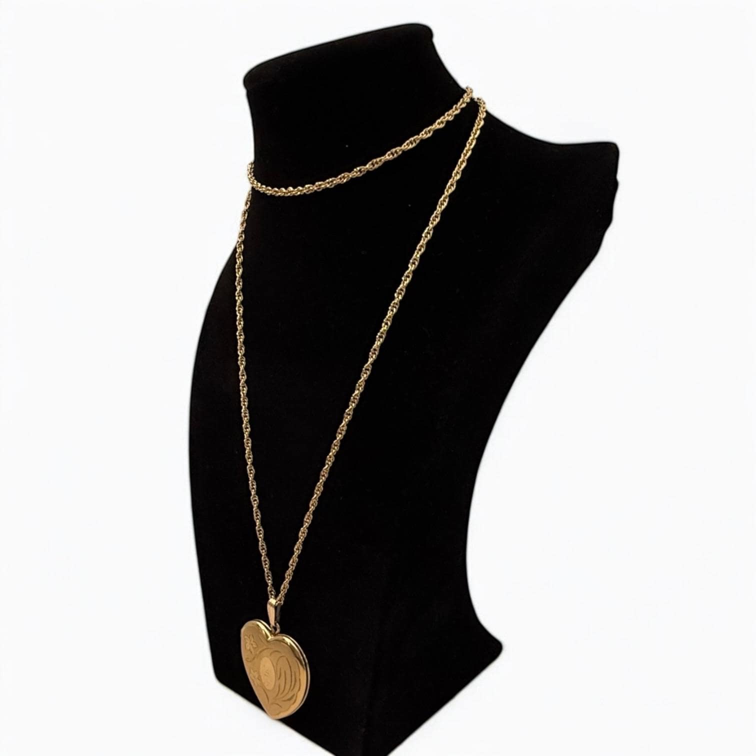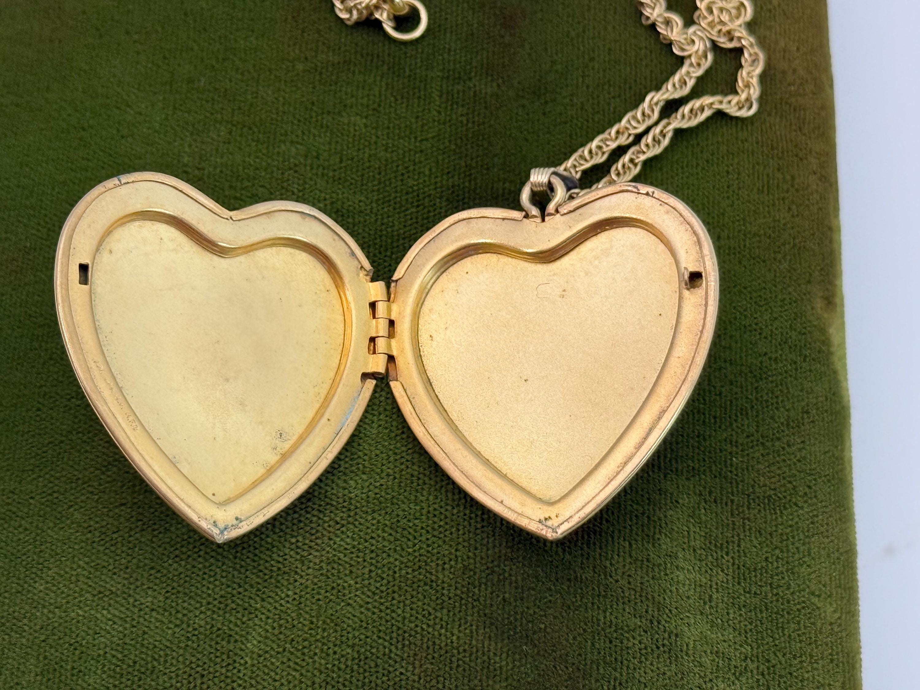 The locket hangs from a vintage 12K gold filled rope chain with a spring ring clasp that is 30" in length - this is Opera length. The clasp on the chain opens and closes securely.