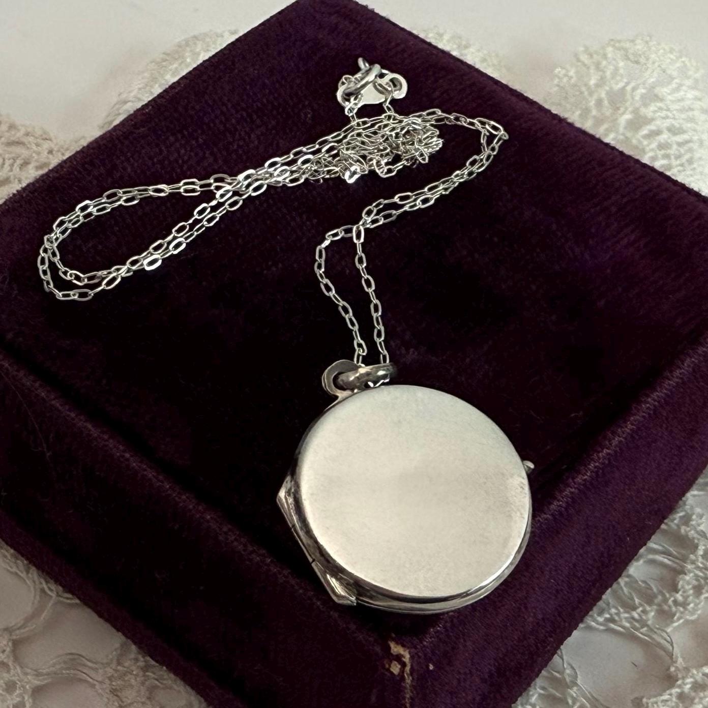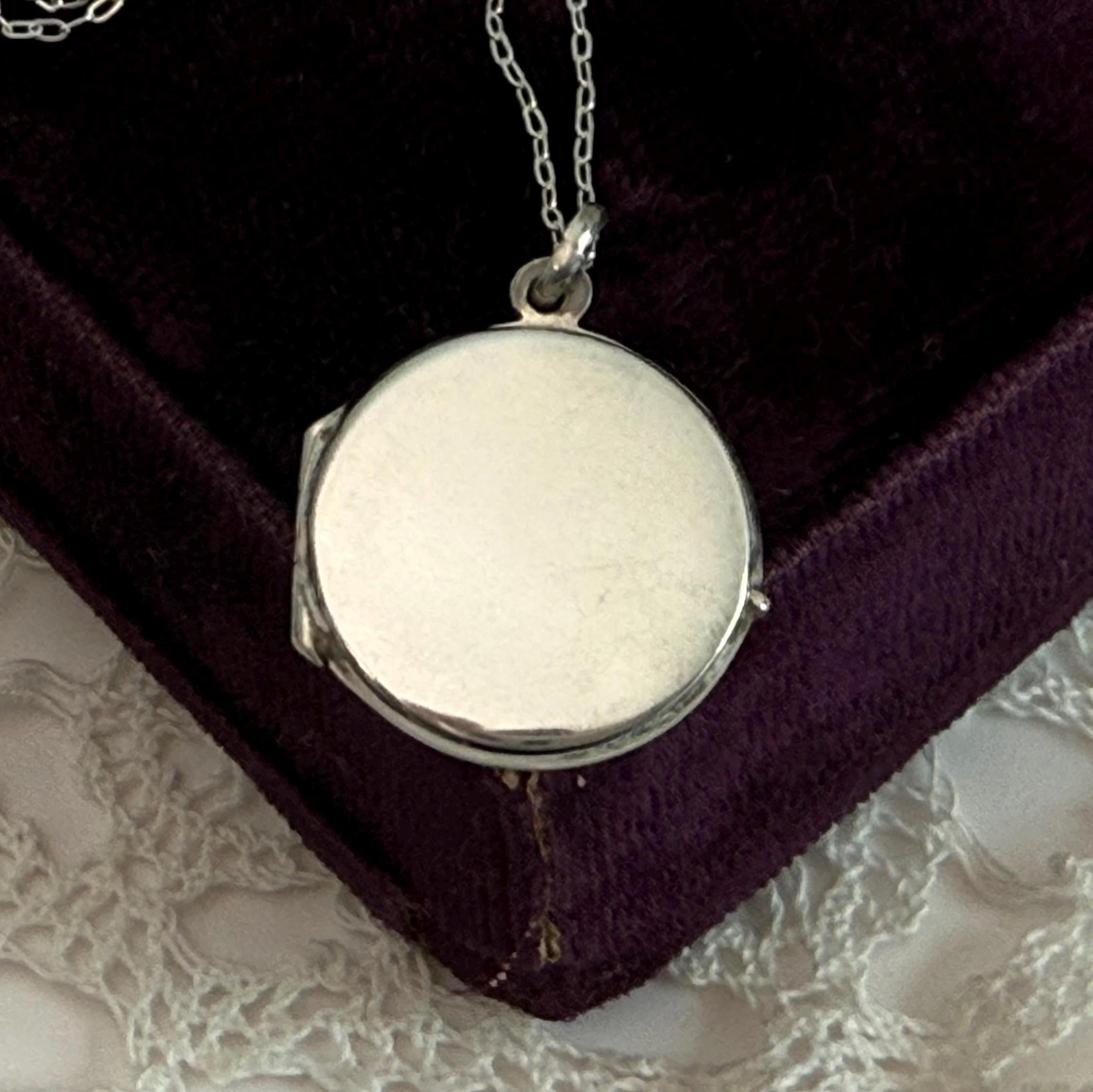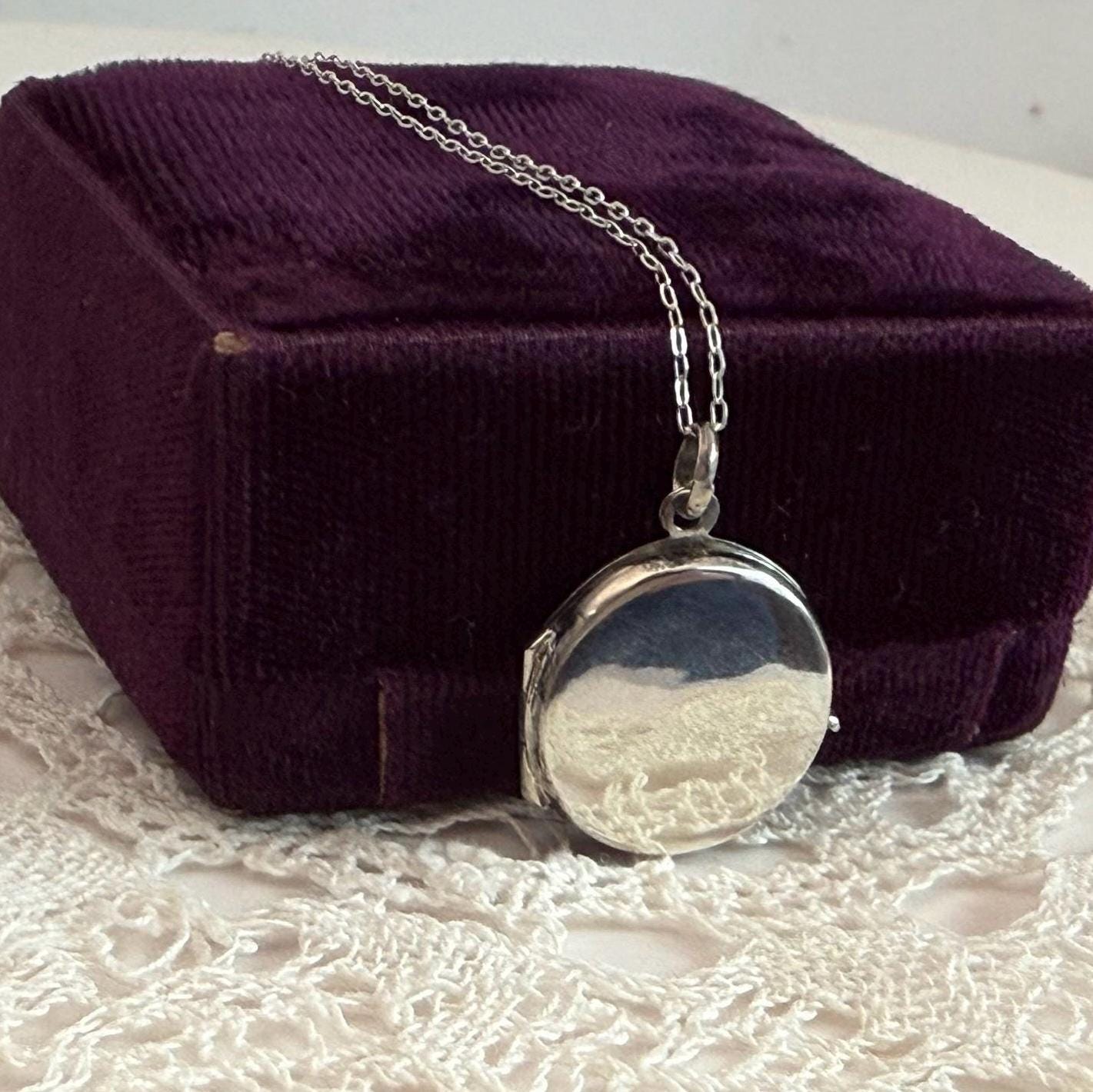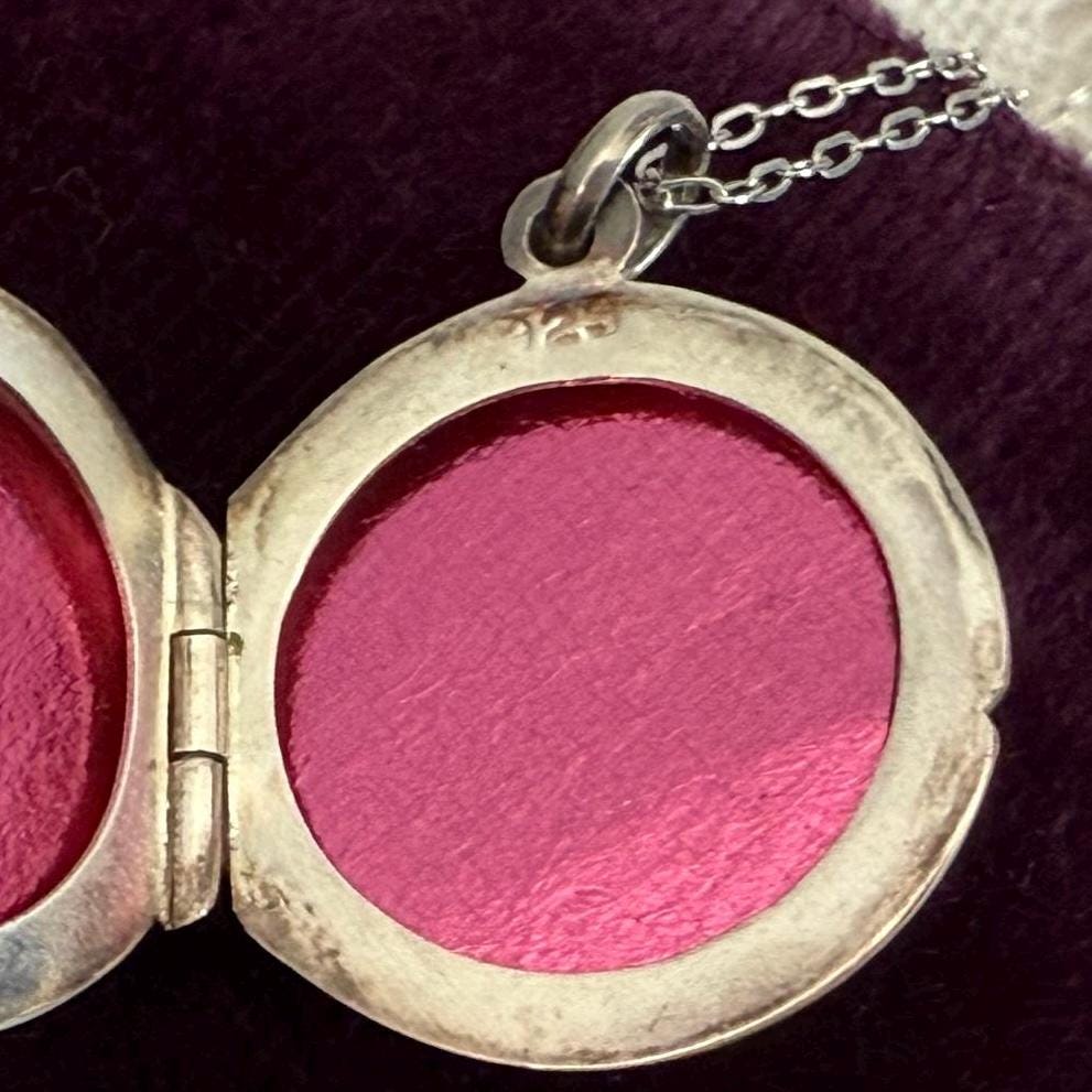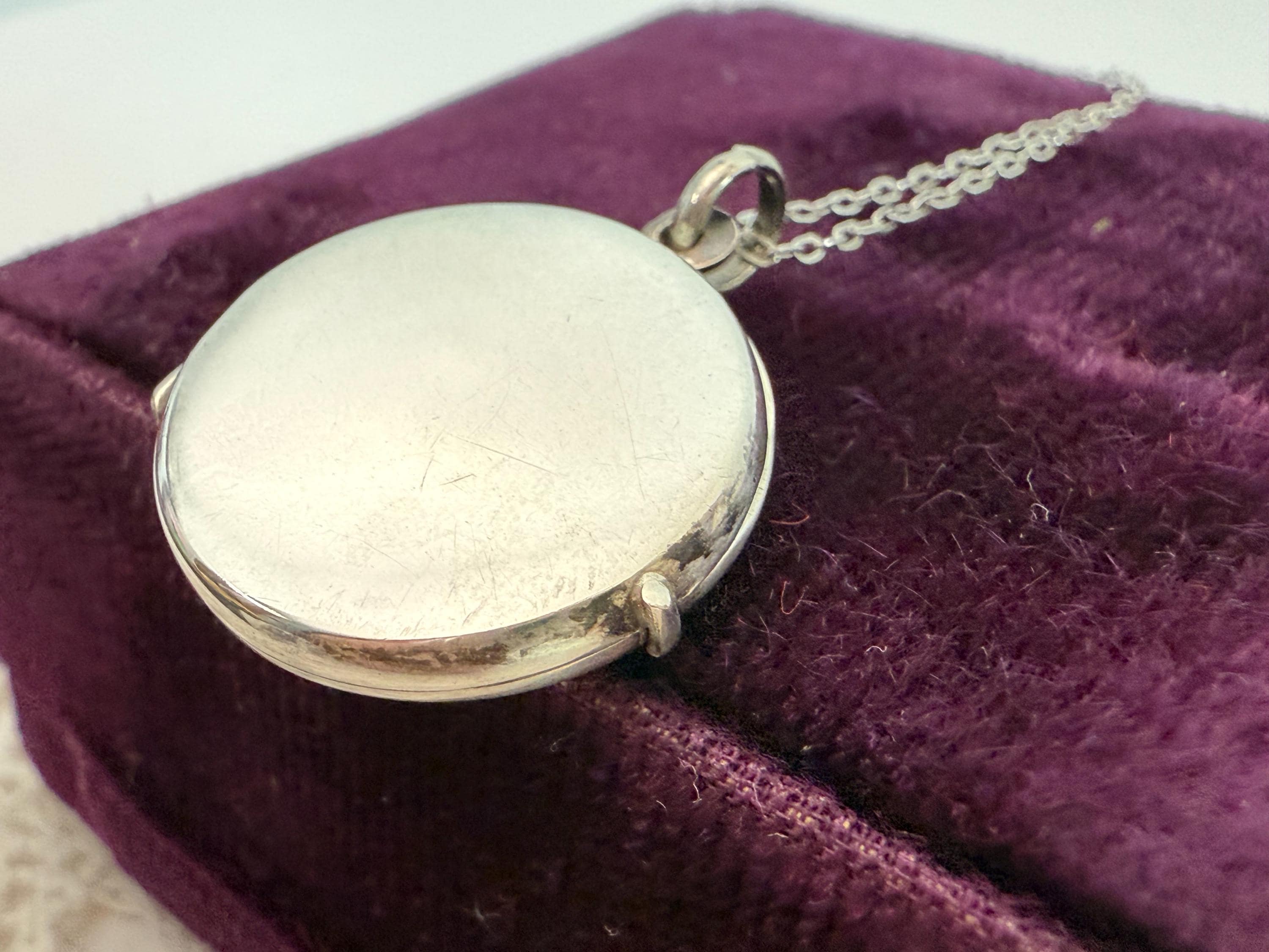 Vintage Round Silver Locket Necklace on 925 Chain, Small 2 Photo Pendant