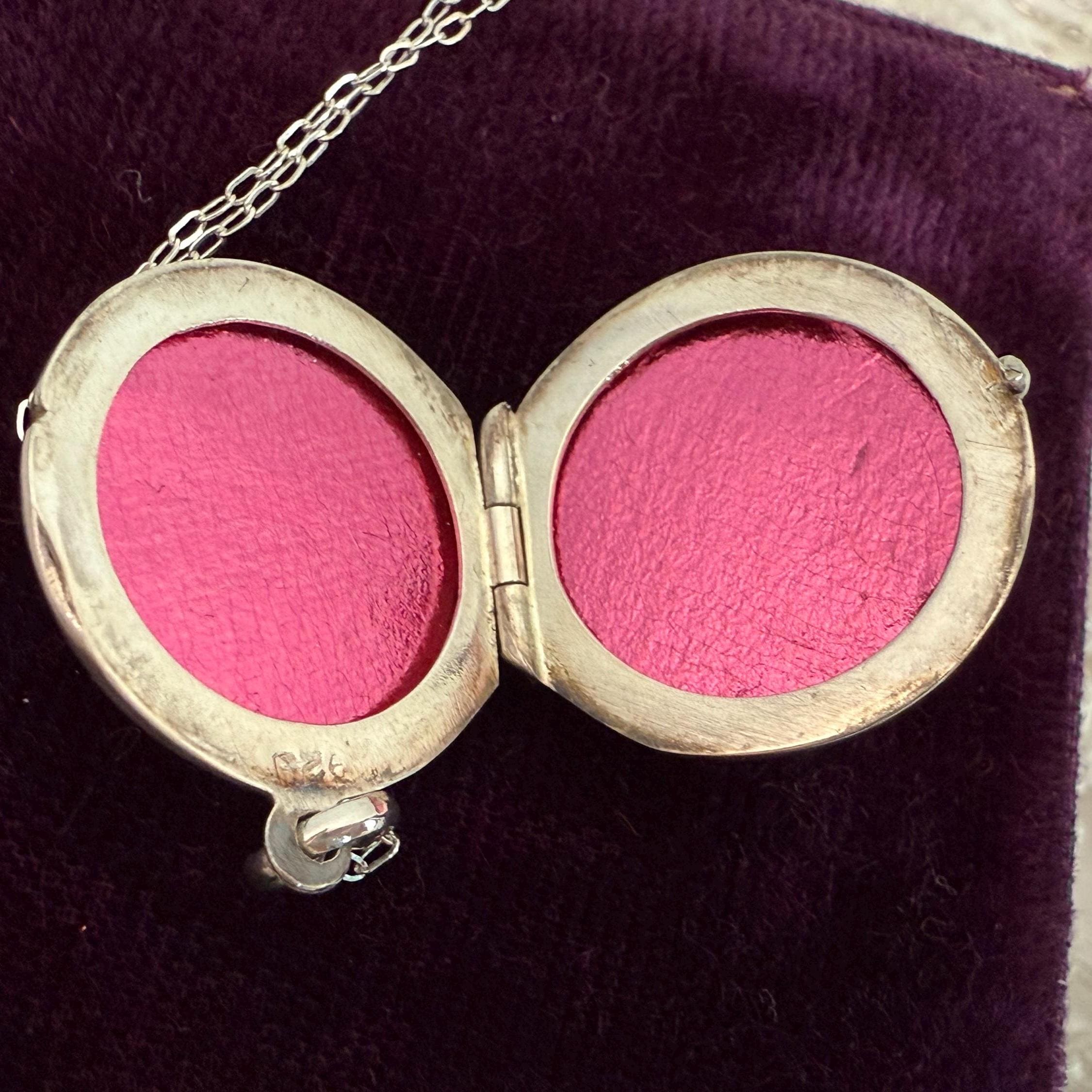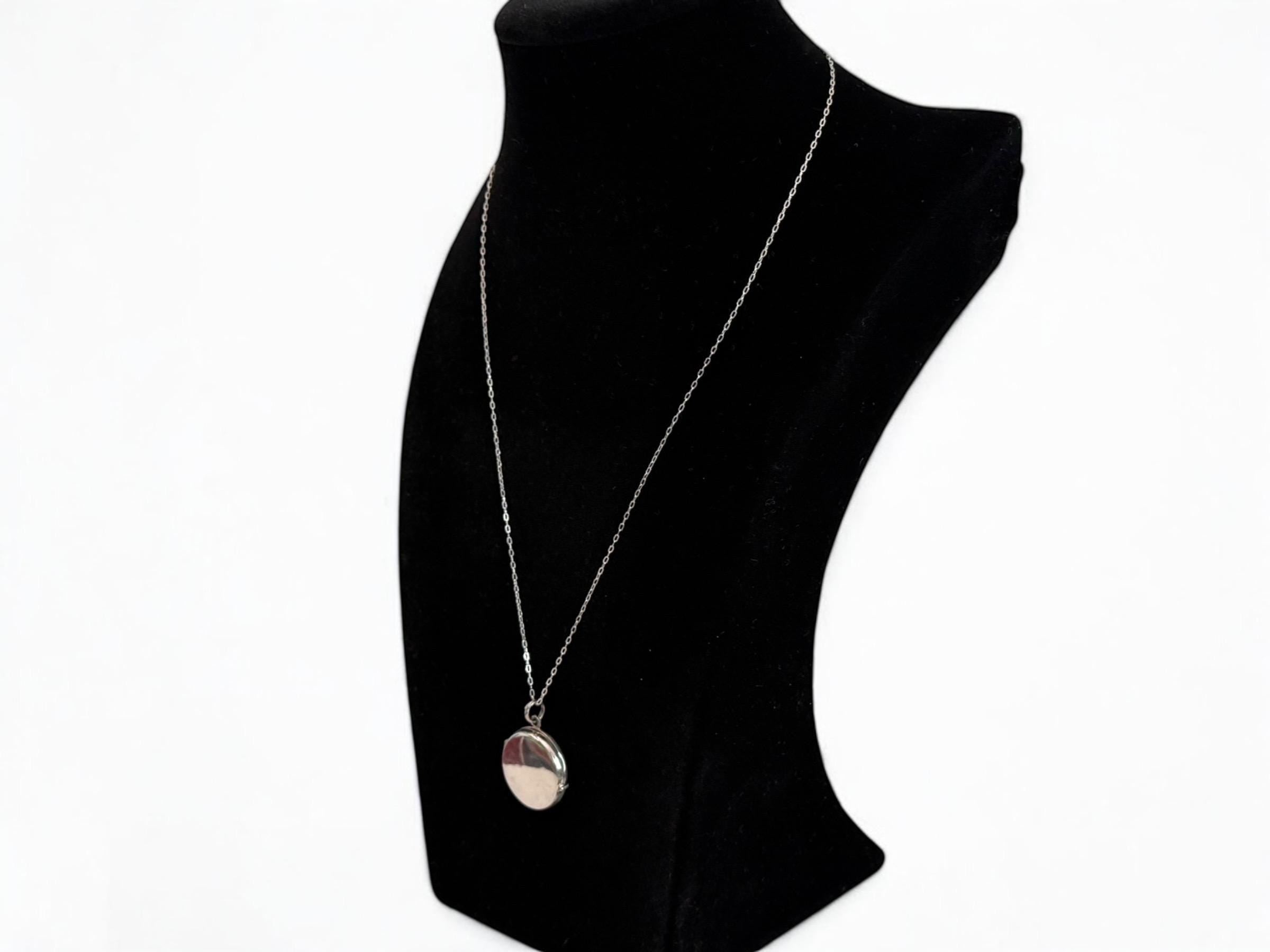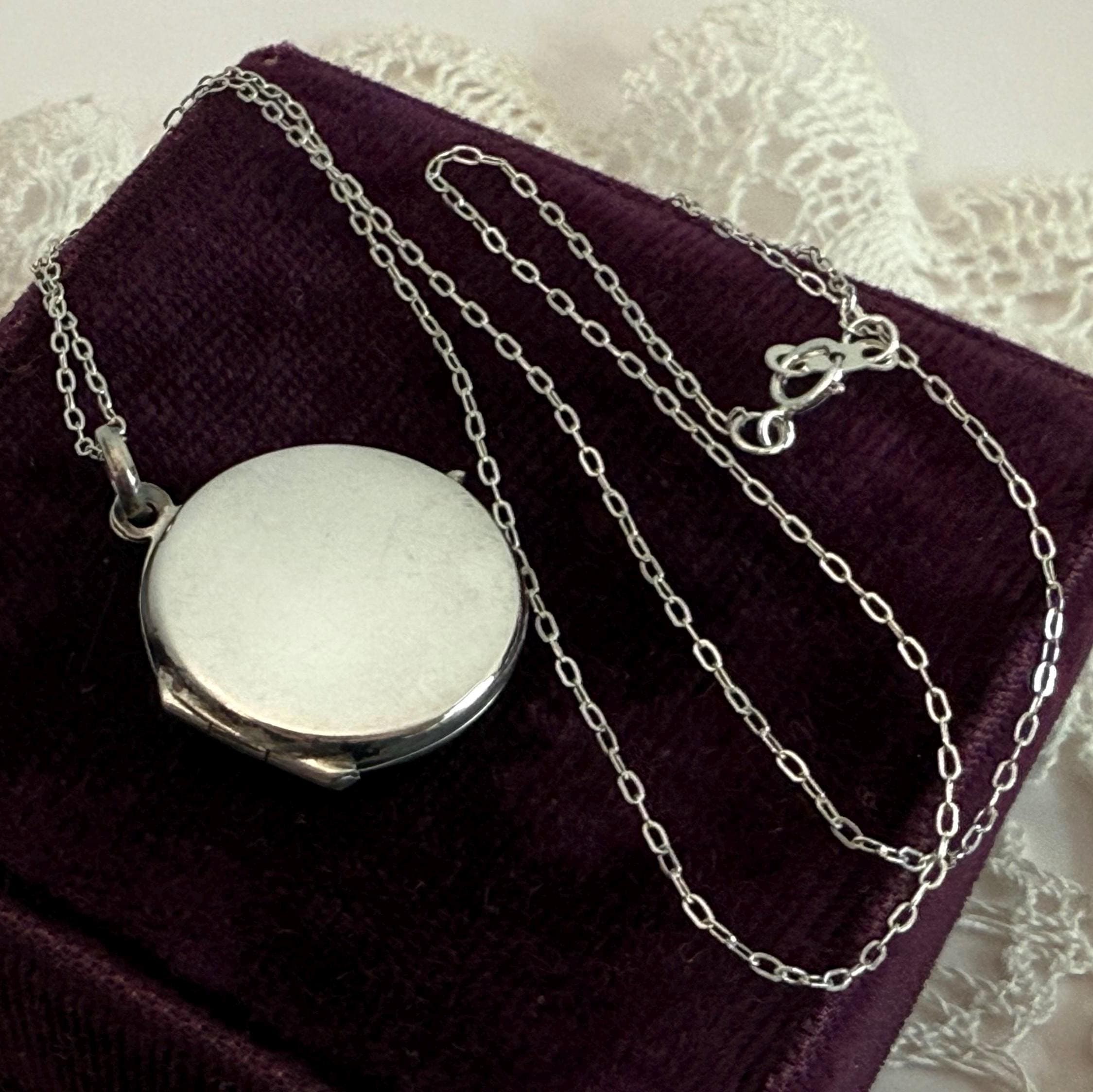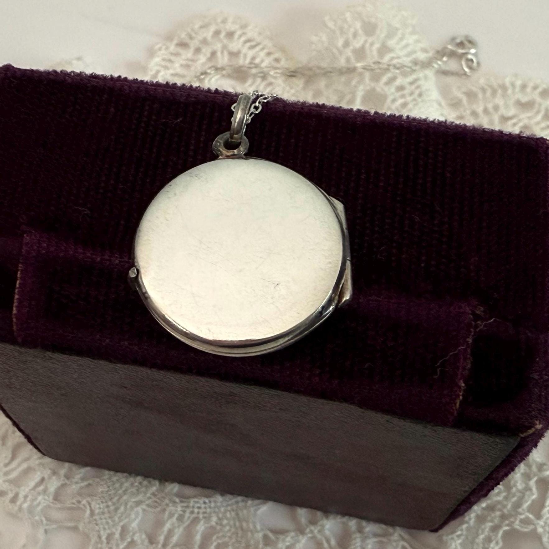 Vintage Round Silver Locket Necklace on 925 Chain, Small 2 Photo Pendant