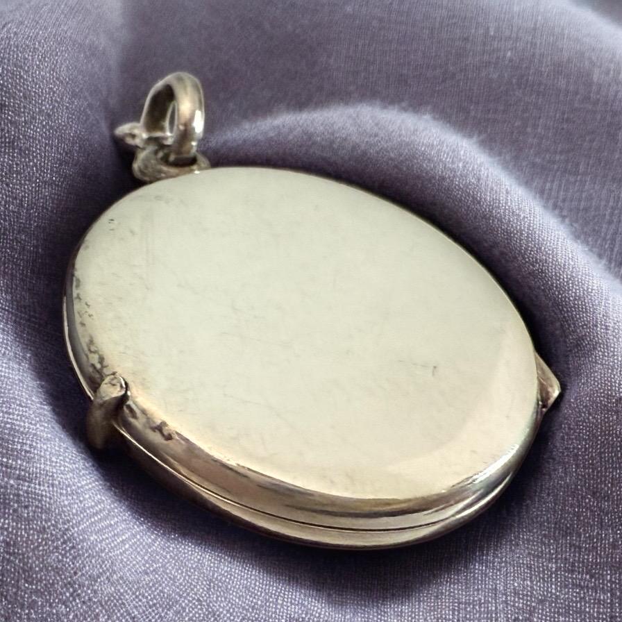 In nice vintage condition with wear and patina commensurate with age - early to mid 1900s. Clasp works well on the new Sterling Silver chain. Locket closes securely.