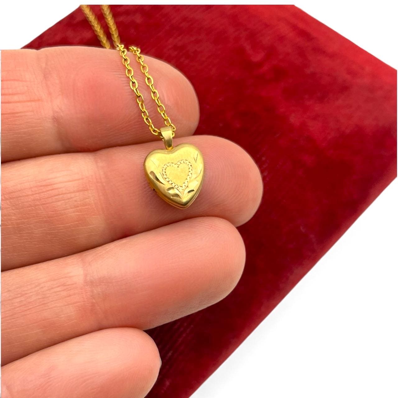 Vintage 14K Gold Filled Heart Locket Necklace - Petite Etched Photo Pendant PPC