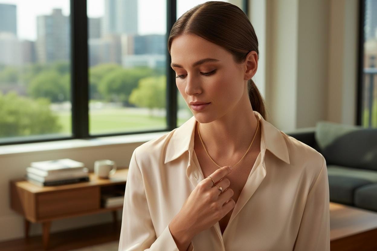 Shiny, simple and feminine. Necklace is approx. 16'' length.
