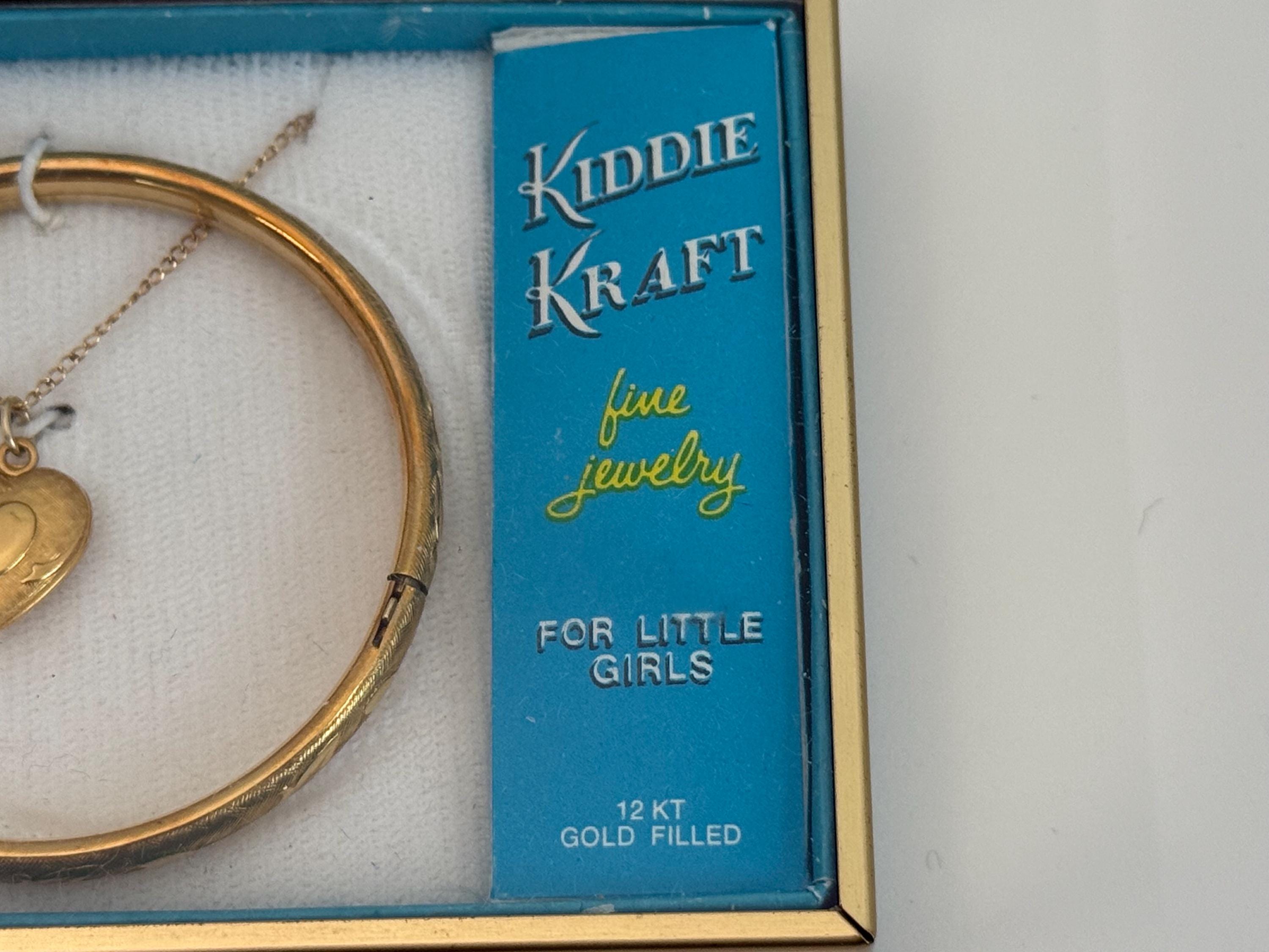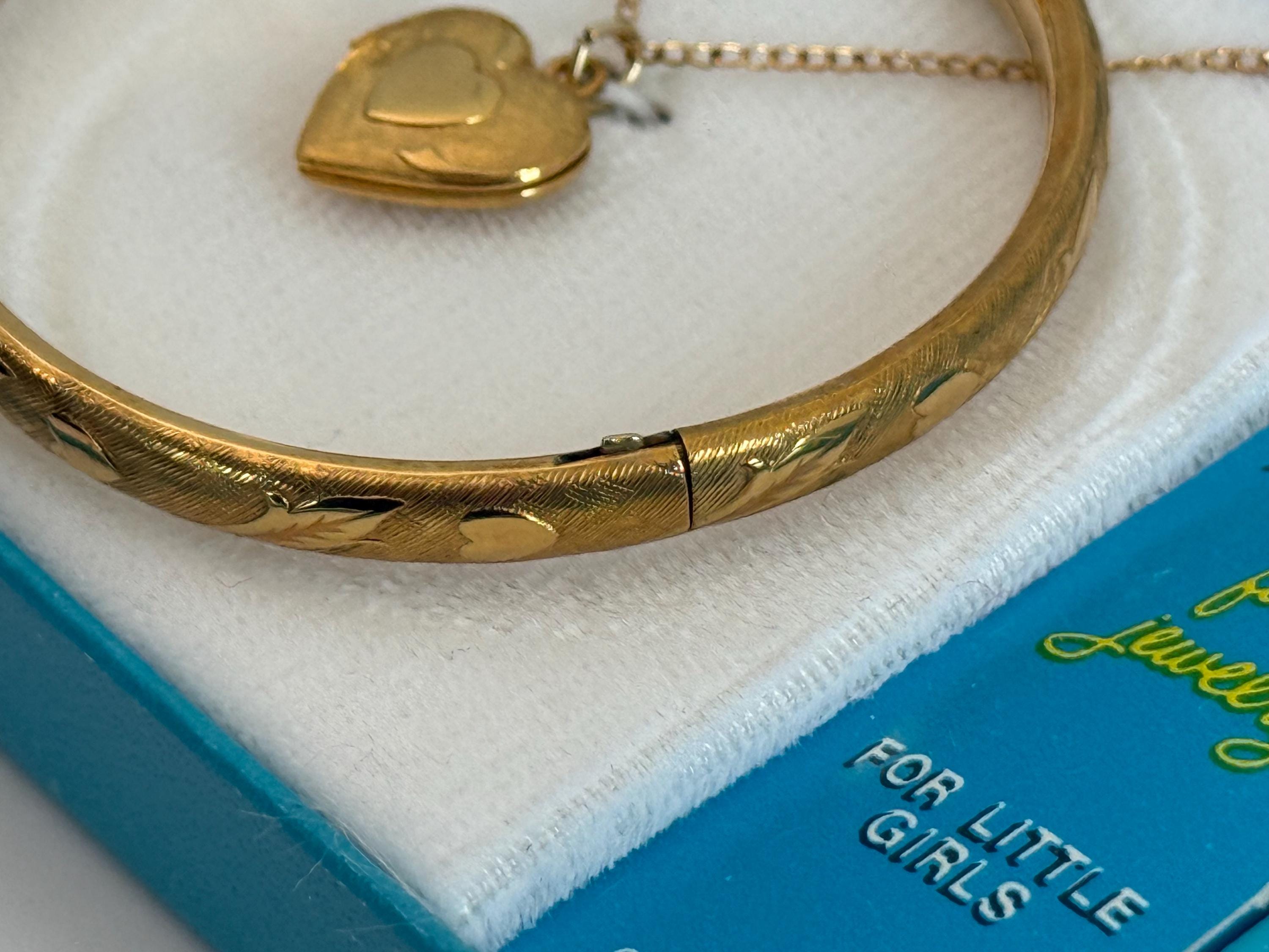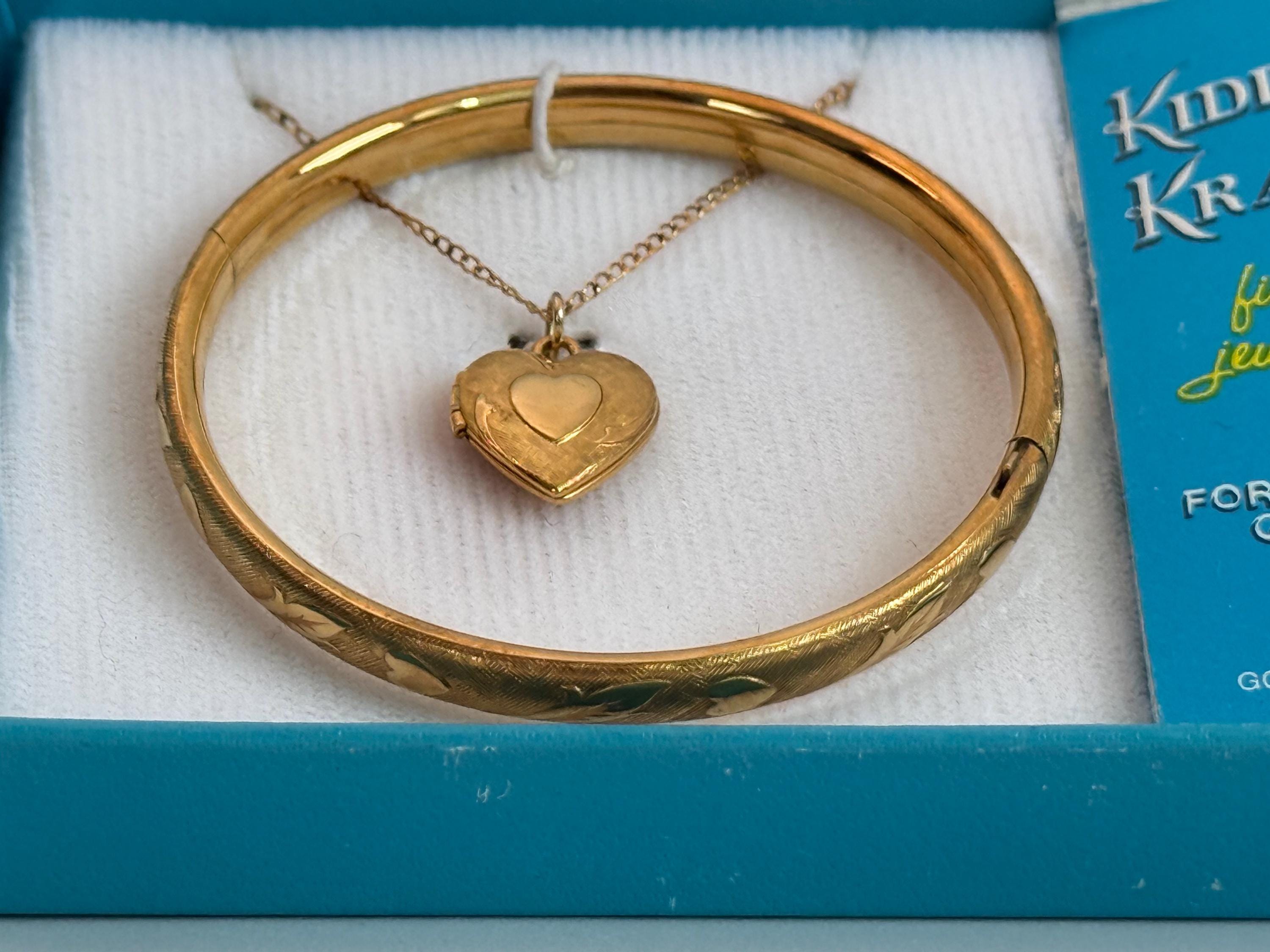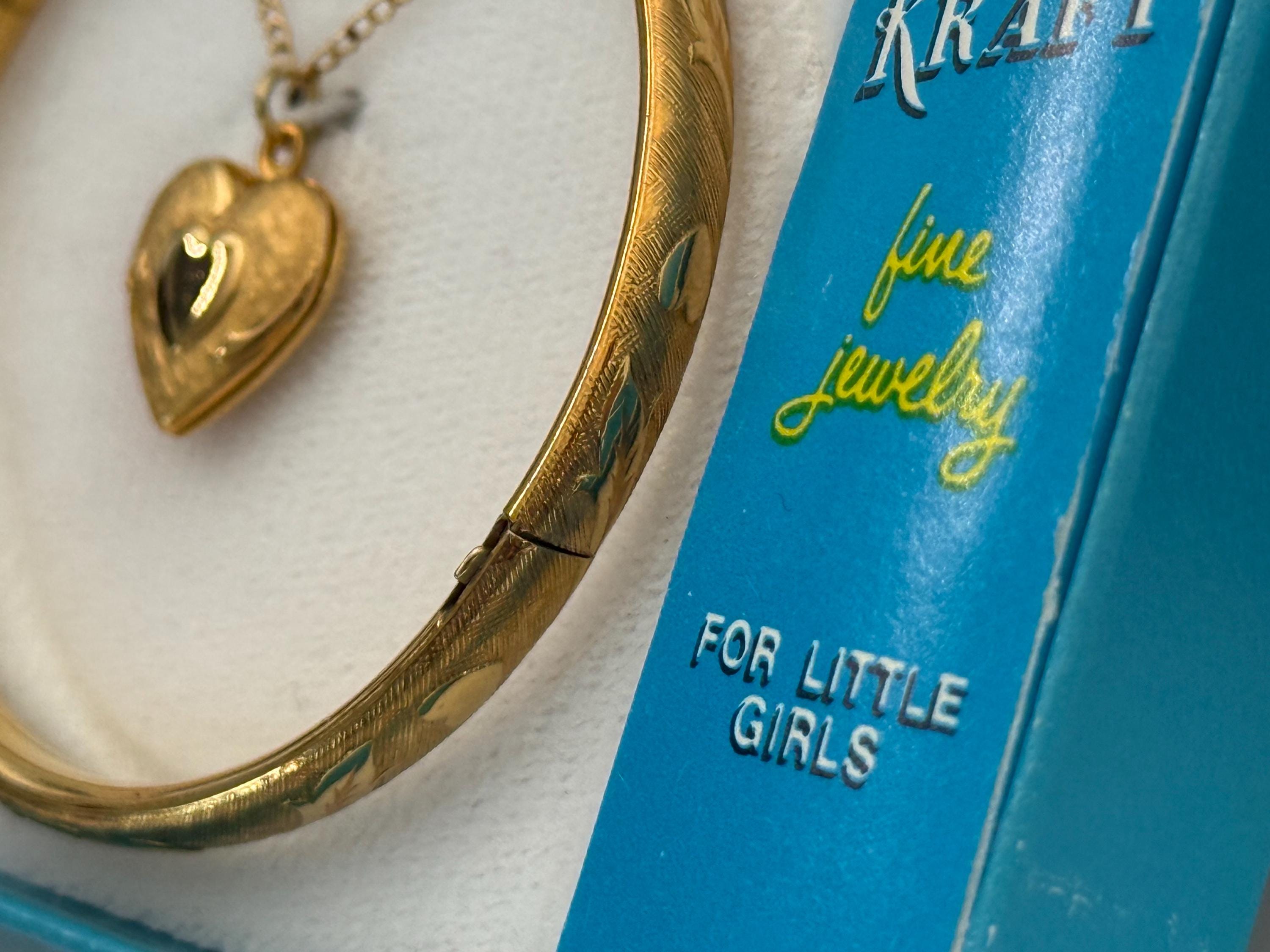 Vintage 12K Gold Filled Heart Locket & Bangle Bracelet - Kiddie Kraft 2 Pc Set in Box - Retro Era Girl Child