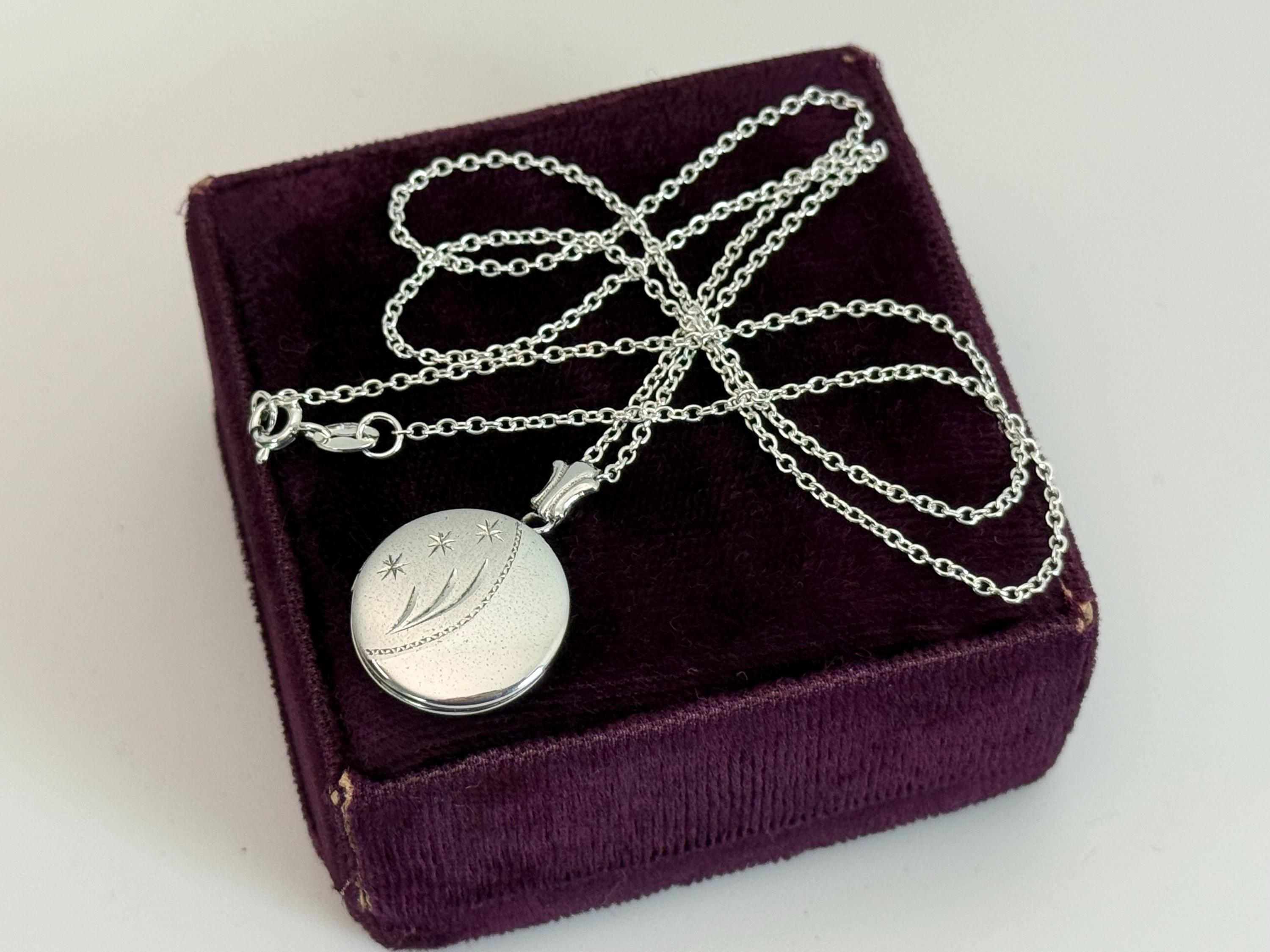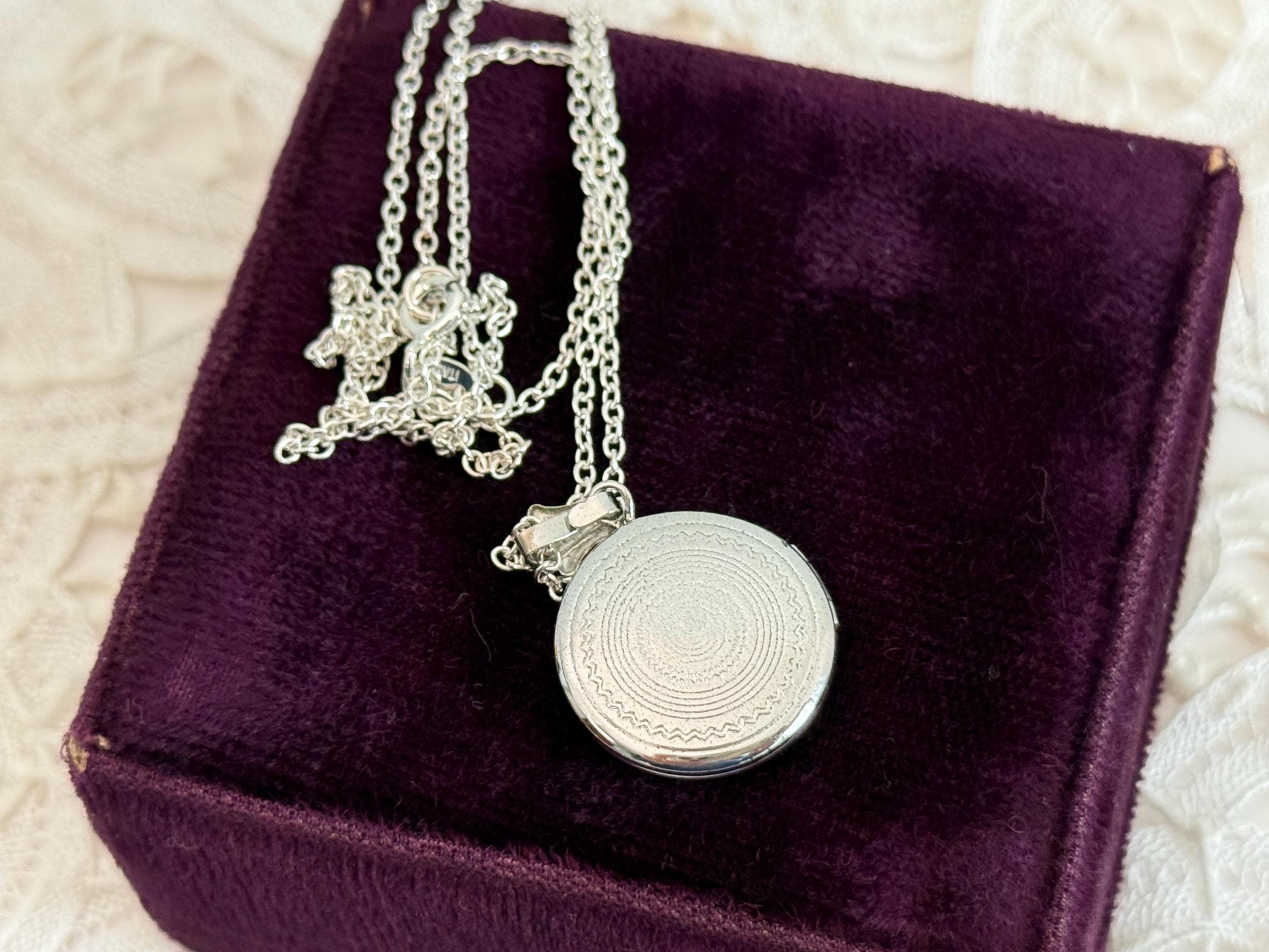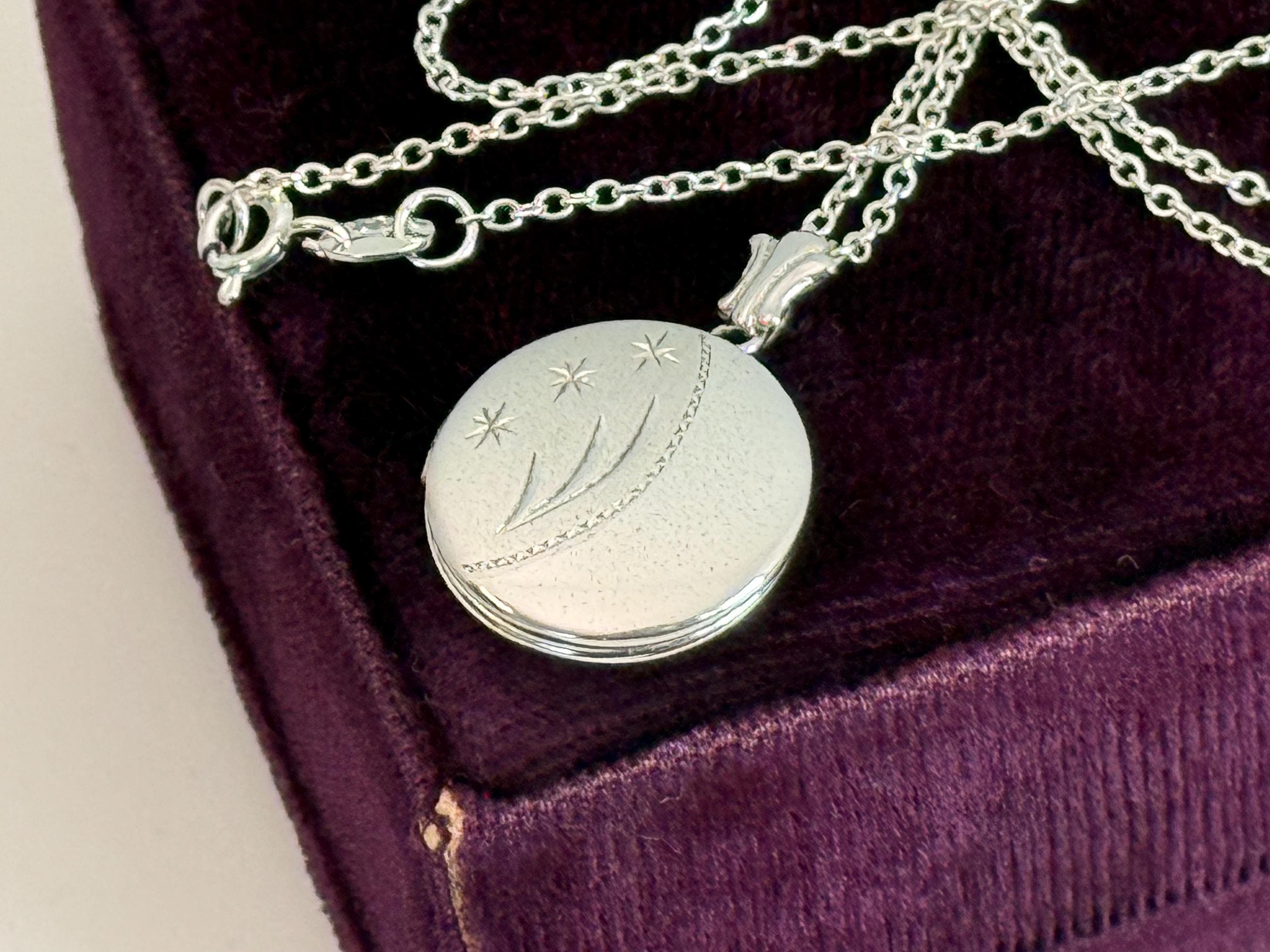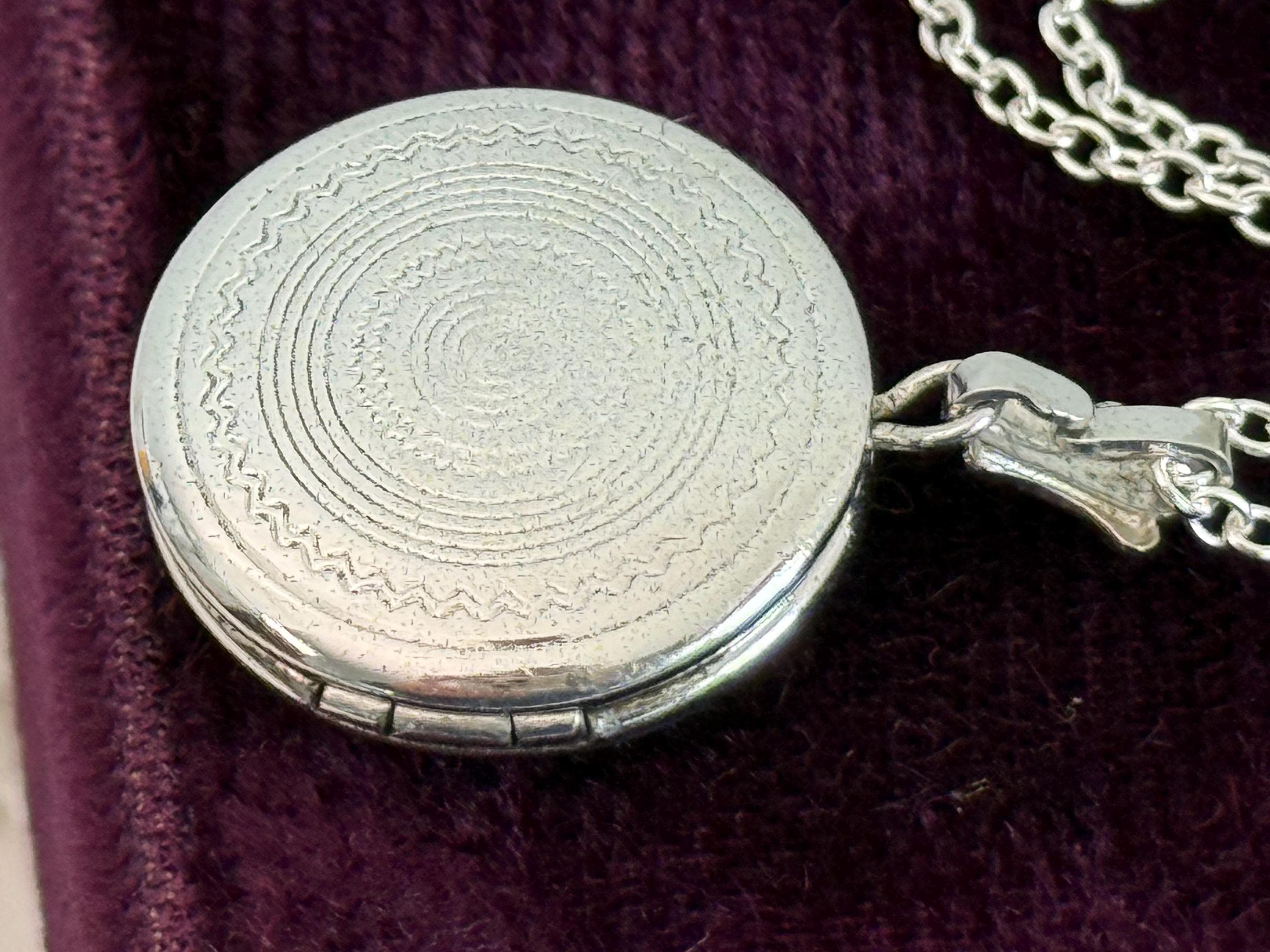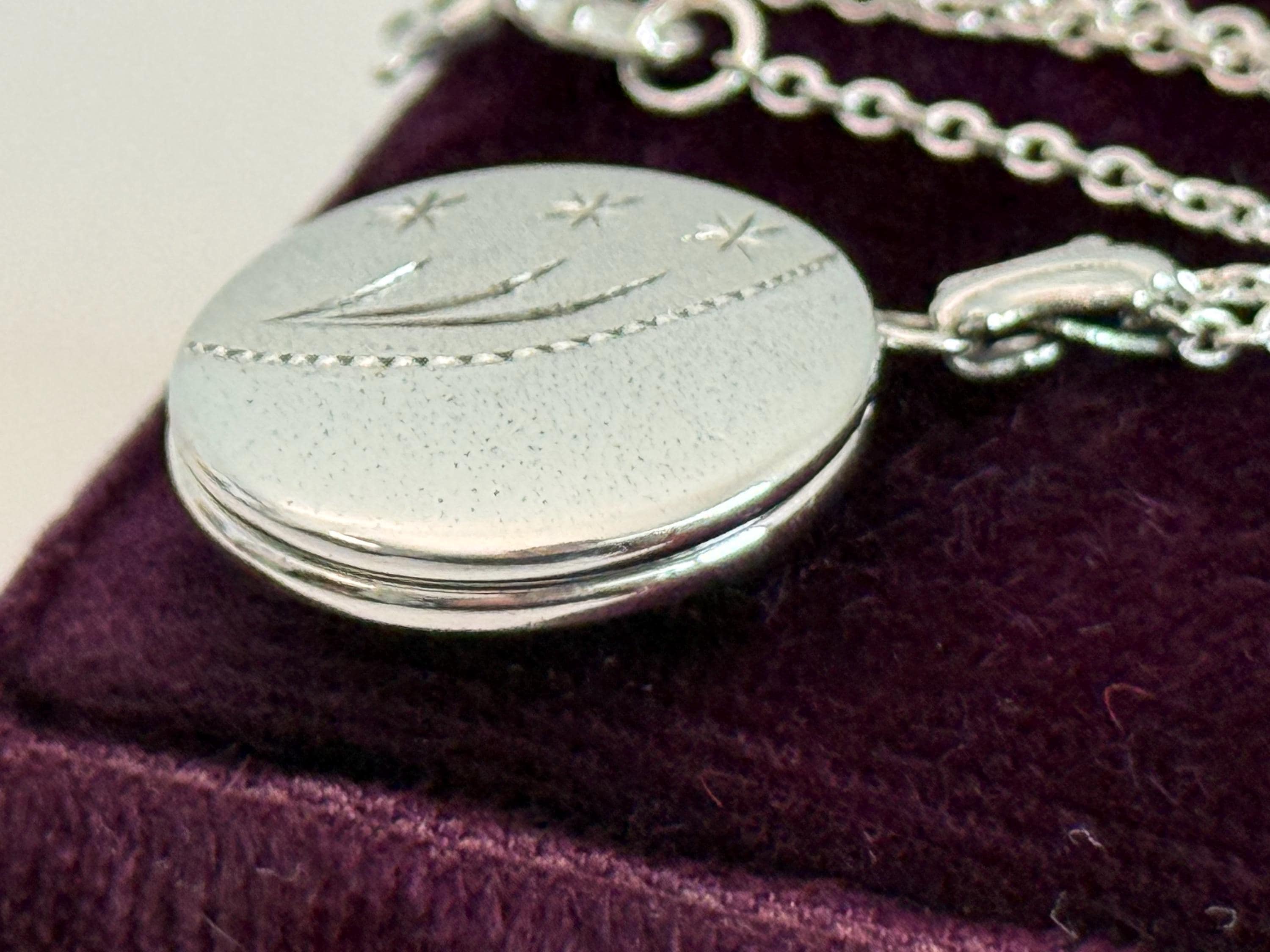 Vintage Round Silver Etched Locket Necklace on 925 Chain, Small 2 Photo Pendant