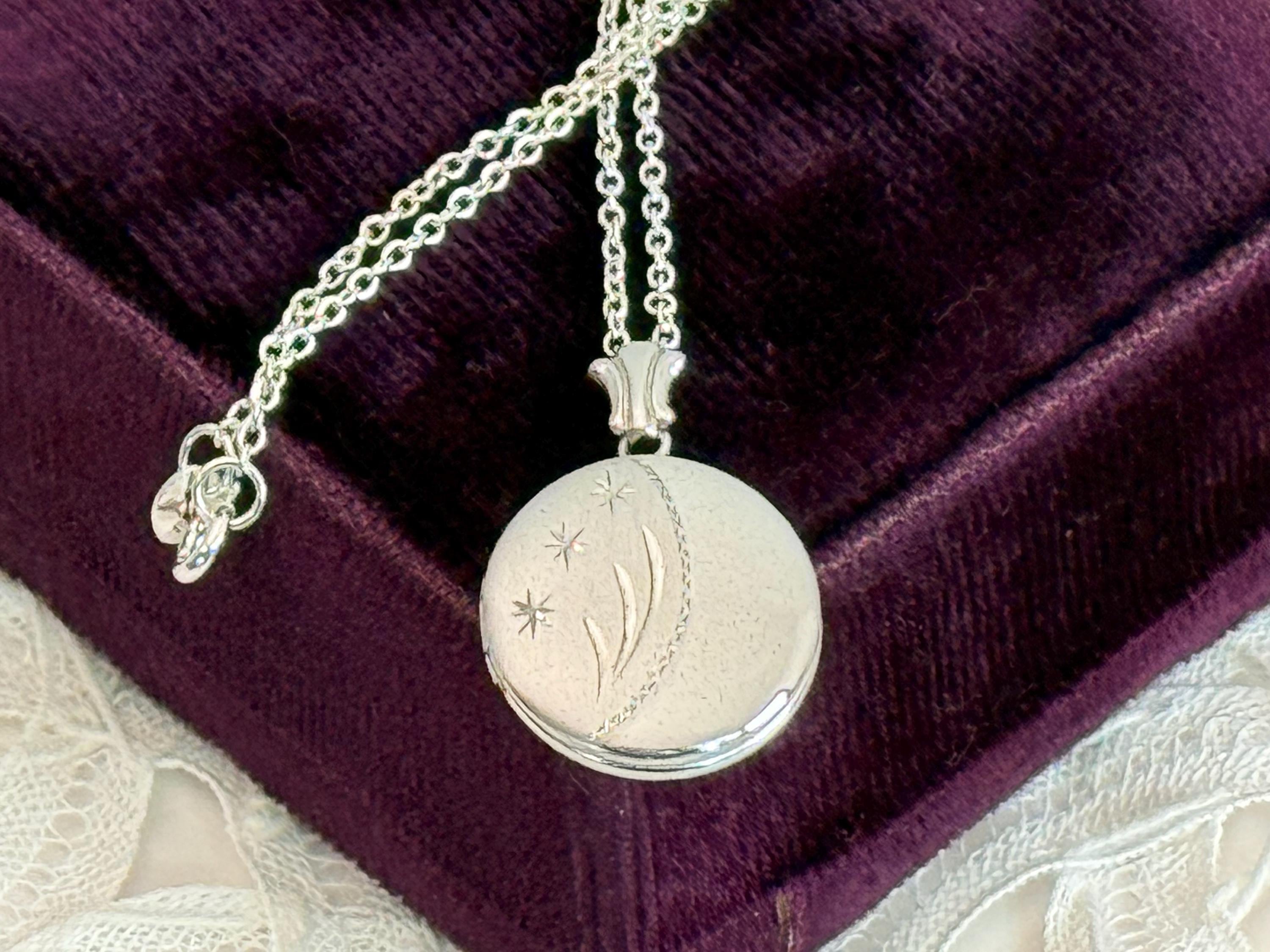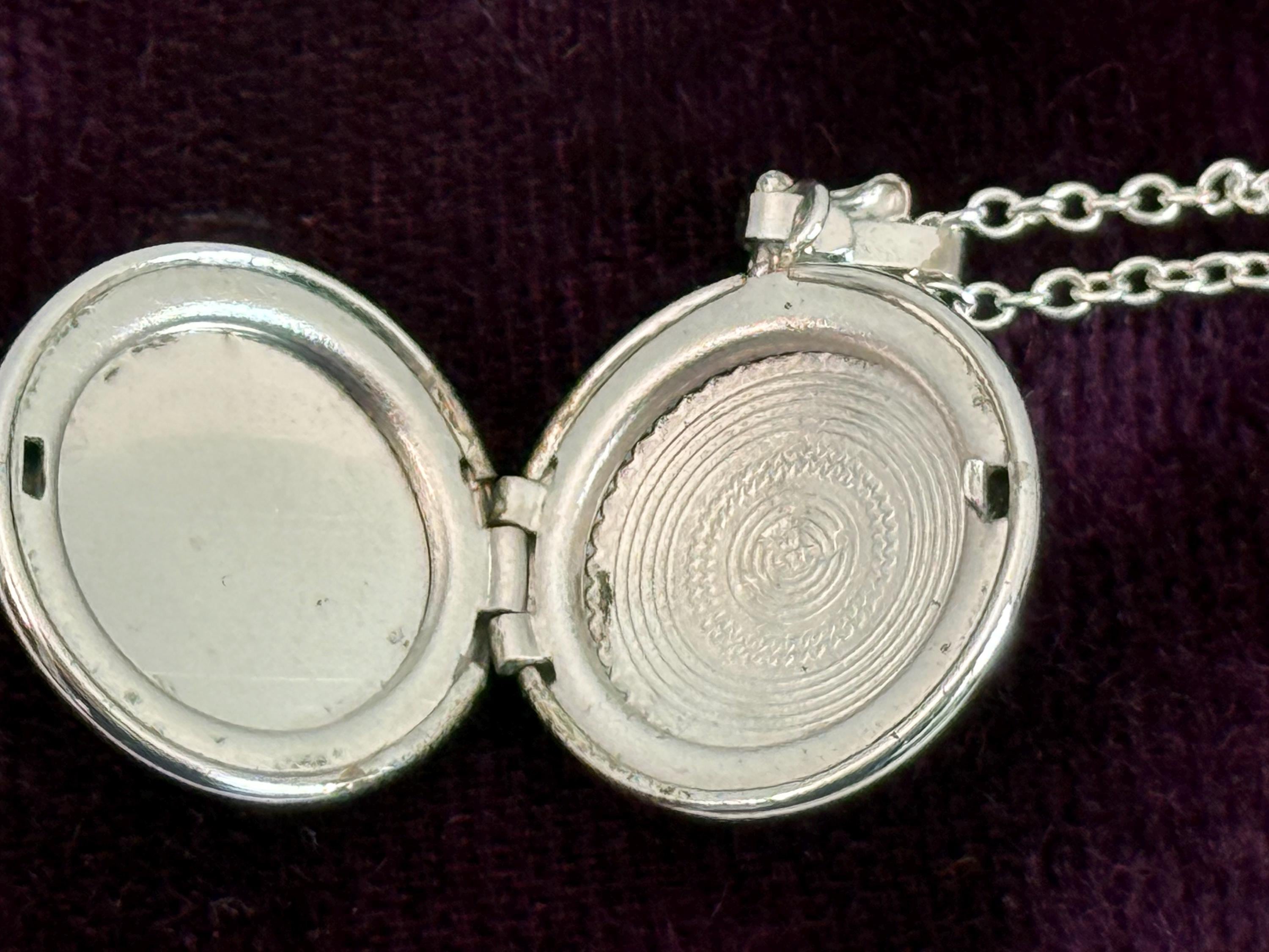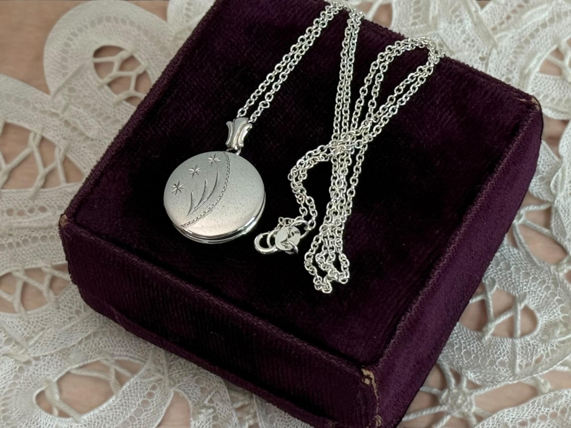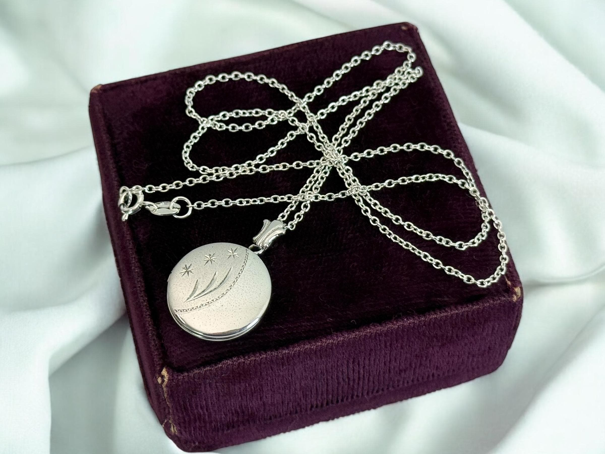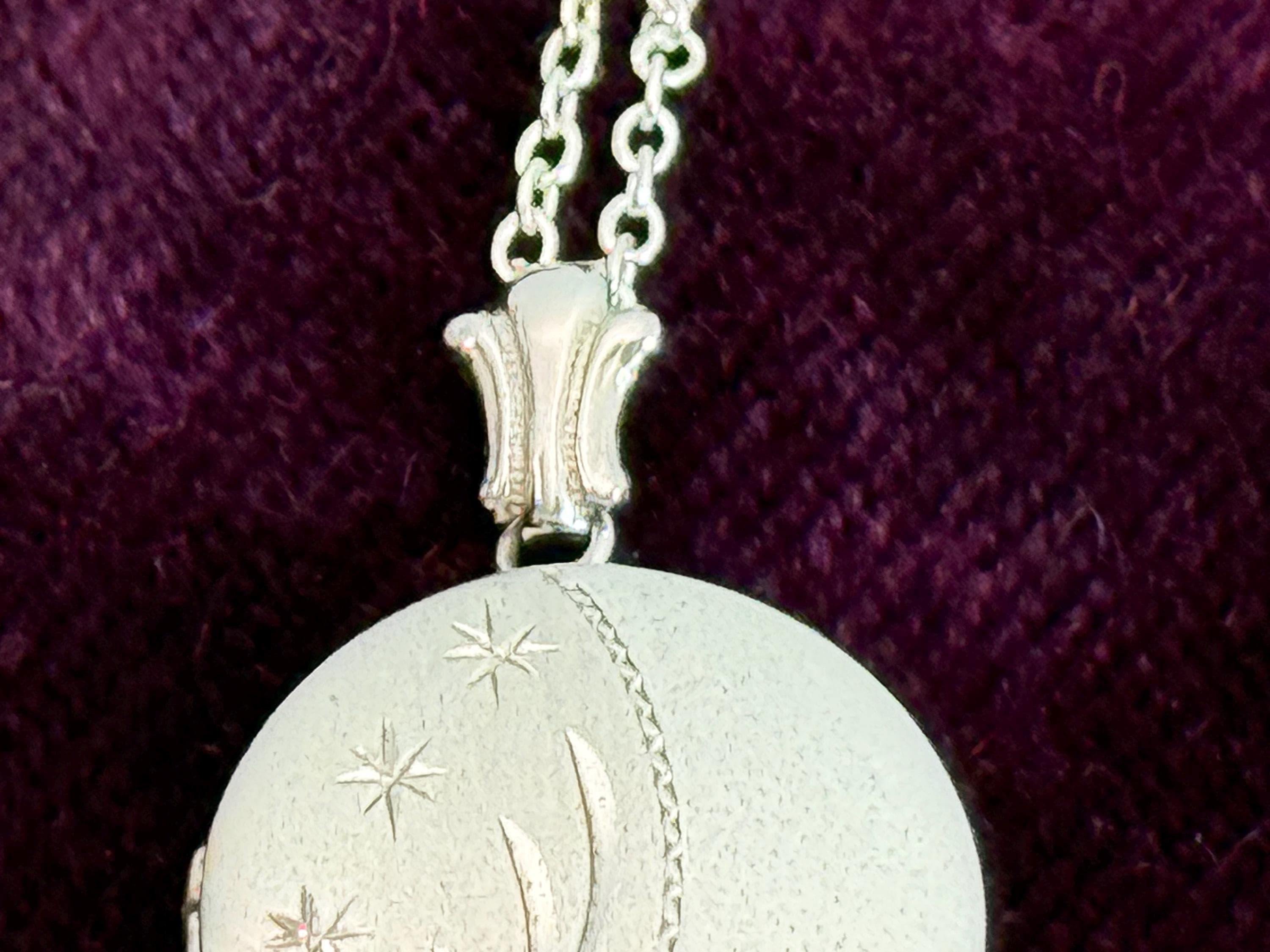 Vintage Round Silver Etched Locket Necklace on 925 Chain, Small 2 Photo Pendant