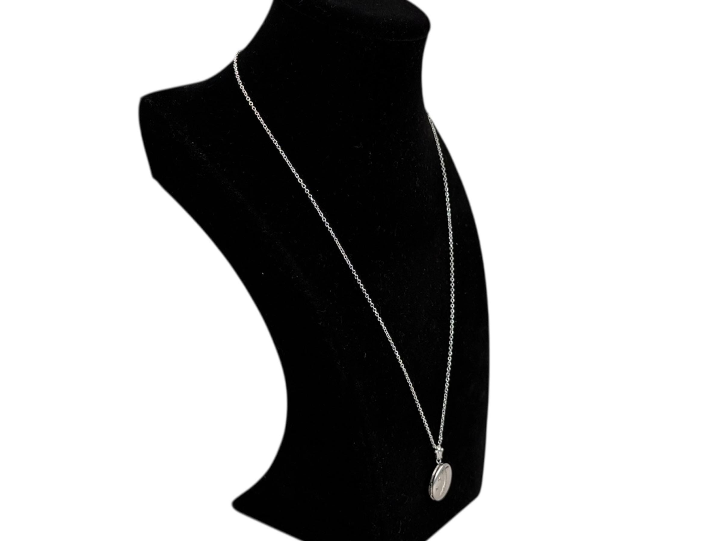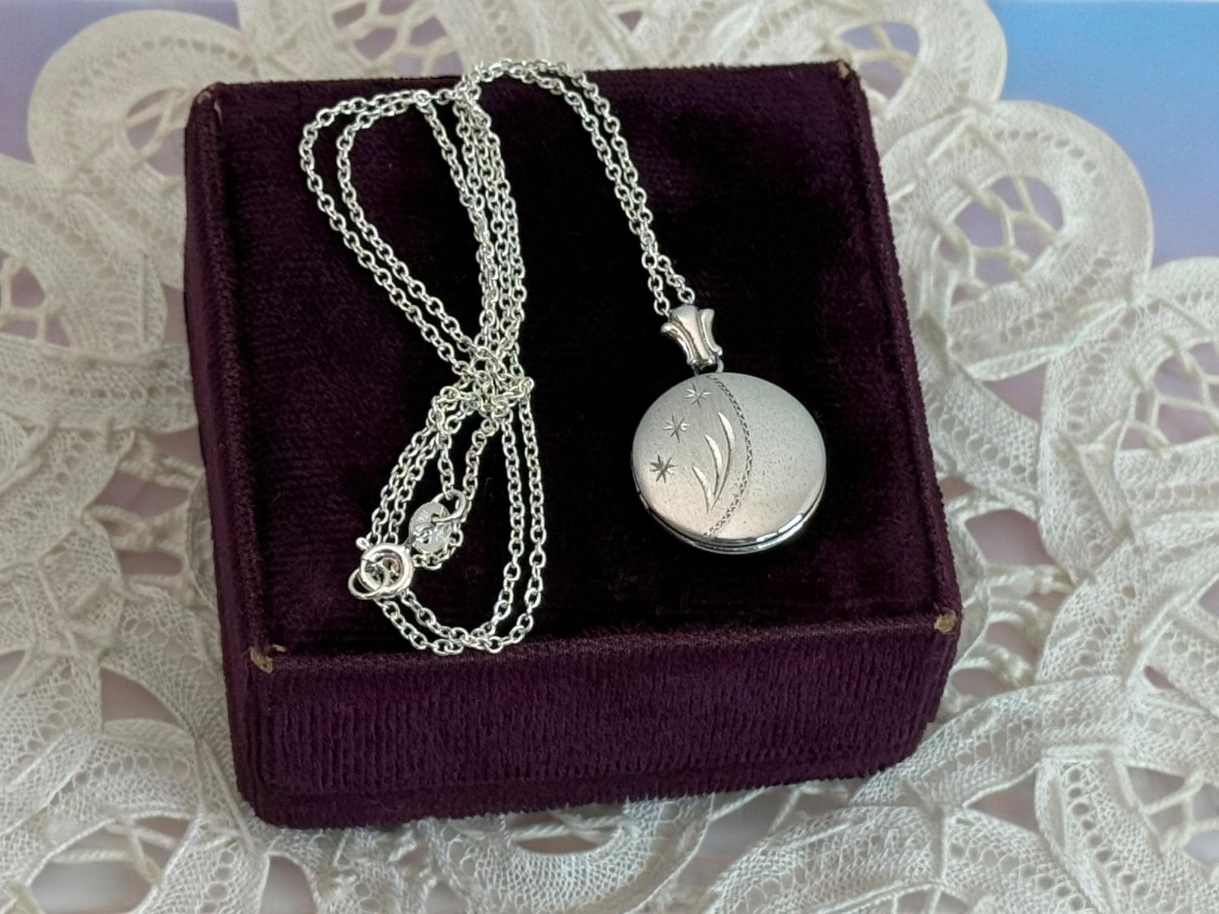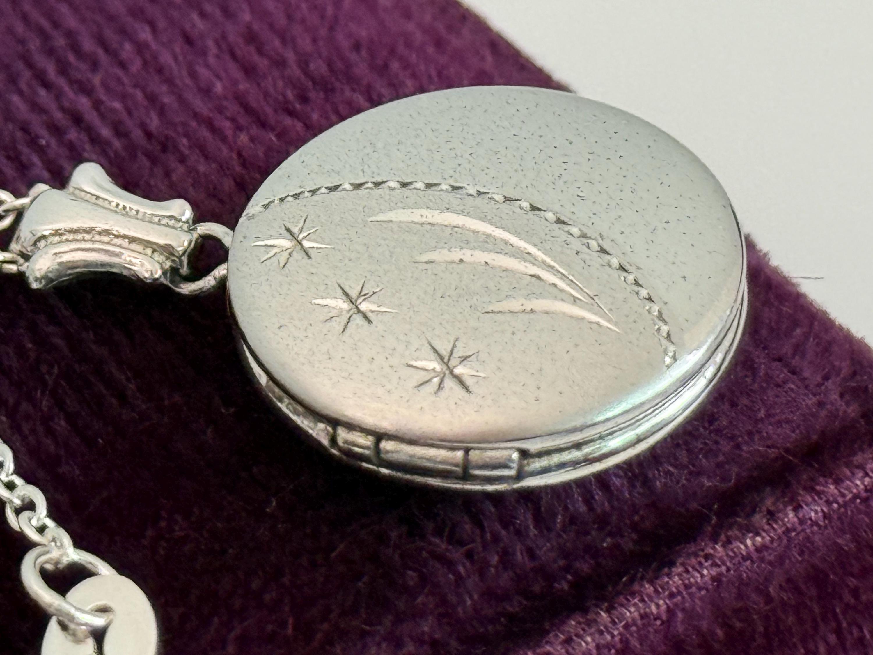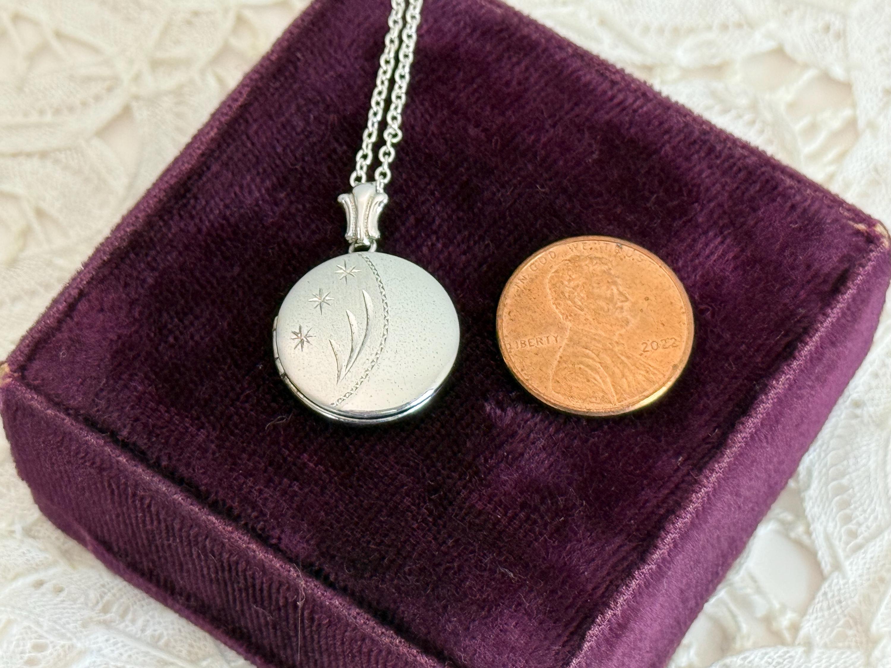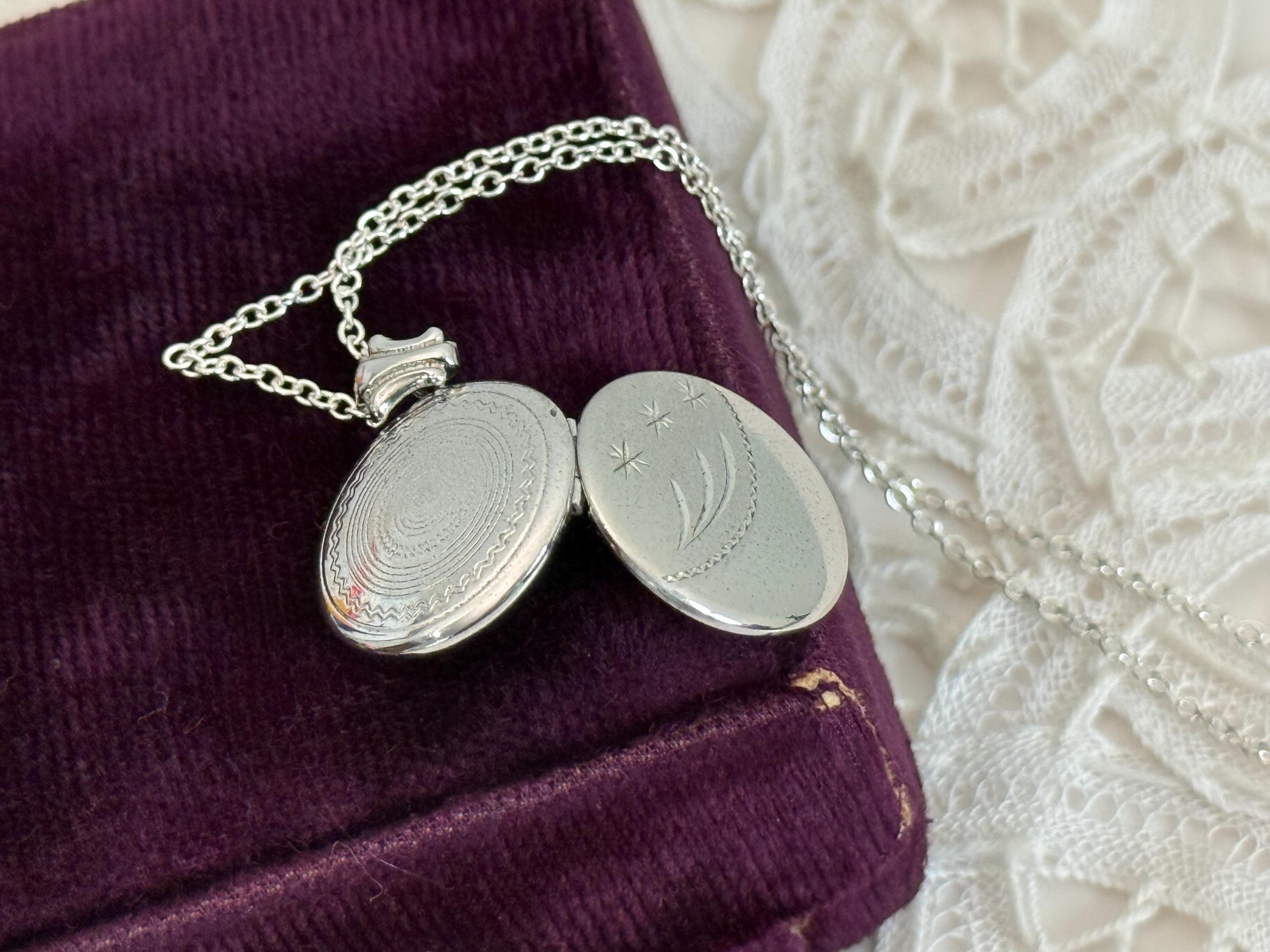 Vintage Round Silver Etched Locket Necklace on 925 Chain, Small 2 Photo Pendant