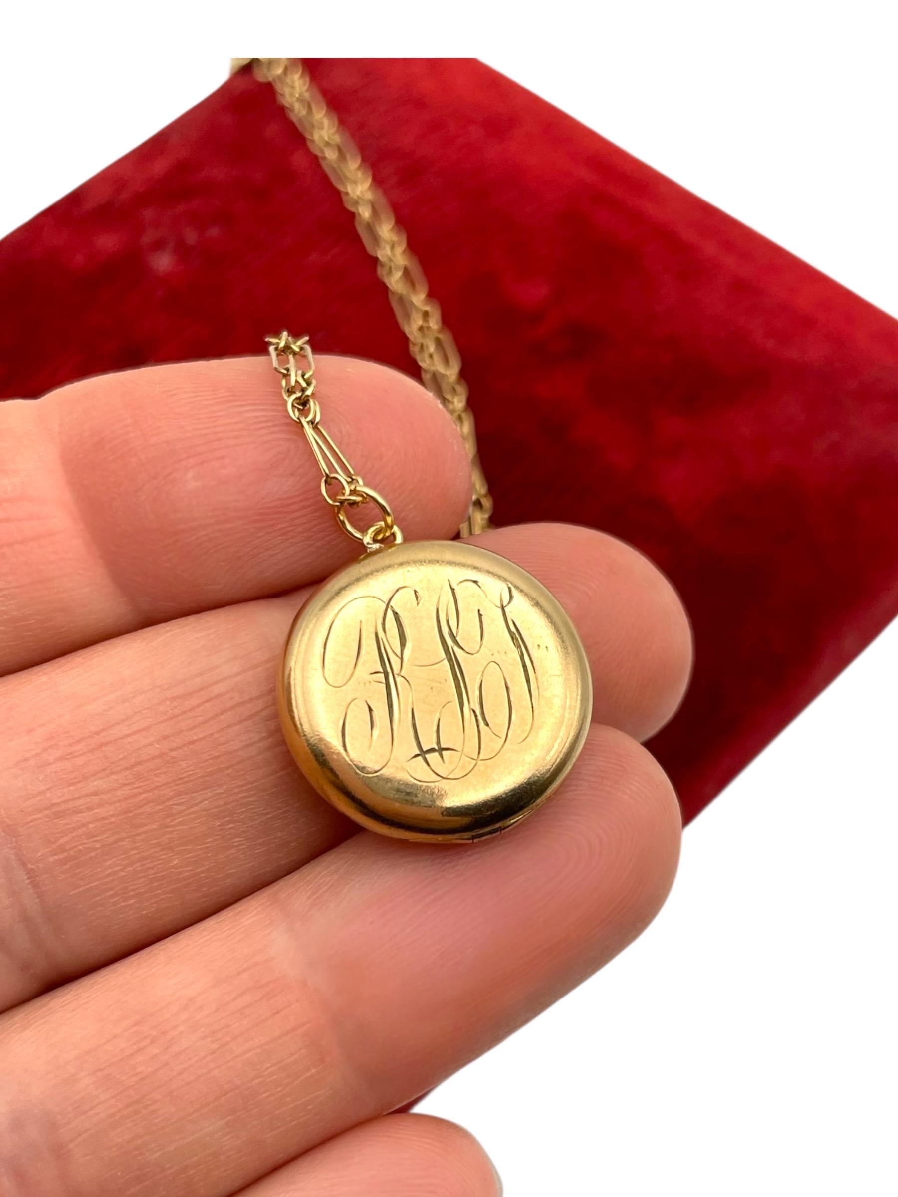 Antique Gold Filled Locket Necklace – Edwardian Monogram RLT, 1900s Photo Pendant