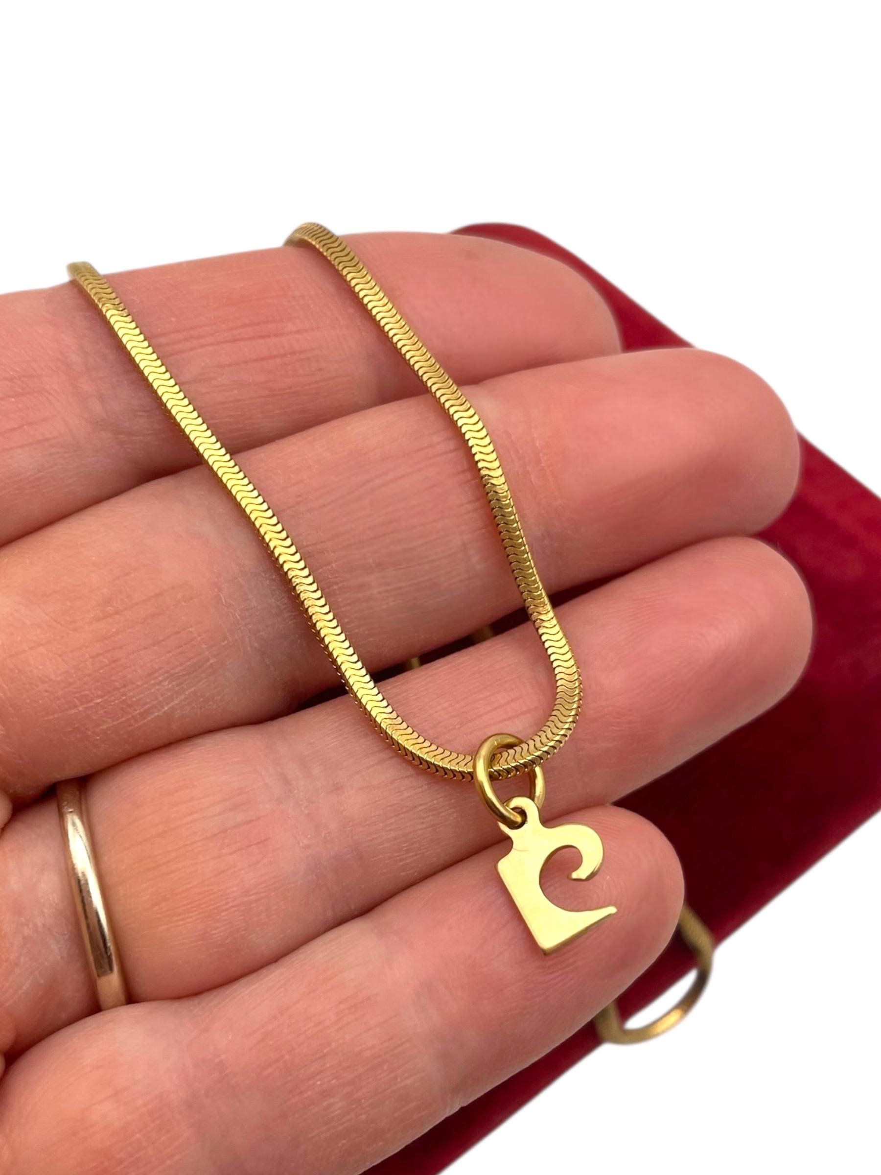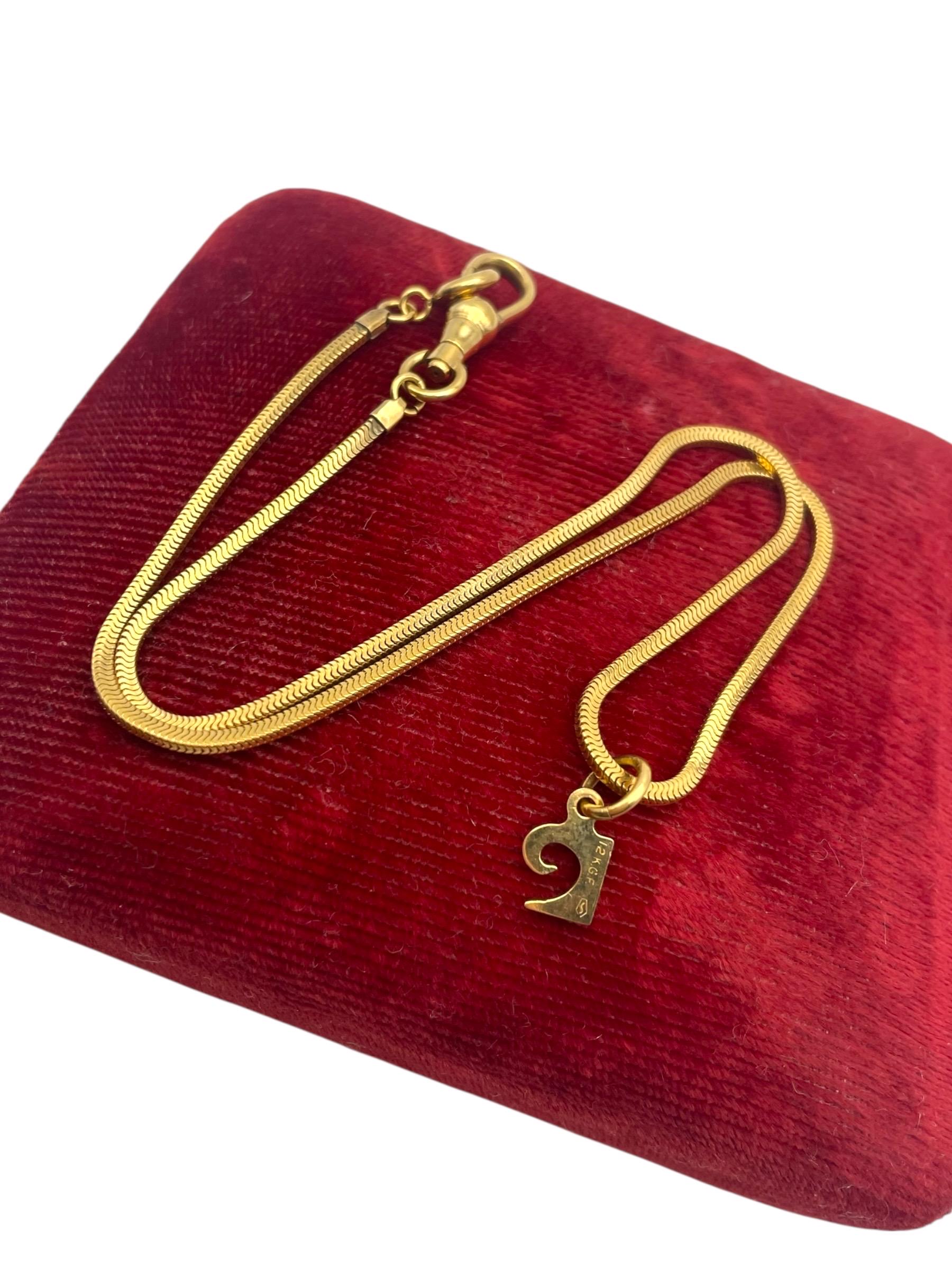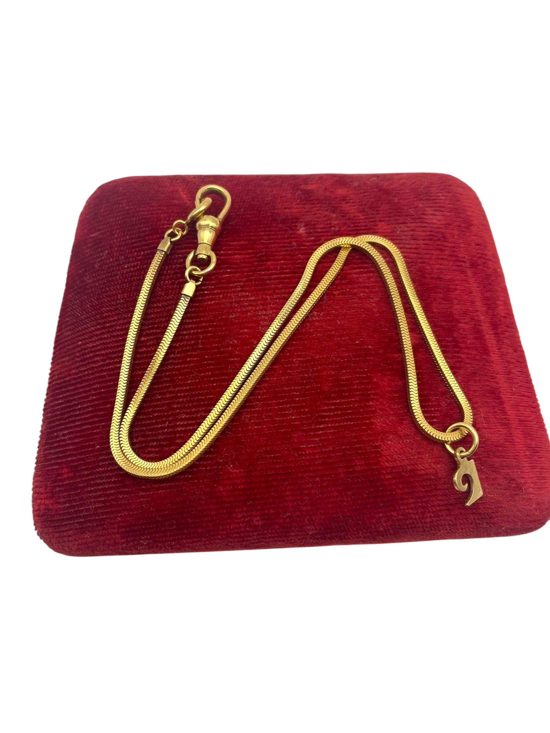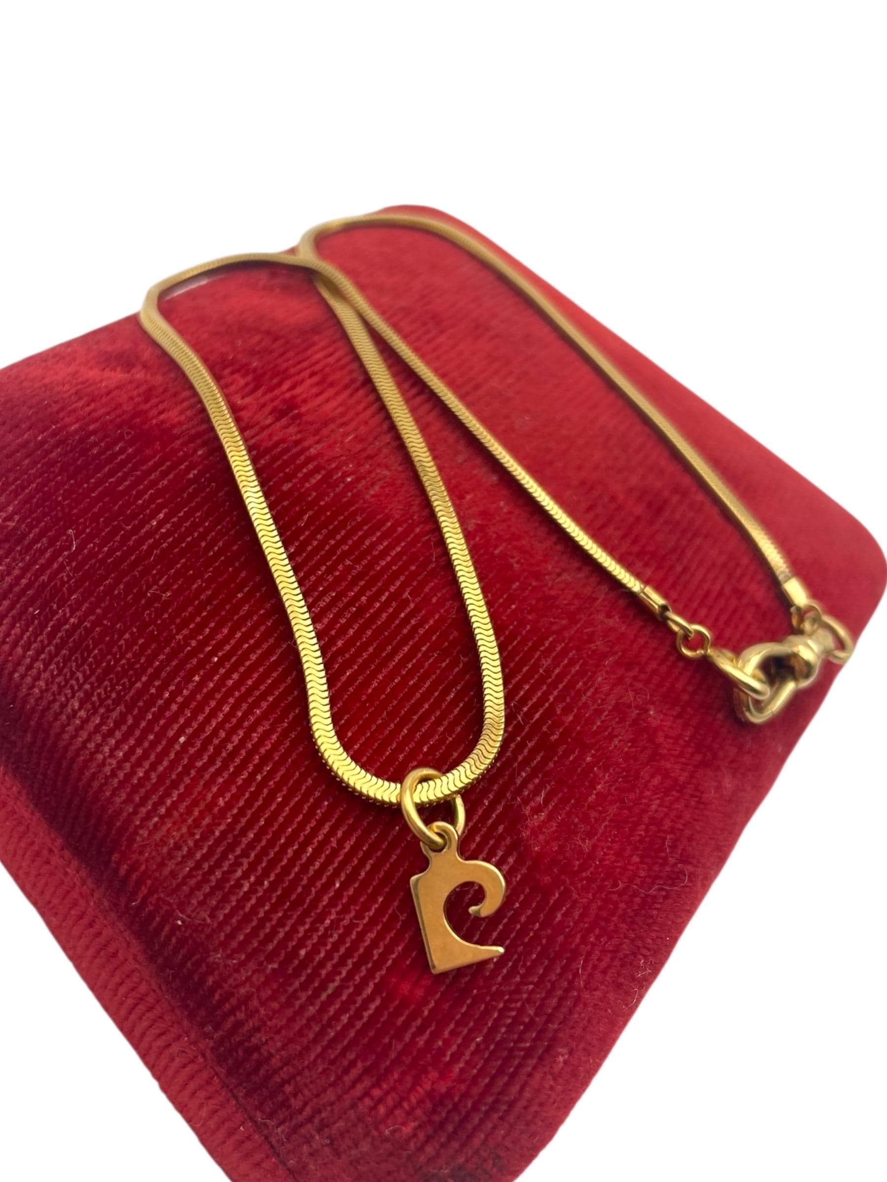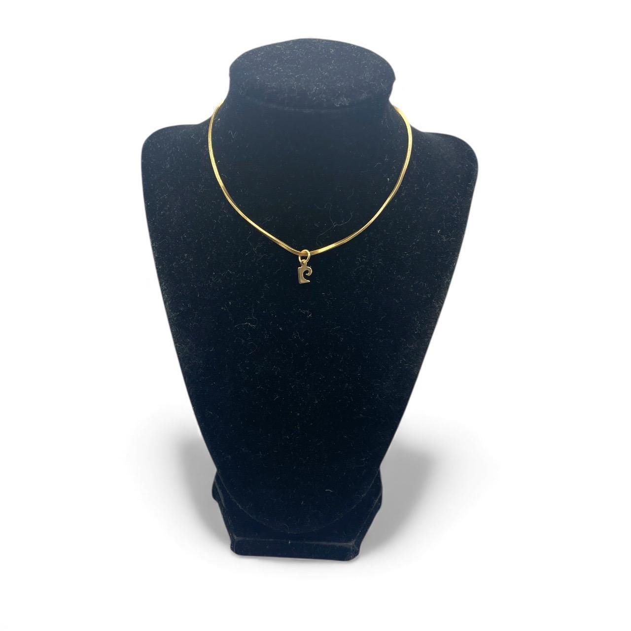Description: Awesome vintage Pierre Cardin gold filled snake chain with dog clip, small Pierre Cardin charm attached. Sleek and modern snake chain necklace that can be worn alone or layered with others. Marked 12K Gold filled and signed by Pierre Cardin.