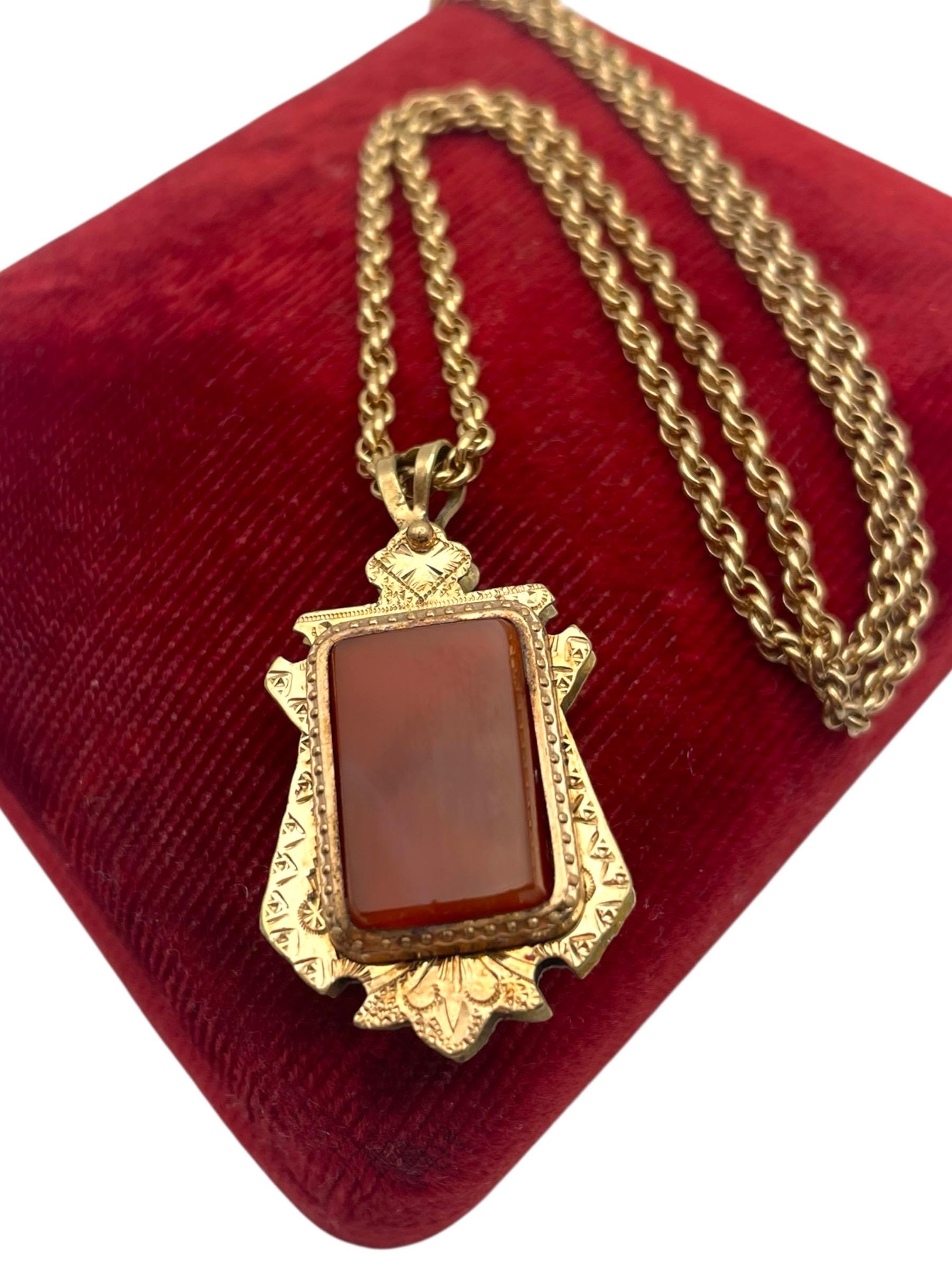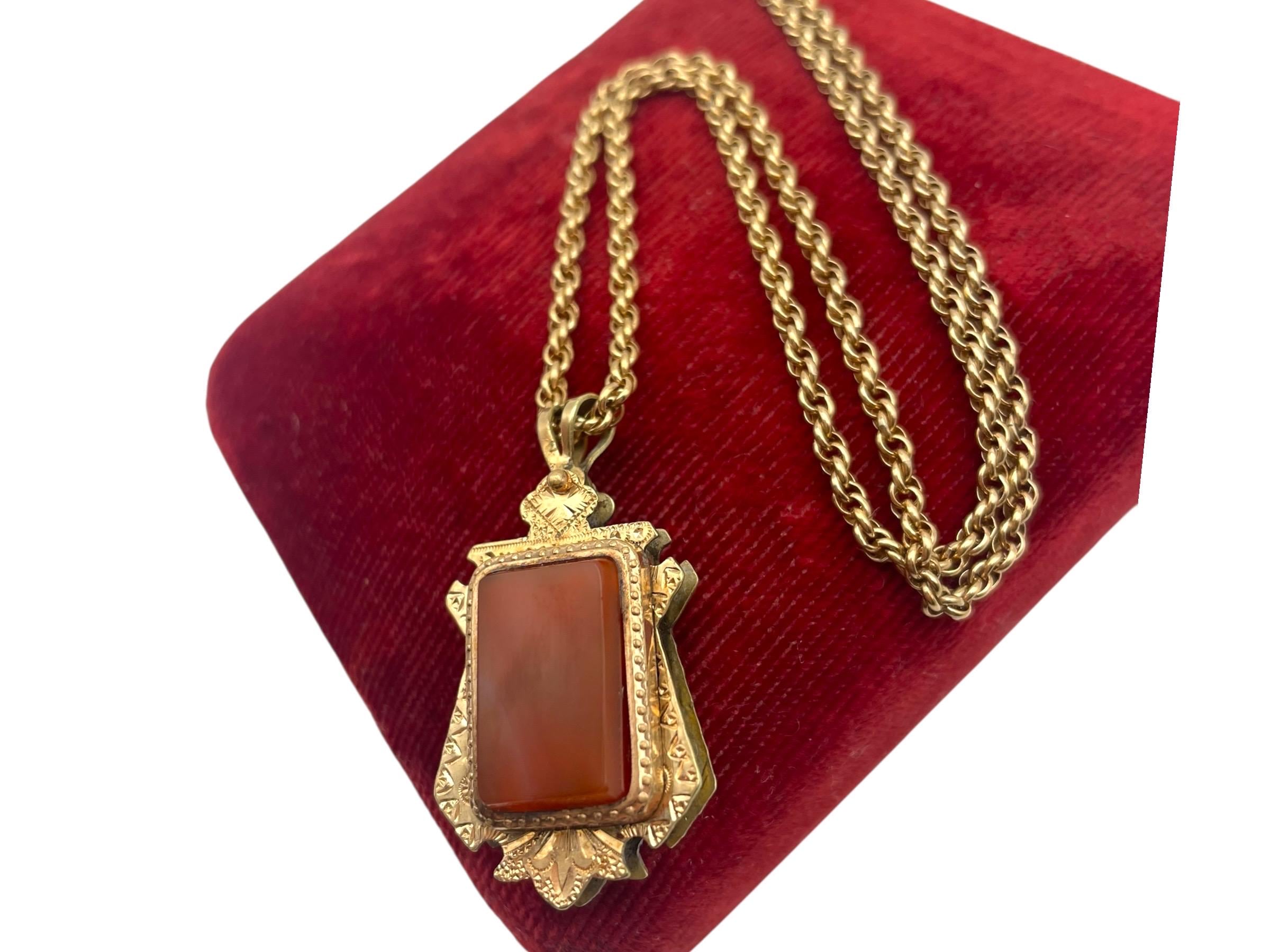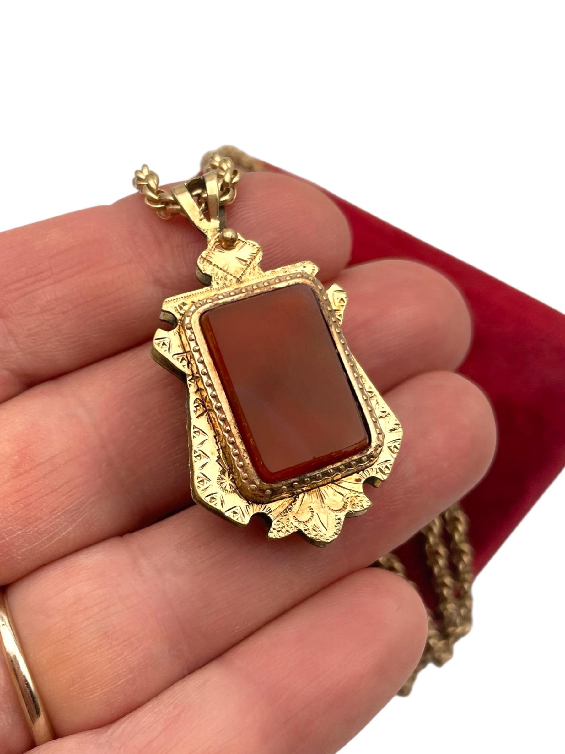 Victorian Gold Filled Carnelian Fob Pendant – Antique Reversible Necklace