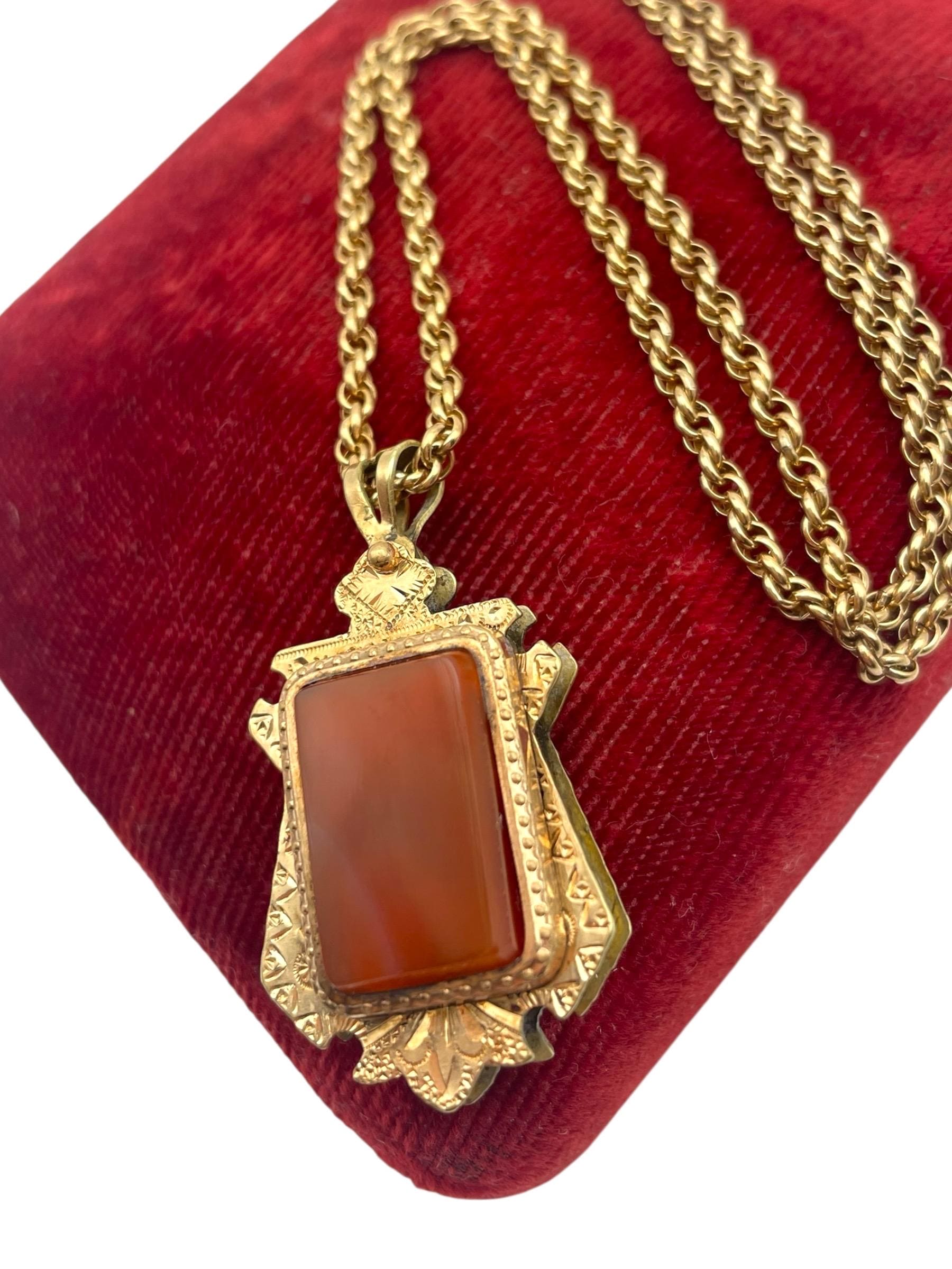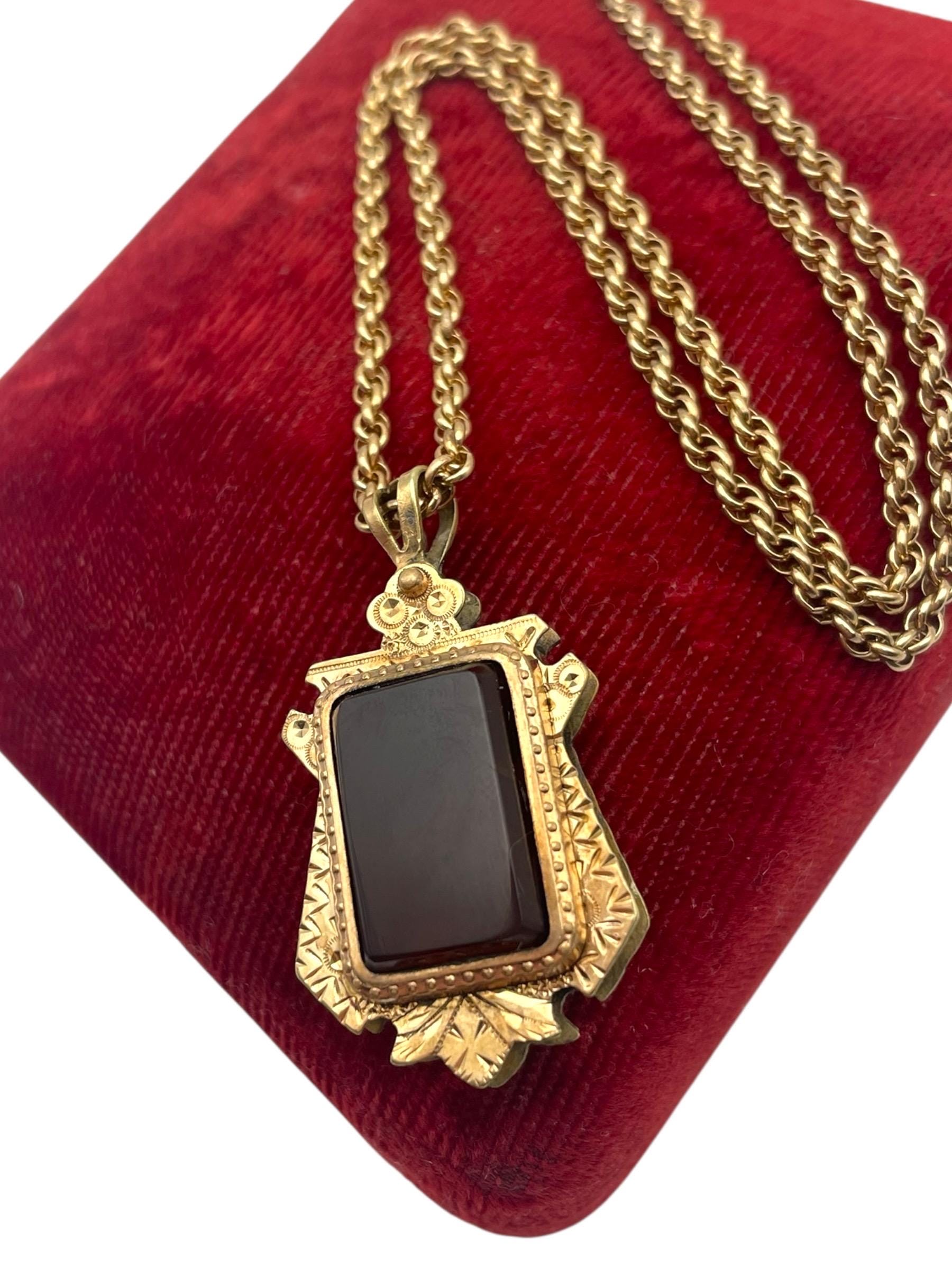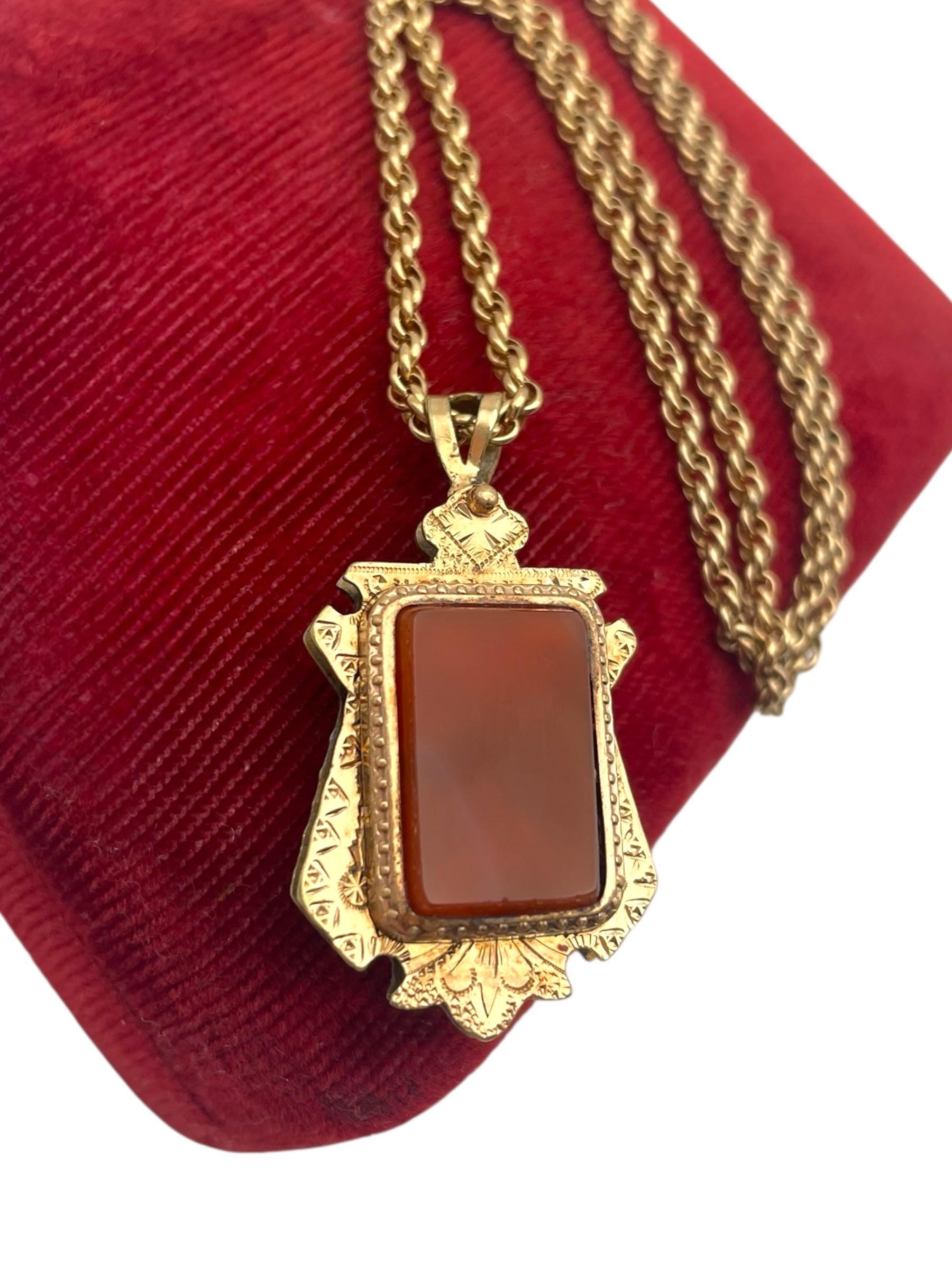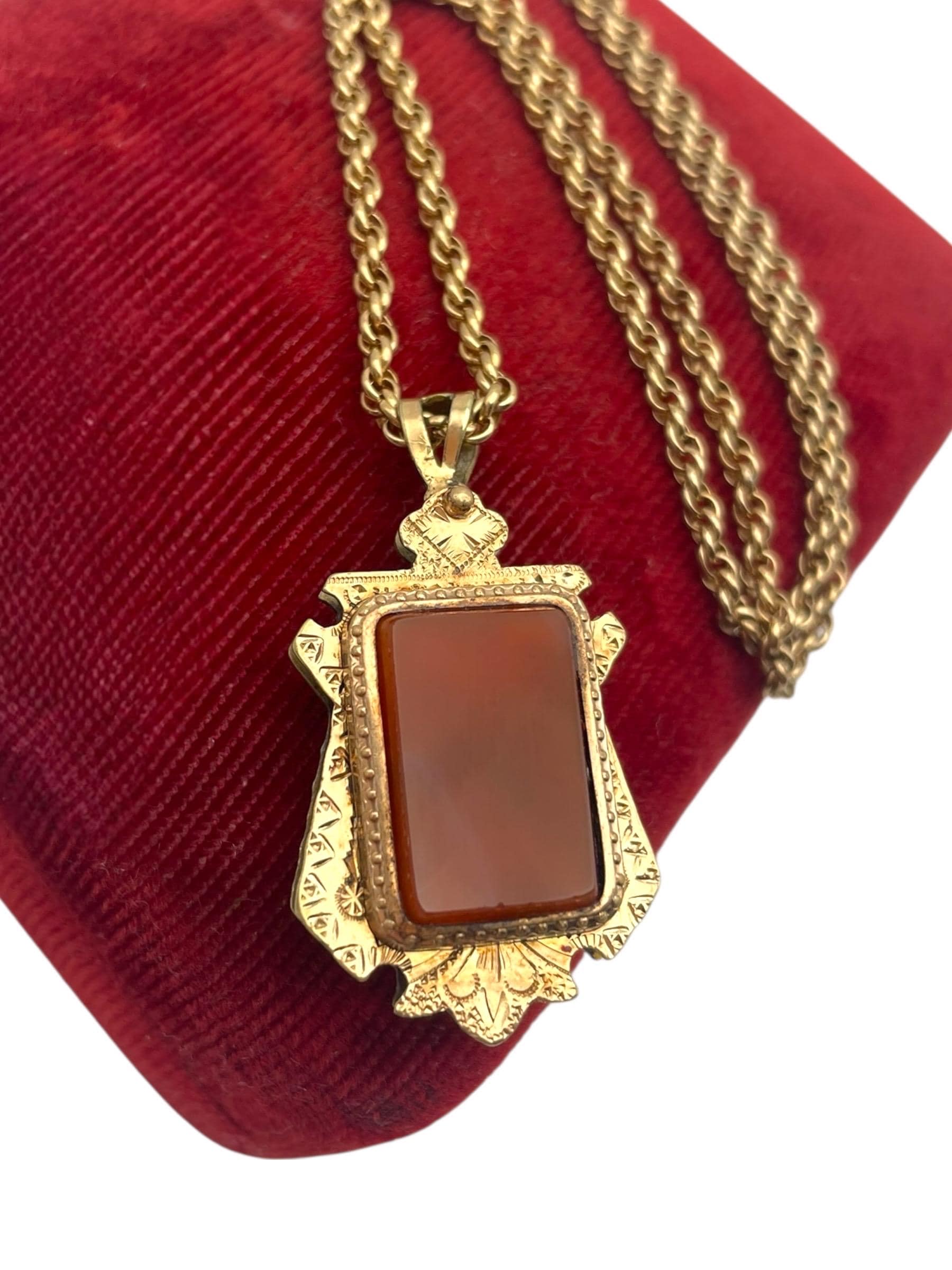 Victorian Gold Filled Carnelian Fob Pendant – Antique Reversible Necklace
