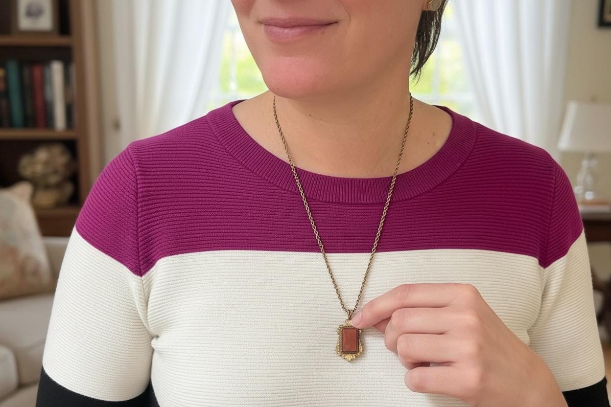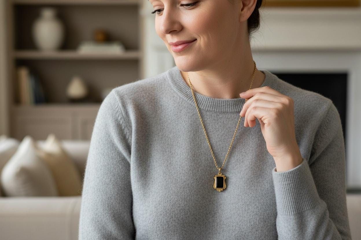 A fob necklace is a modern necklace style based on the chains that once held pocket watches, often featuring a distinctive T-bar clasp and a decorative pendant or "fob" at the end. Think about those worn during gentlemen on the TV show the gilded age!