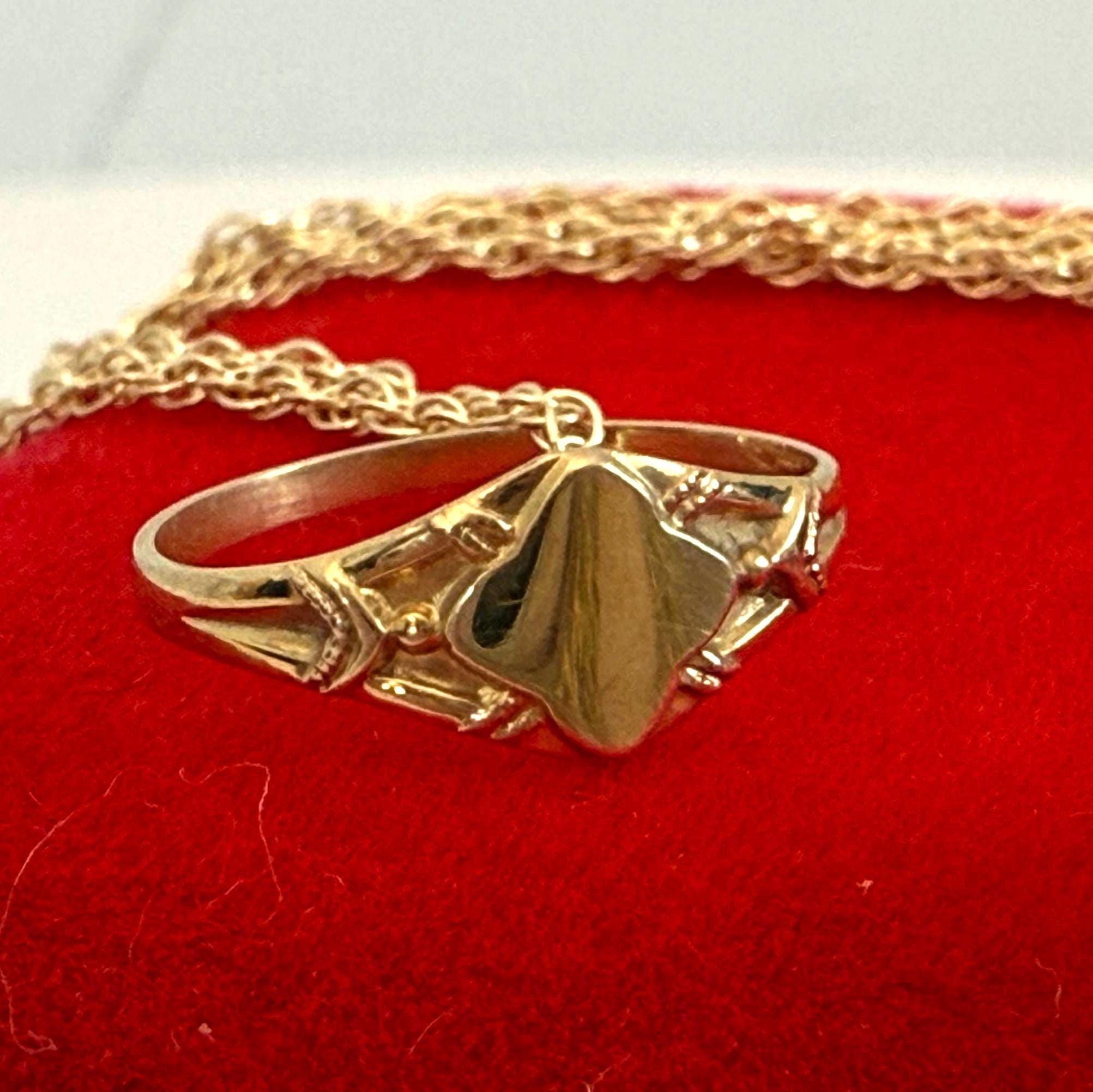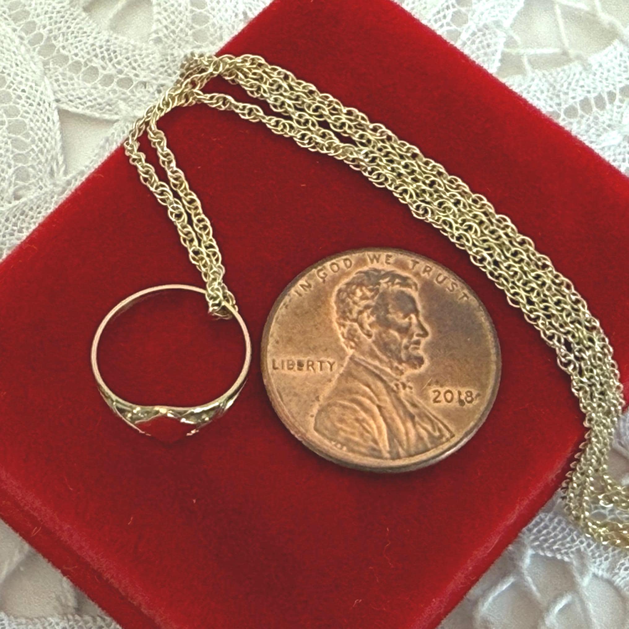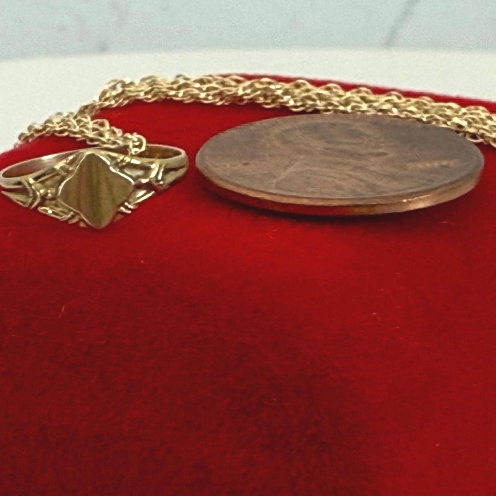 Antique 10K Yellow Gold Small Tiny Baby Ring on 14K GF Chain, Size .75